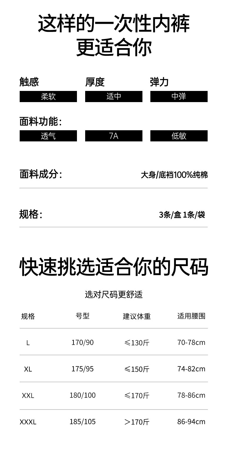 【一次性用品】嫚熙M3一次性内裤男士日抛内裤平角纯棉无菌免洗旅行