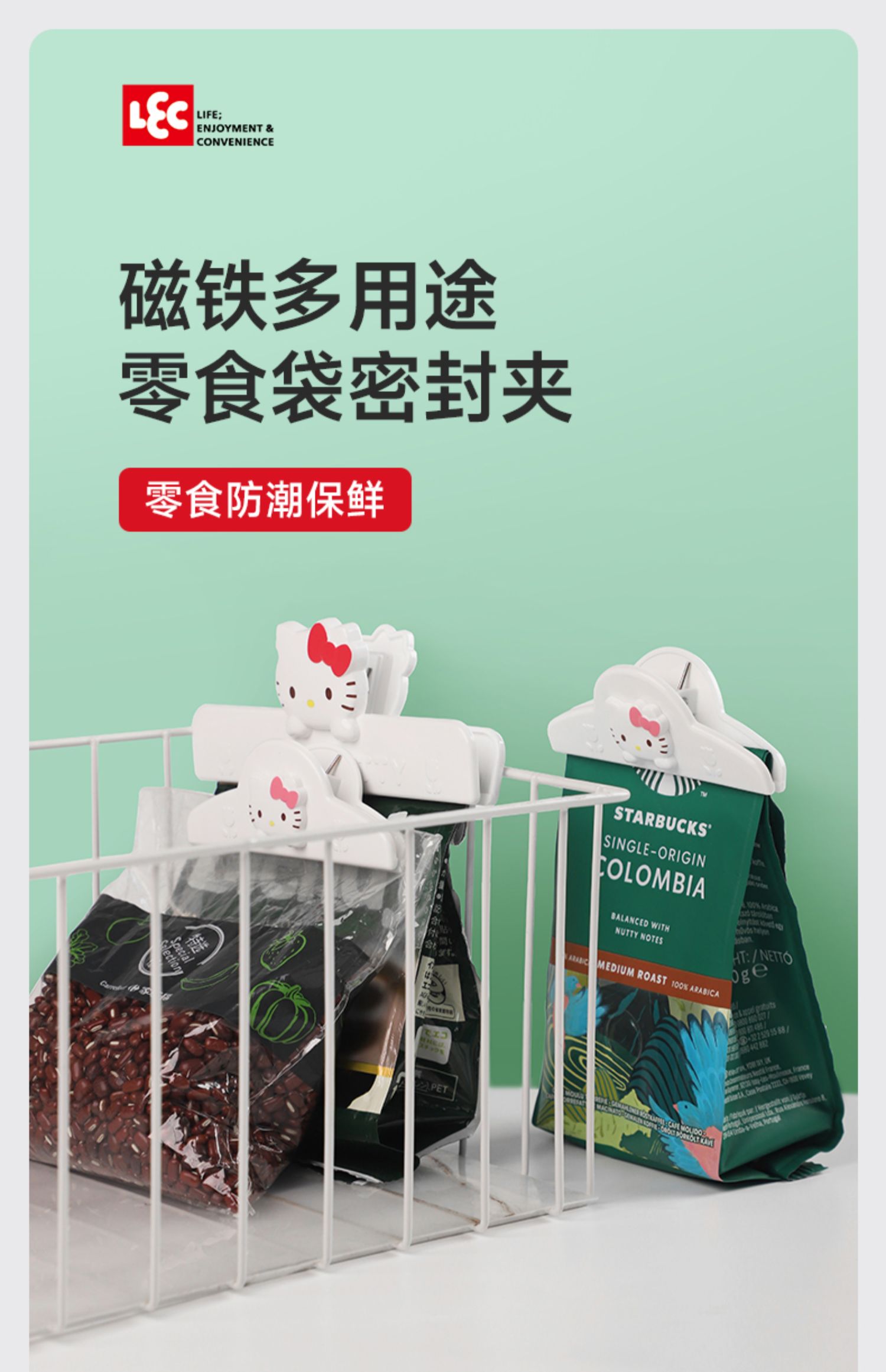 日本LEC Hello Kitty凯蒂猫小号零食密封夹(2个入)