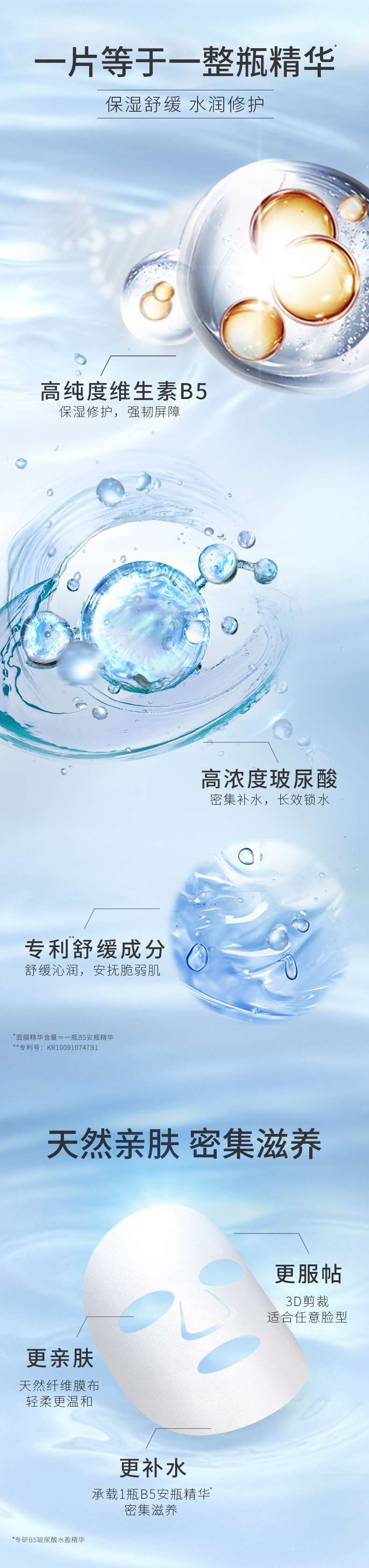 【新老包装随机发货】AHC爱和纯 第三代臻致B5玻尿酸补水面膜 5片/盒【不足200元订单,默认顺丰快递到付】