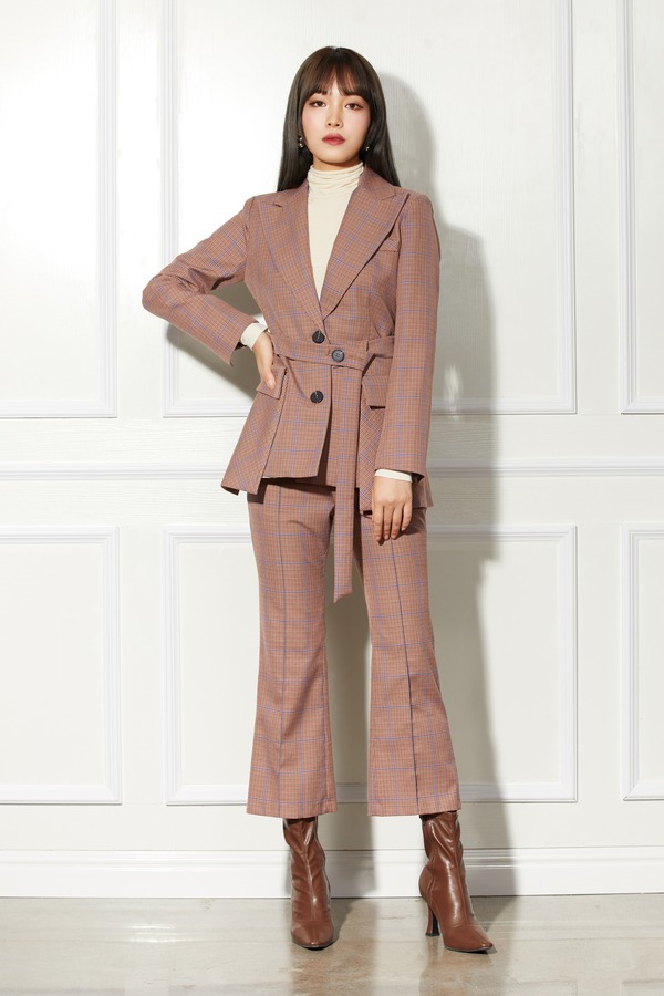 EMC亿美丞 格纹喇叭袖连衣裙 3648