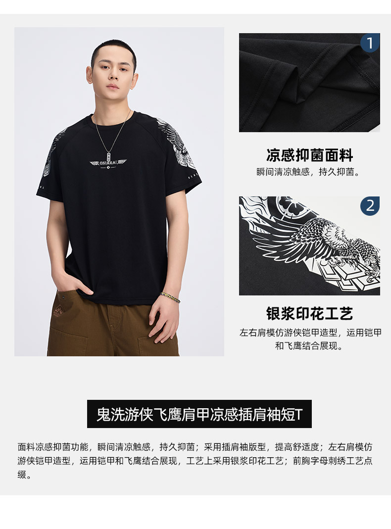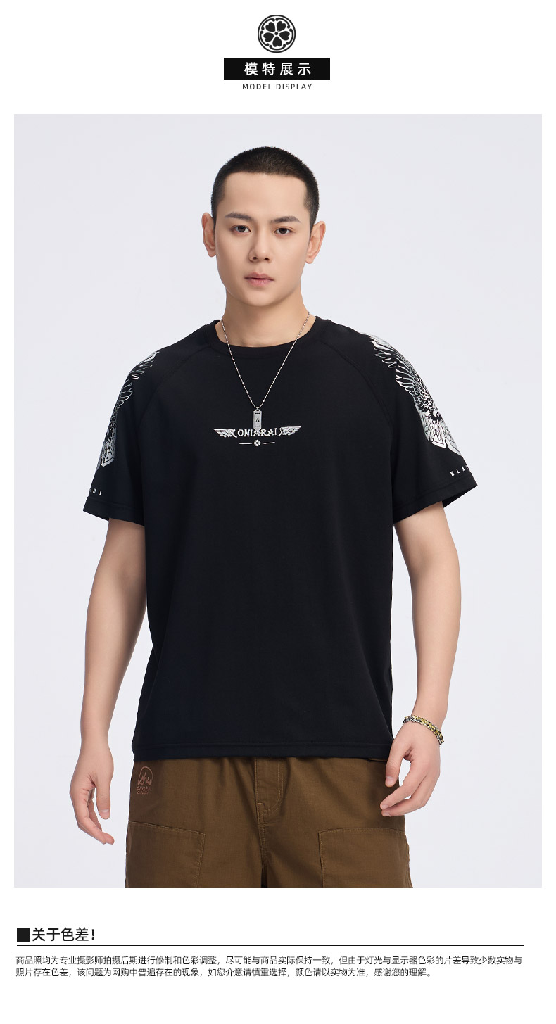 ONIARAI/鬼洗25春夏新品游侠飞鹰肩甲凉感插肩袖短T男式 B840273