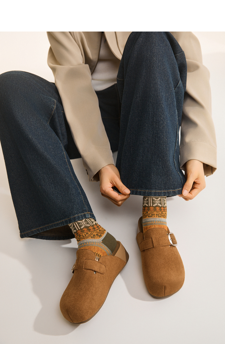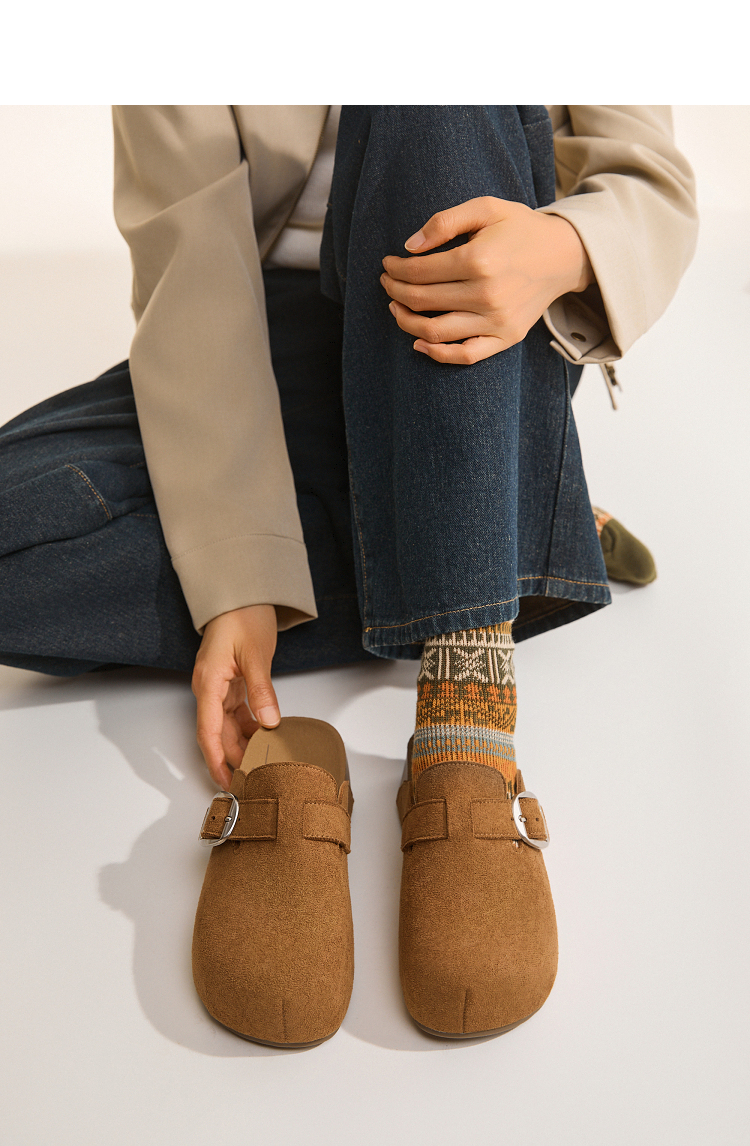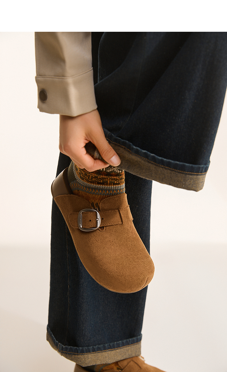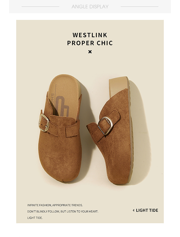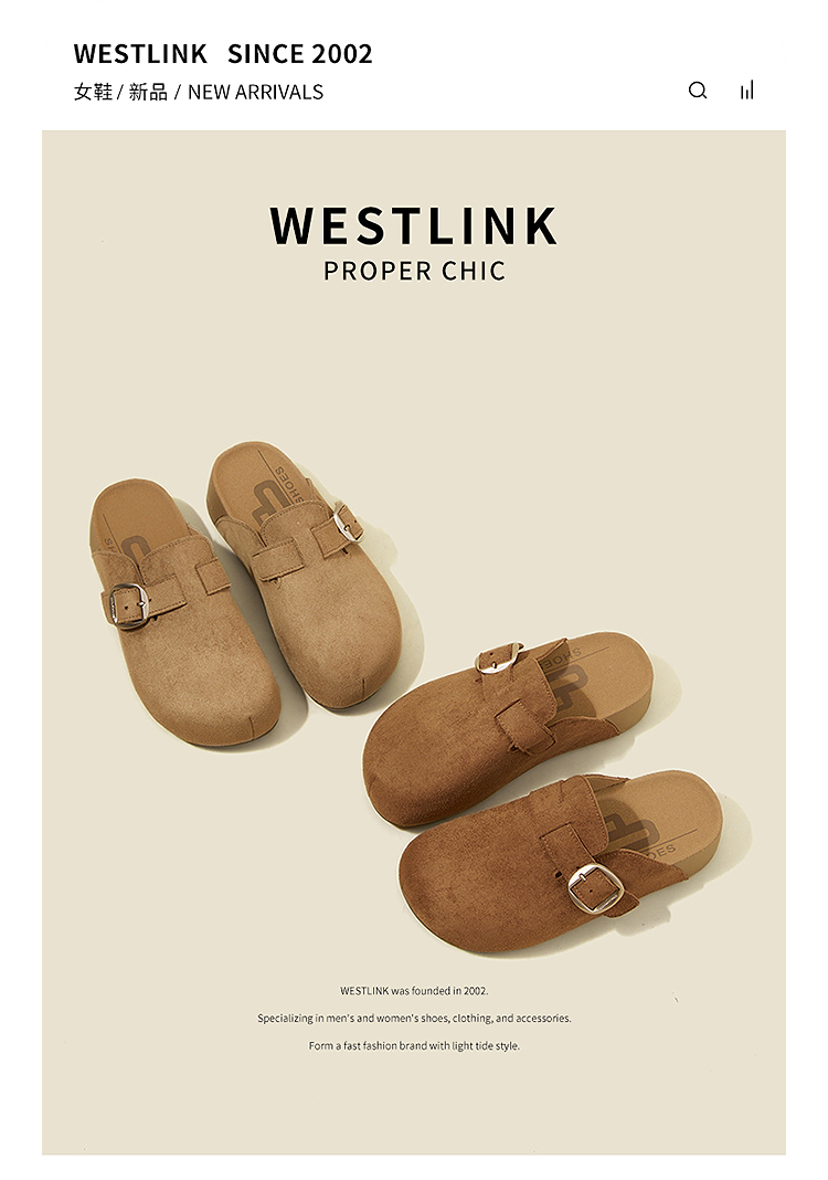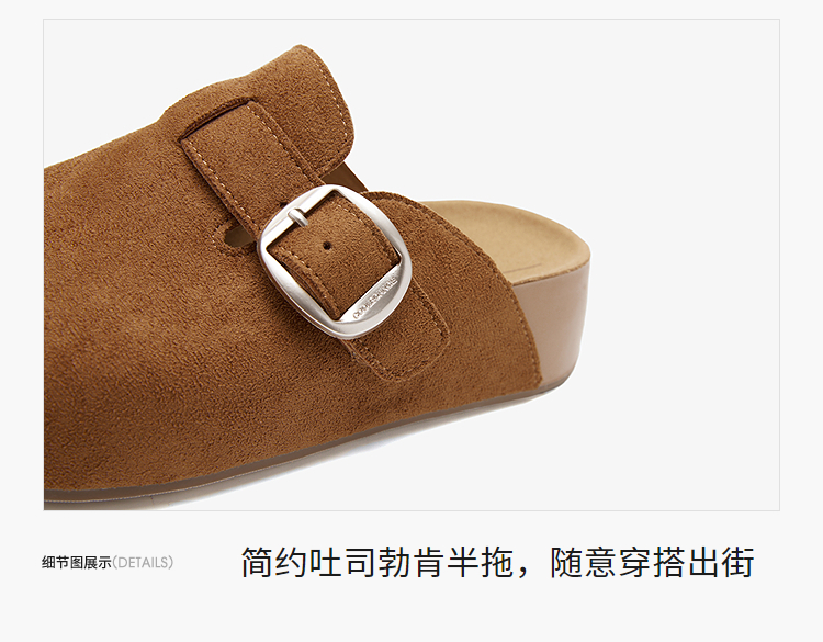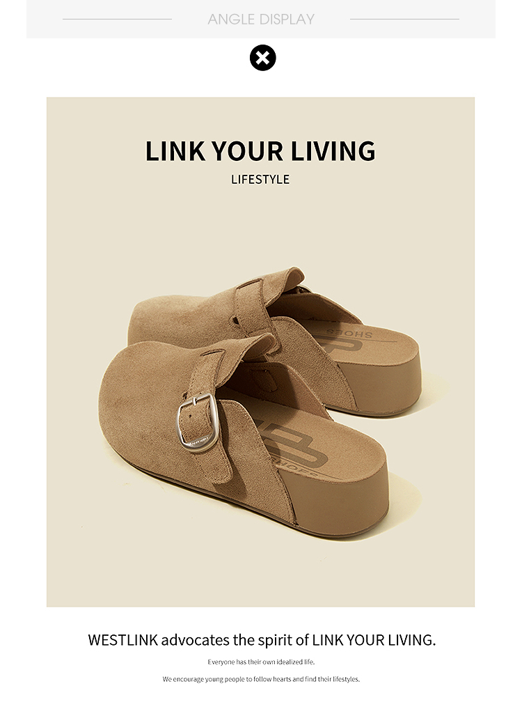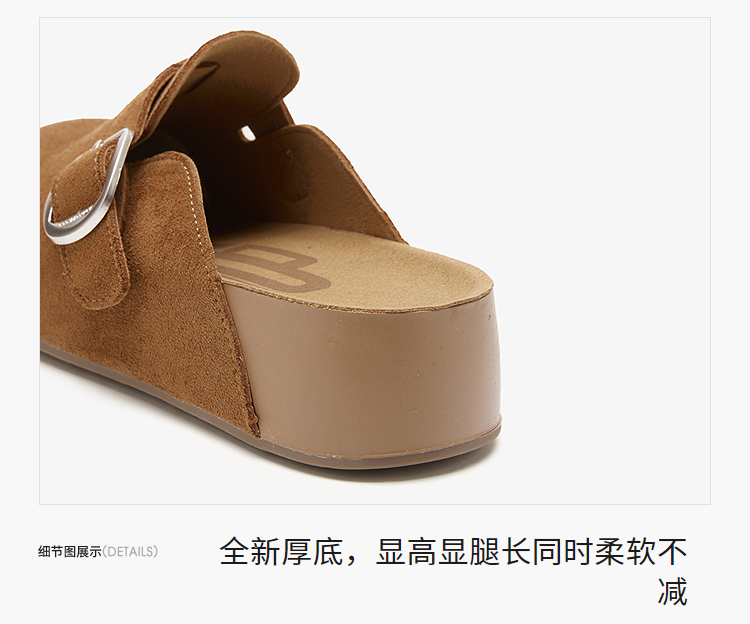 西遇厚底勃肯鞋女新款秋季百搭圆头一脚蹬懒人鞋外穿增高半拖K2057173