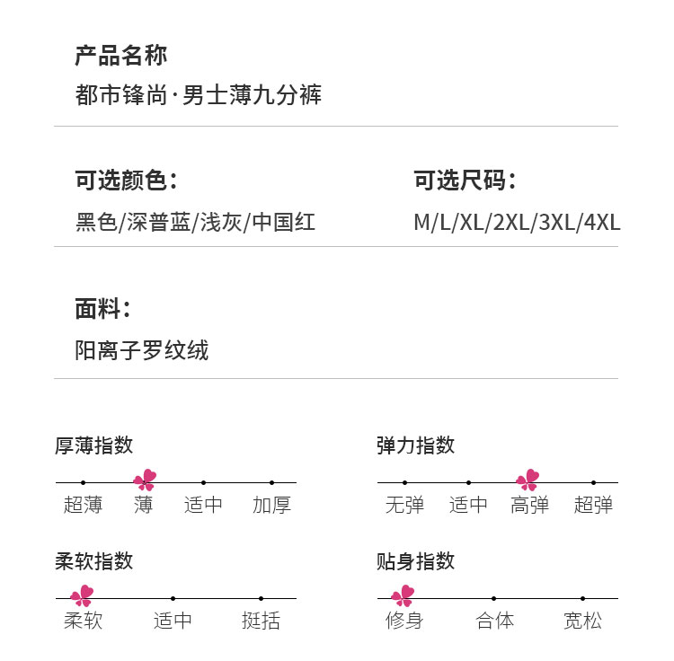 都市丽人都市锋尚基础系列轻暖5至15度男士薄九分裤阳离子罗纹薄单层裤打底裤FL24A0