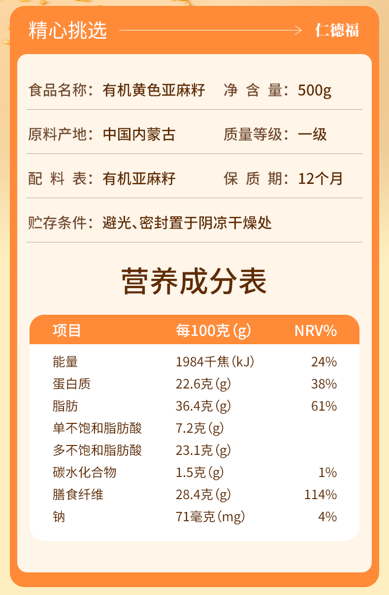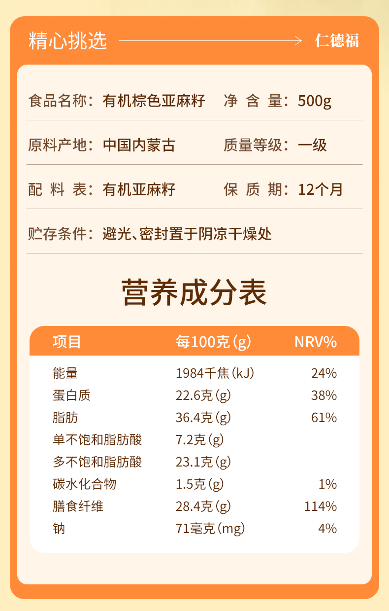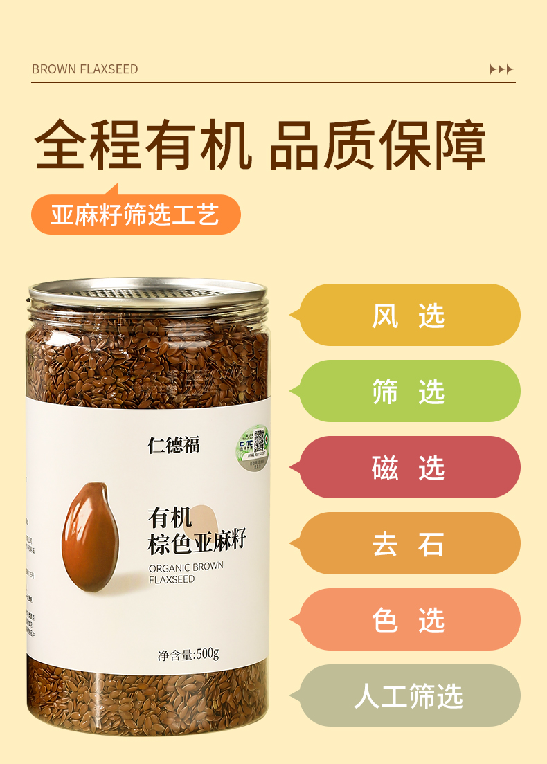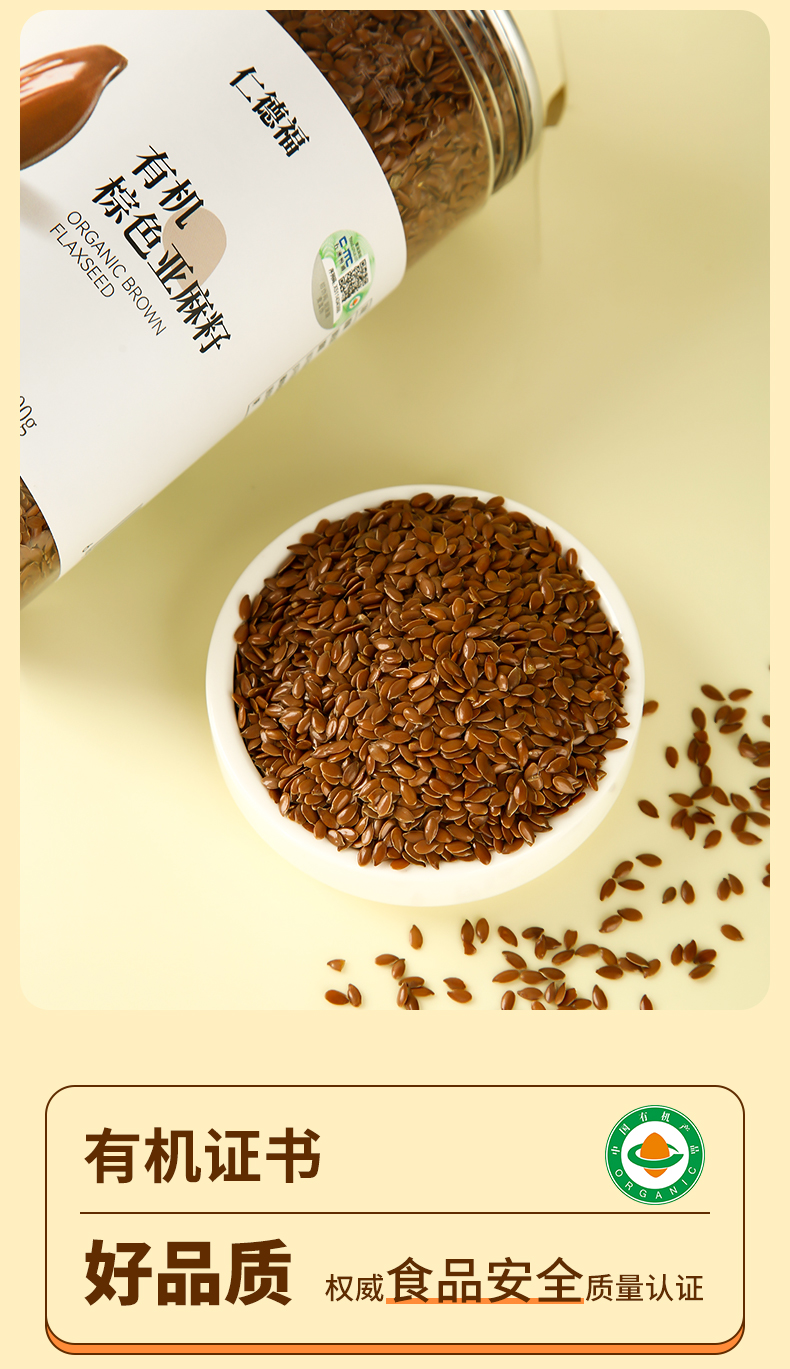 有机棕色色亚麻籽 有机黄色亚麻籽生亚麻籽500克/罐【京东快递送货上门】