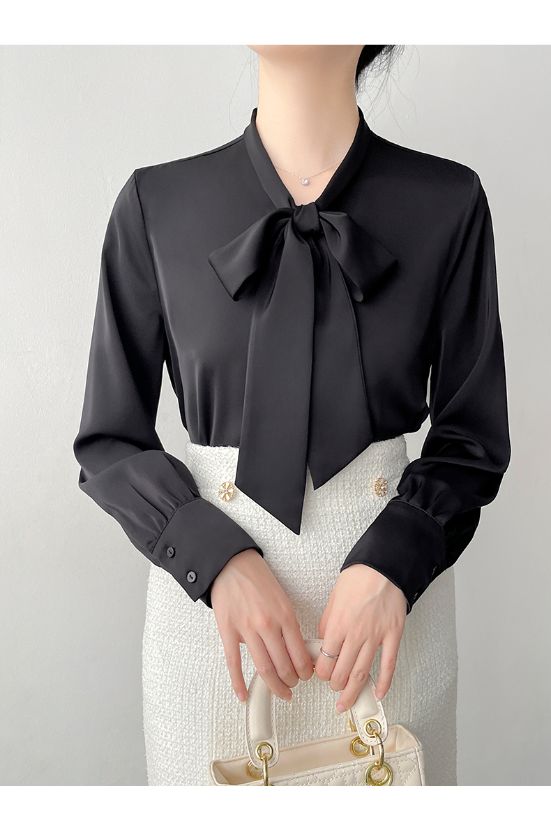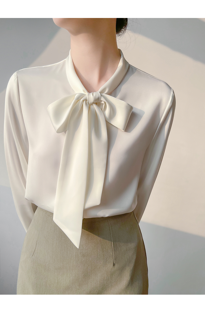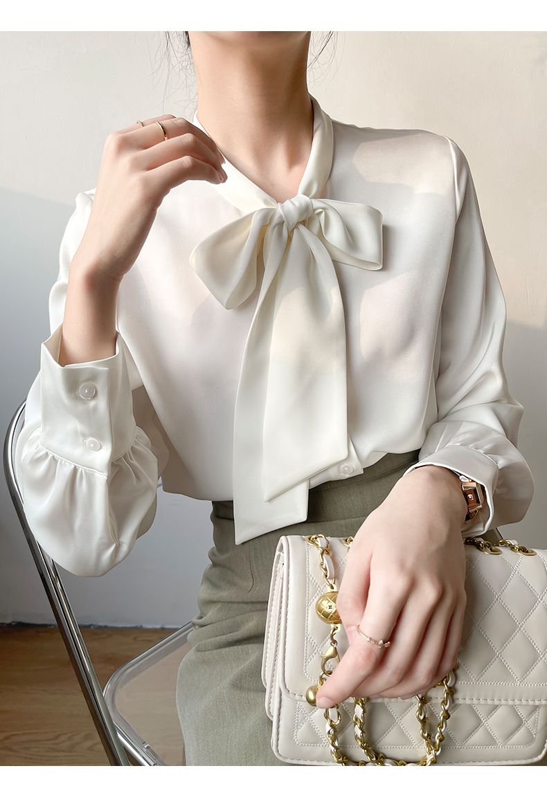 【 2025早春优雅精致蝴蝶结衬衫】 重磅质感缎面 Ji具光泽感 领口飘带细节随手一系即可让整体显洋气