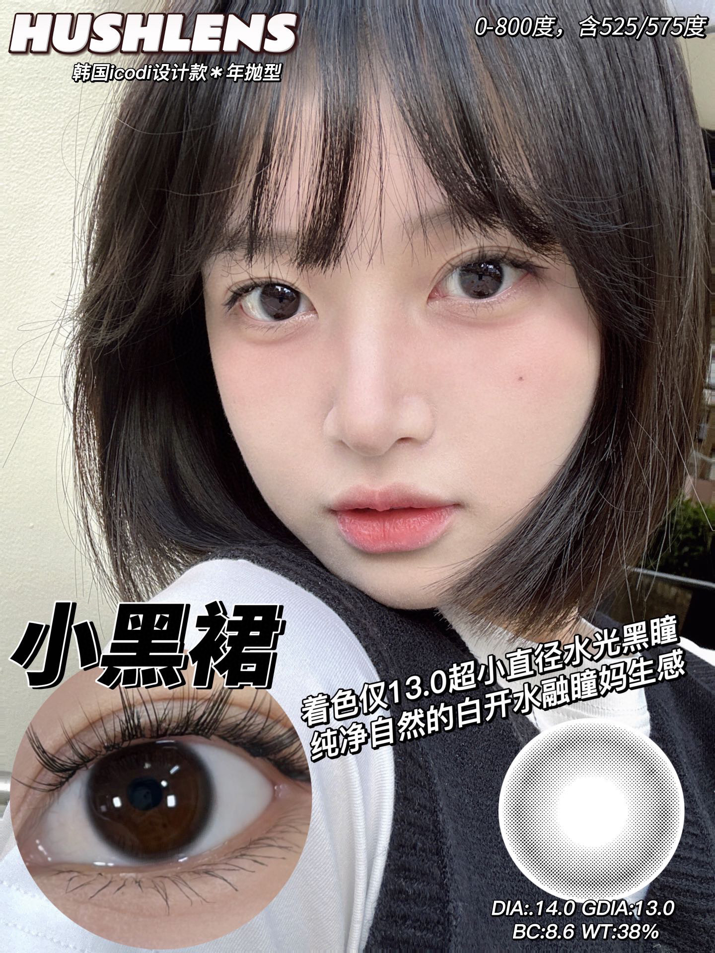 【年抛】款式名字:小黑裙 hushlens | 小直径14.0 着色13.0 | 【同品牌多副美瞳更划算,选款色板在详情页内】,黑色美瞳