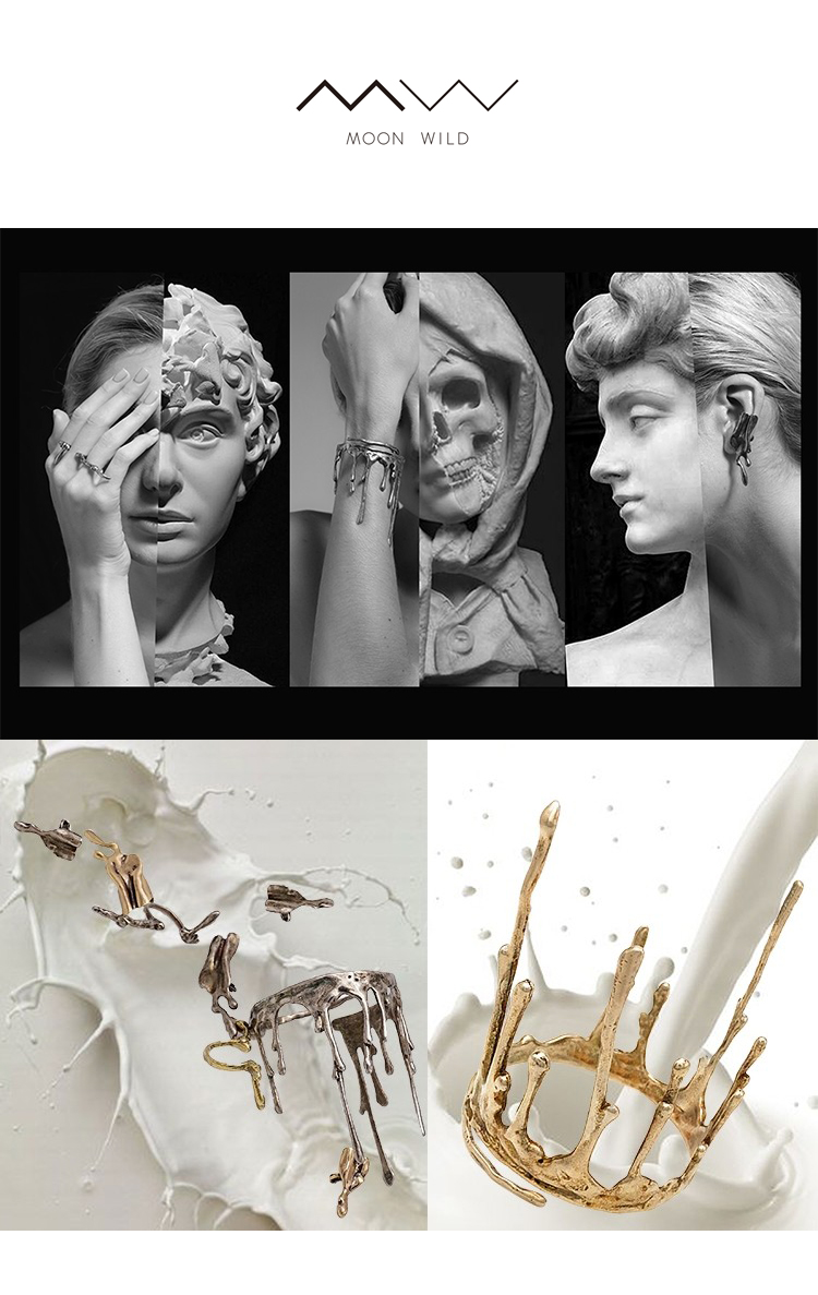 MOON WILD野月亮 个性ins饰品小众烛泪水滴臂镯铜镀白金手镯首饰女礼物