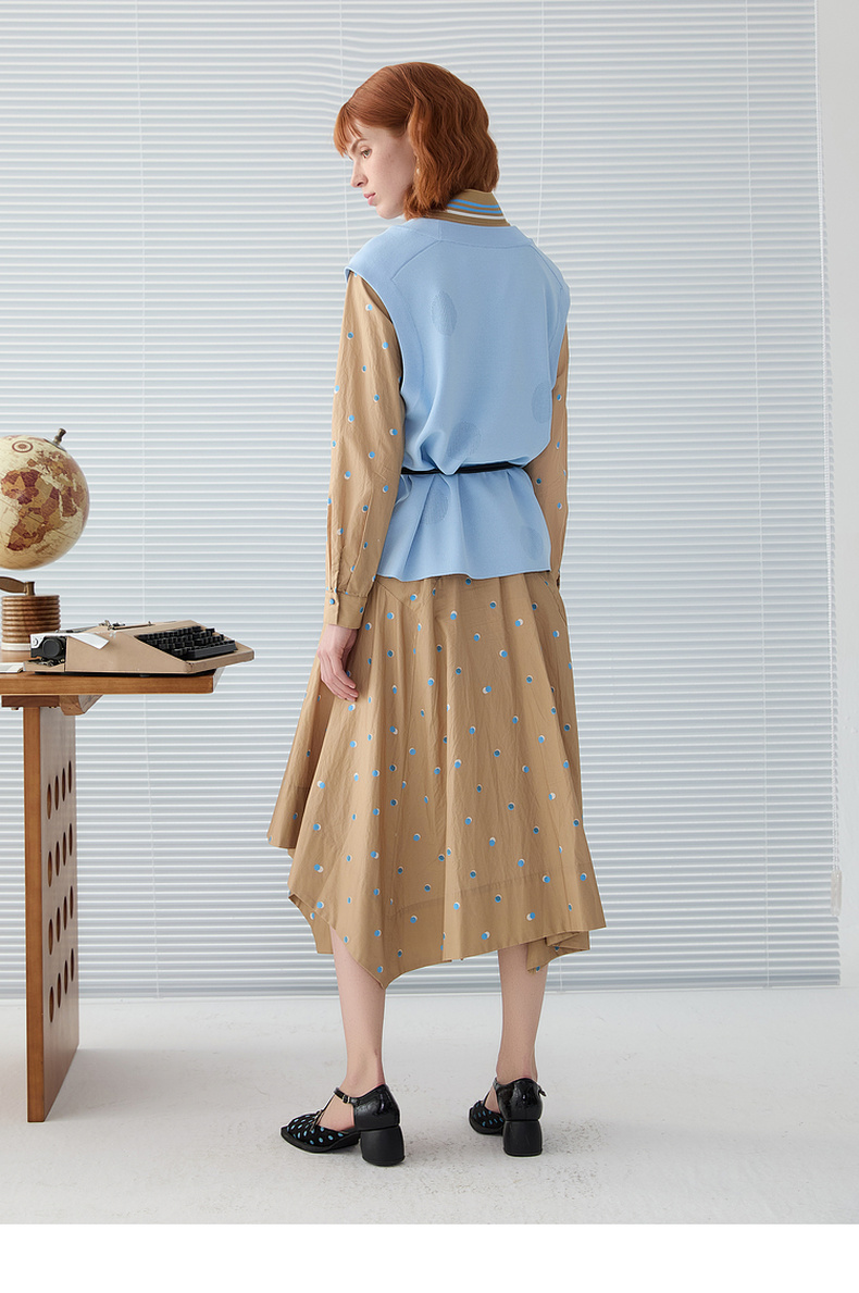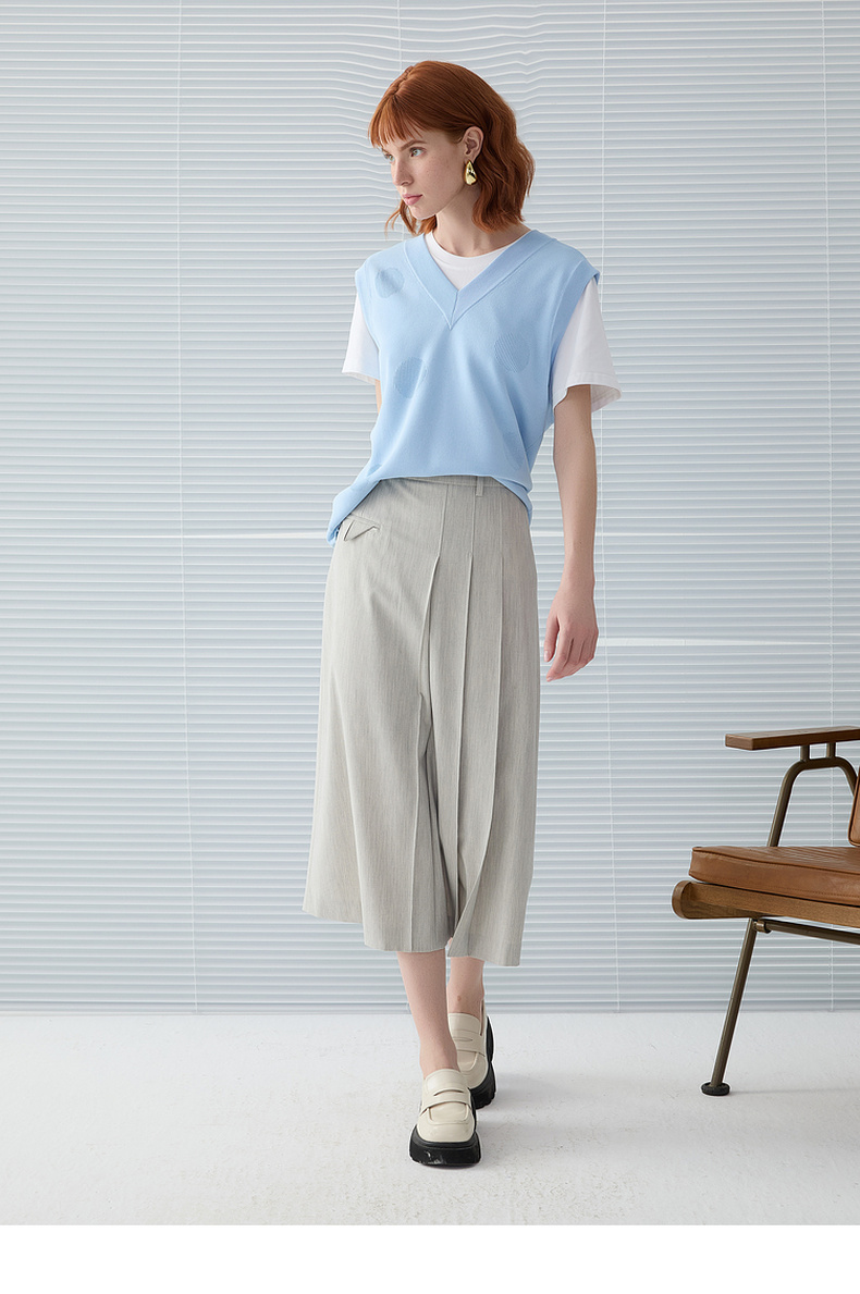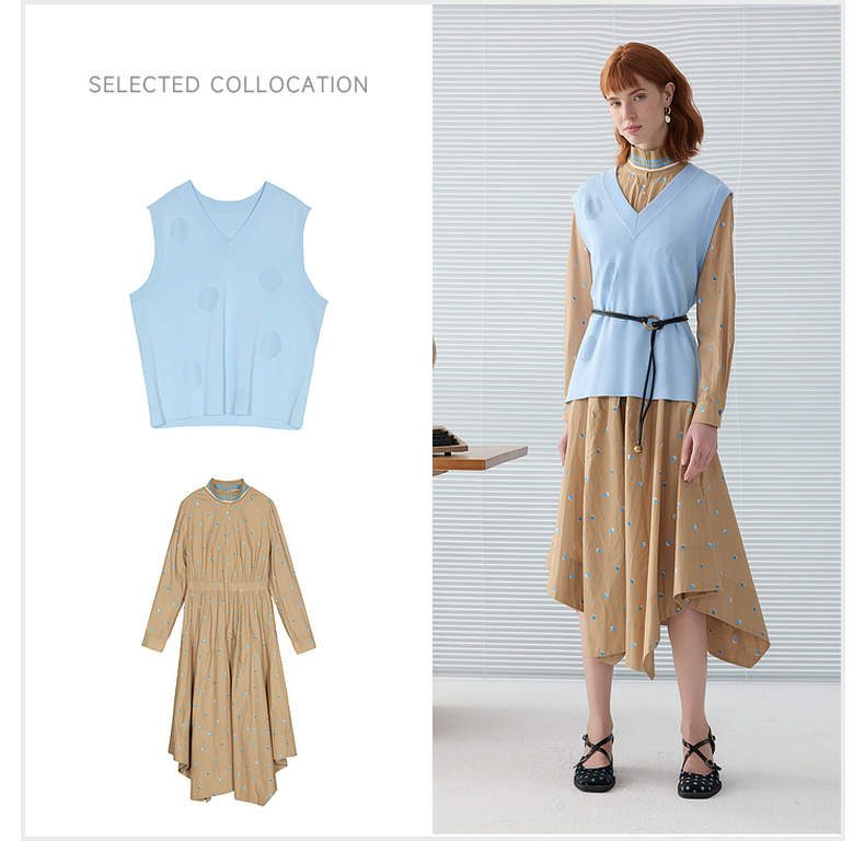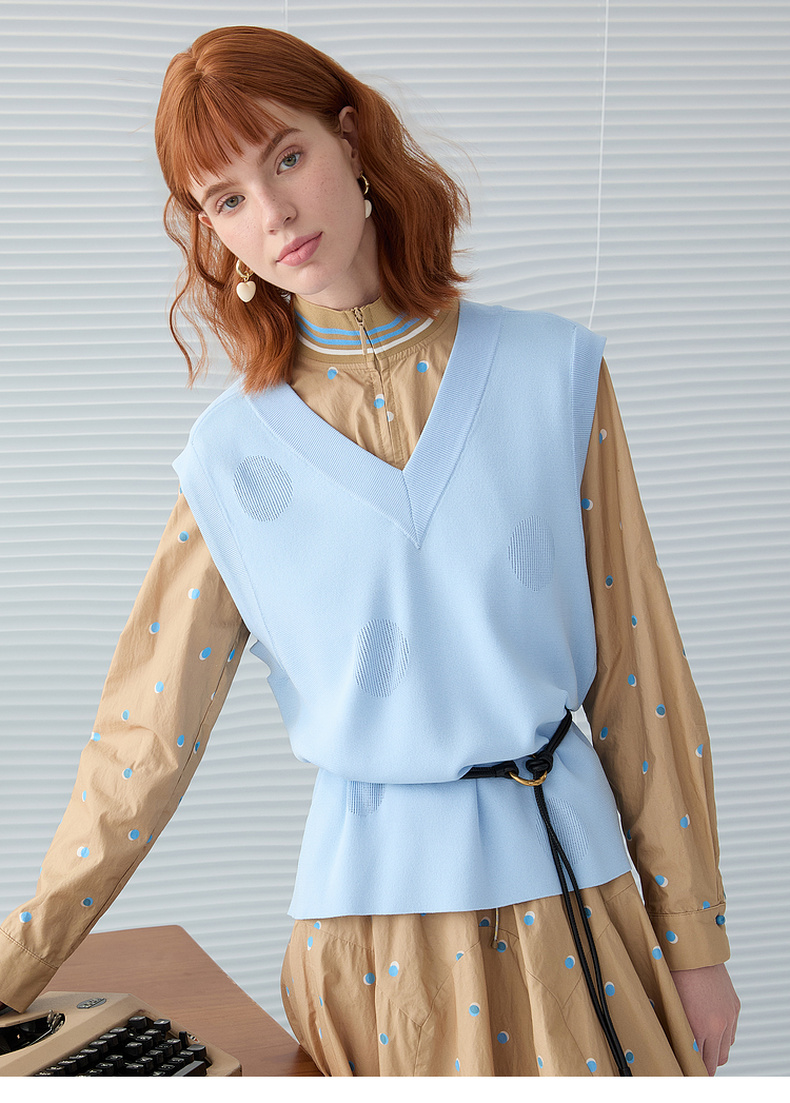 谜底V领针织马甲女2025春季新品文艺风中长款宽松马夹251MZ0310
