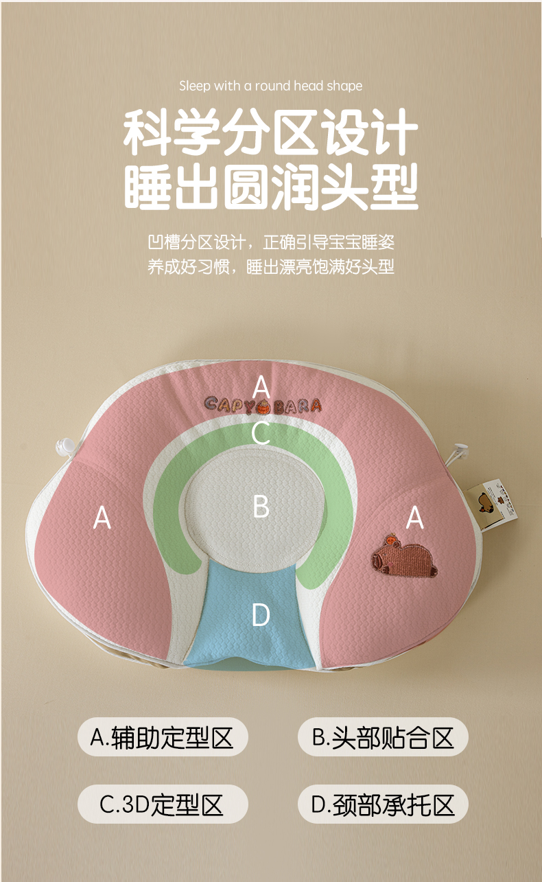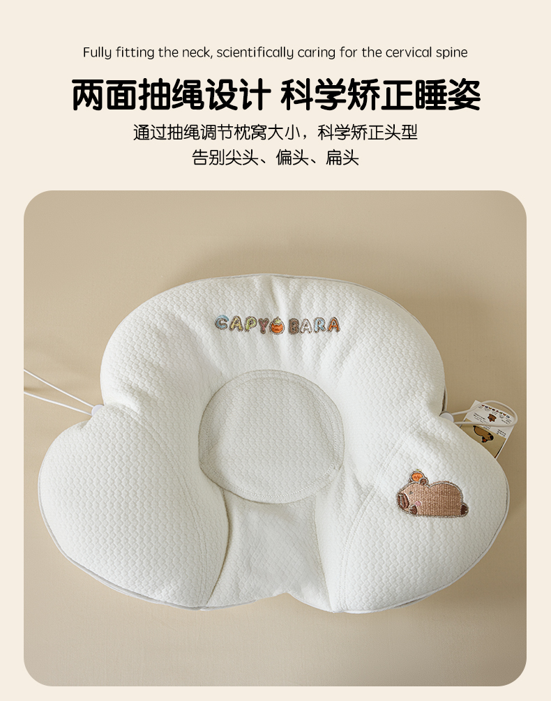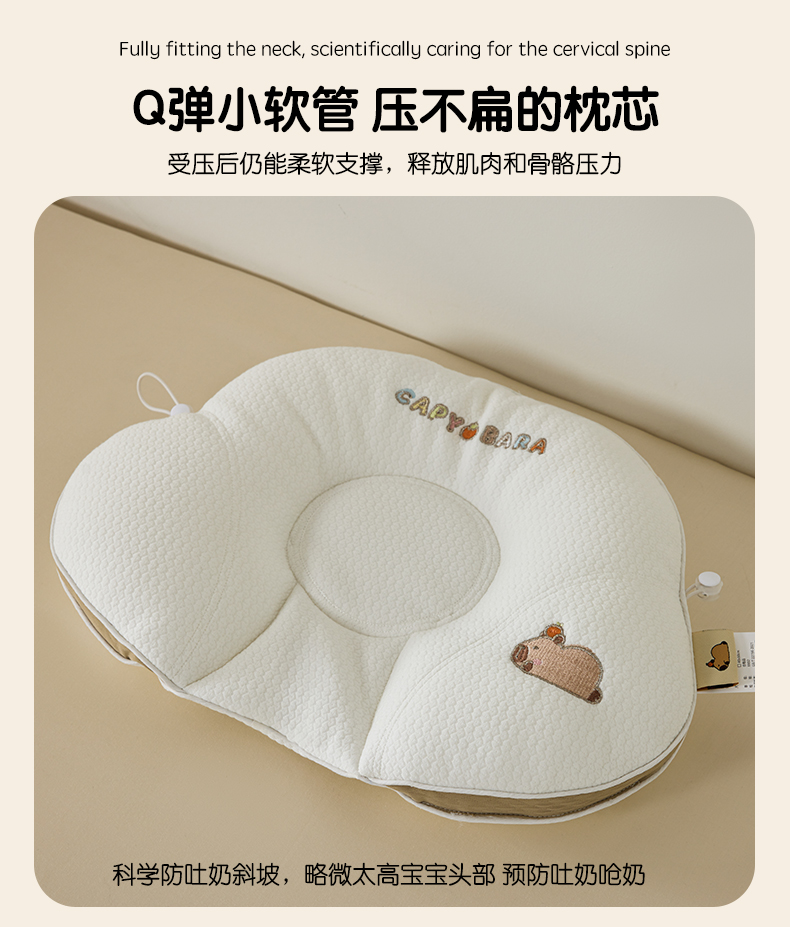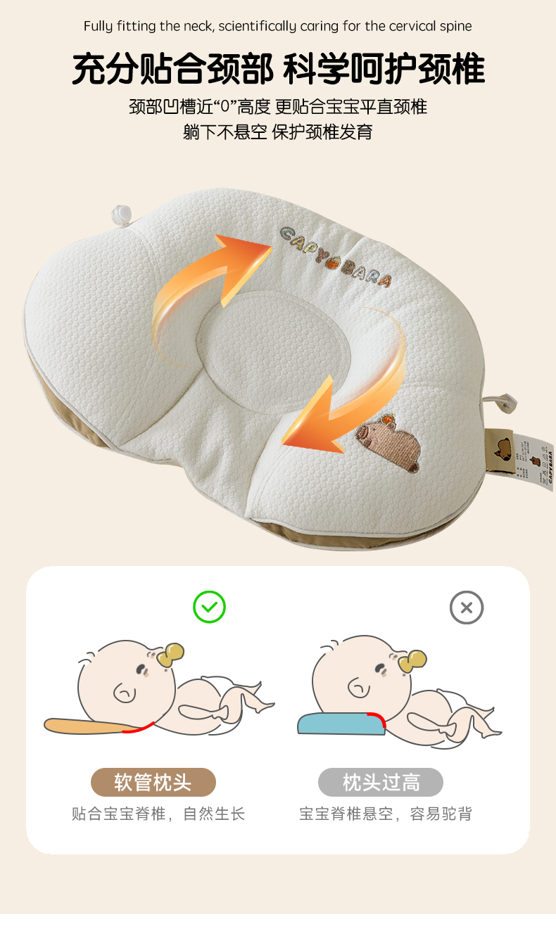 自然醒A类母婴卡皮巴拉软管婴童定型枕0到6个月以上儿童枕芯宝宝纠正头型护颈椎助睡眠XK