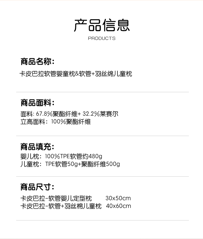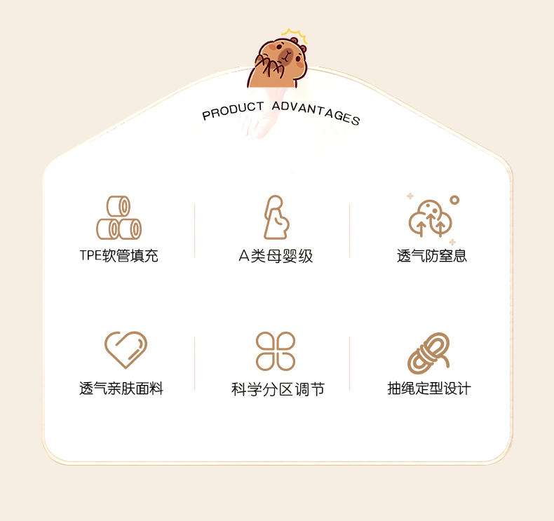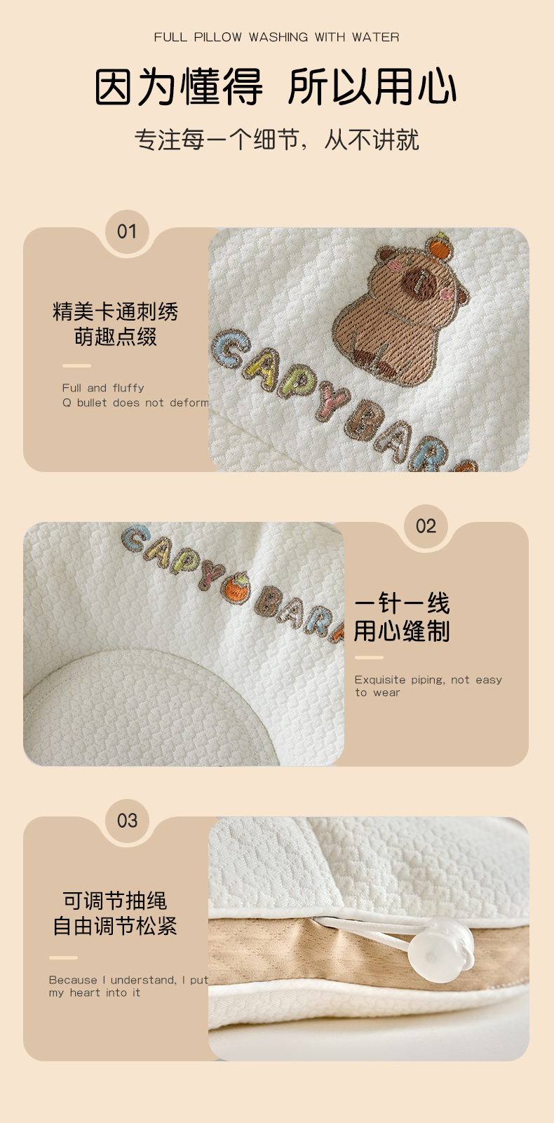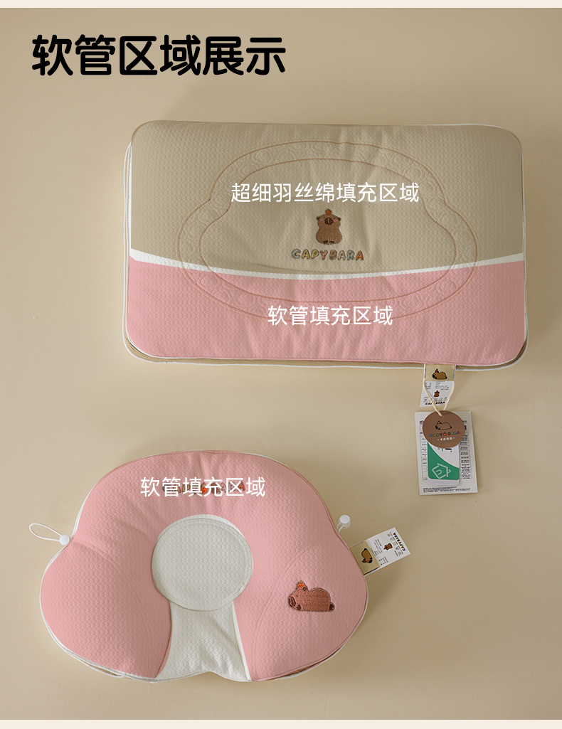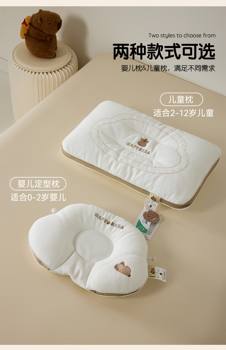 自然醒A类母婴卡皮巴拉软管婴童定型枕0到6个月以上儿童枕芯宝宝纠正头型护颈椎助睡眠XK
