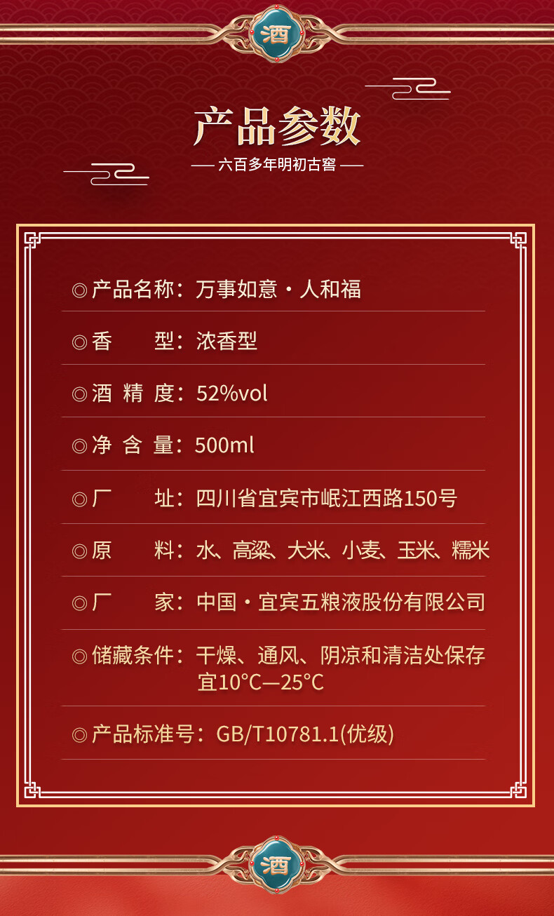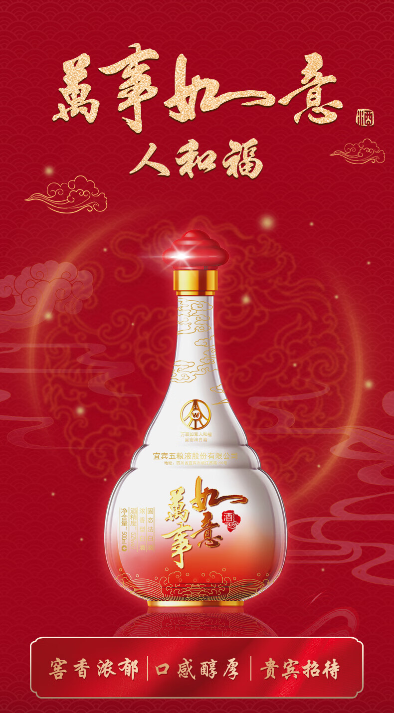 五粮液 52度 万事如意 人和福 浓香型白酒