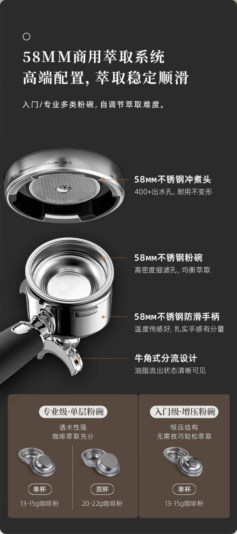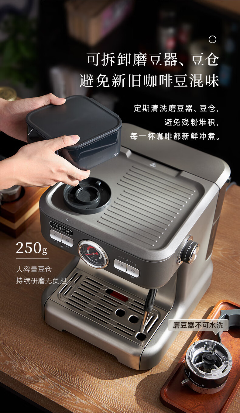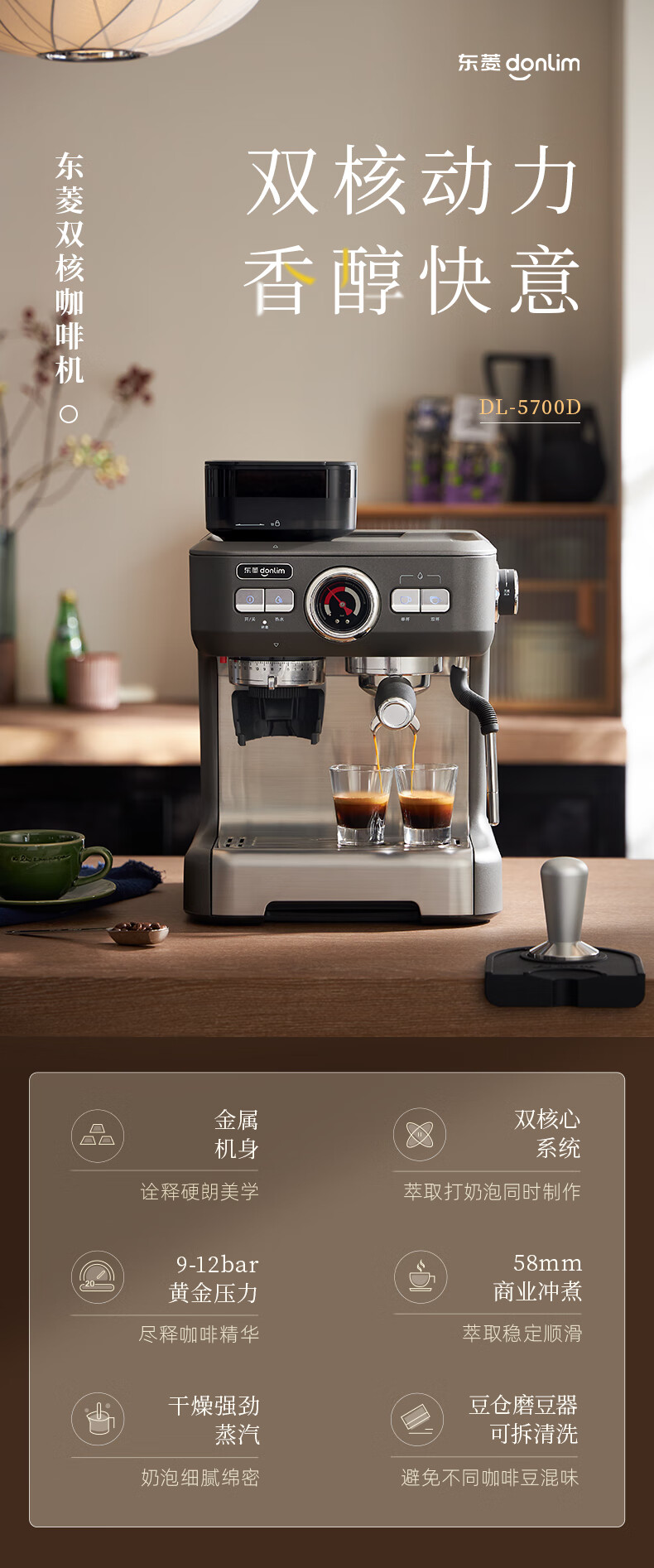 【小家电】东菱Donlim双加热半自动咖啡机家用商用意式研磨一体打奶泡机DL-5700D 双加热双水泵 HF