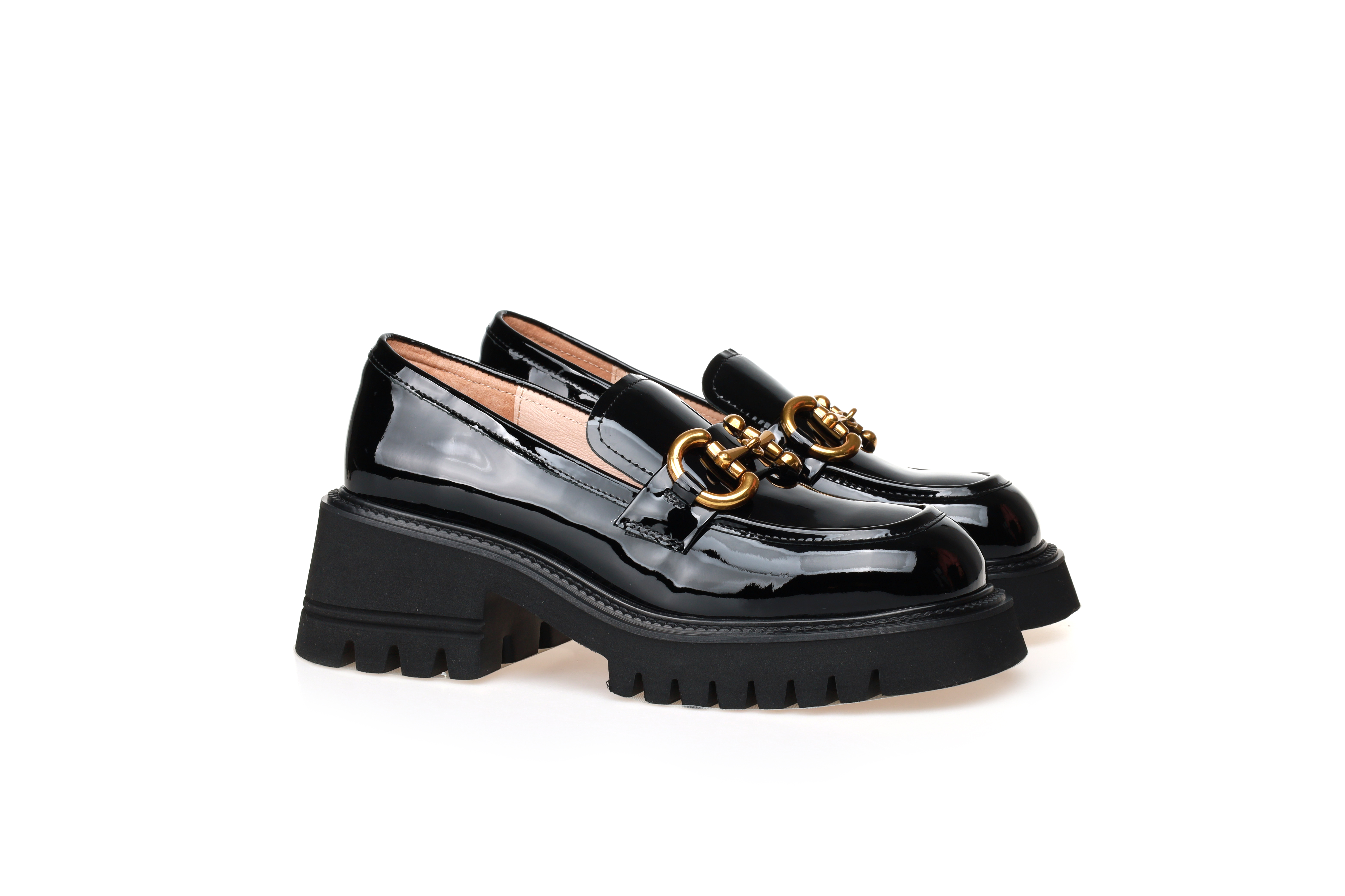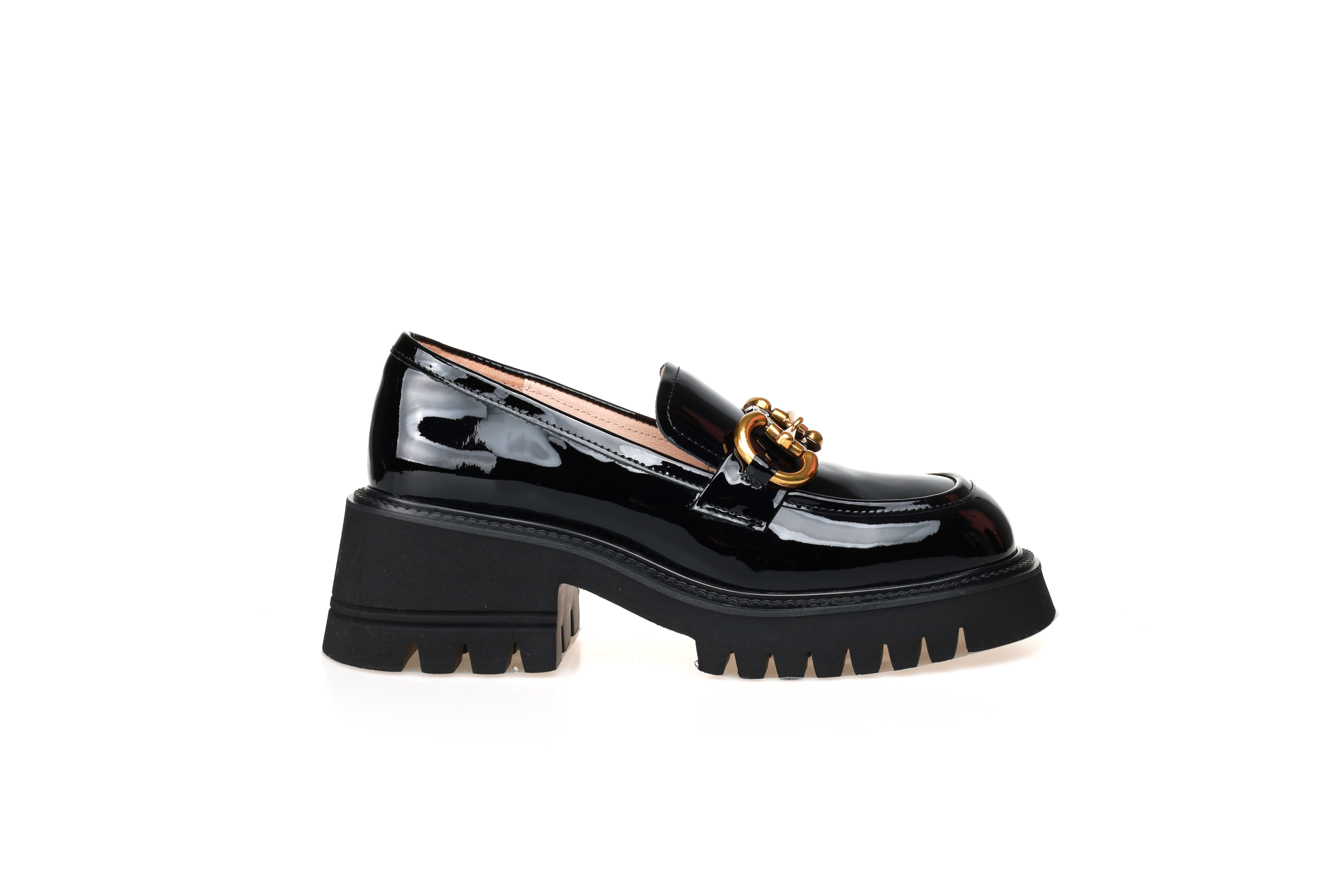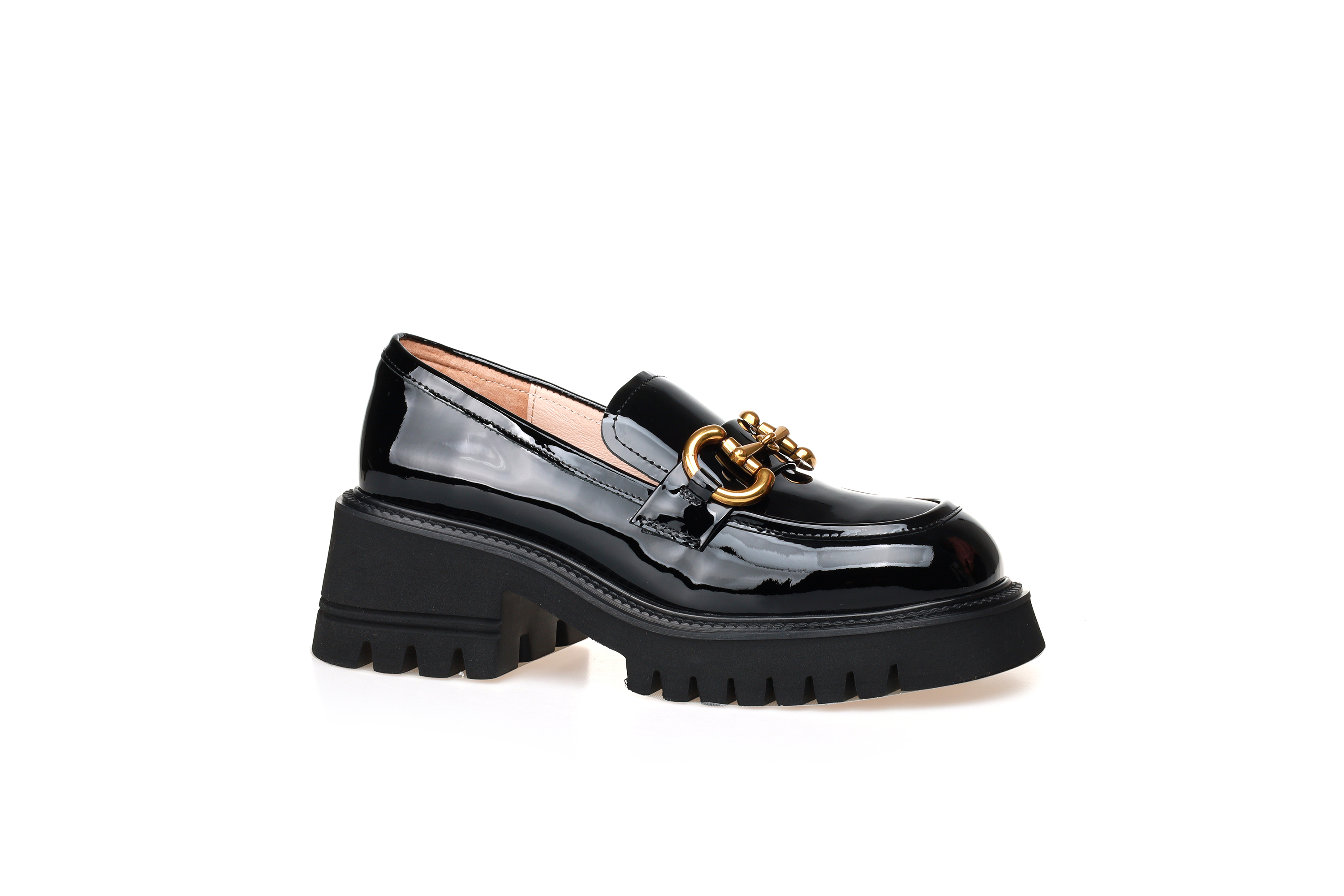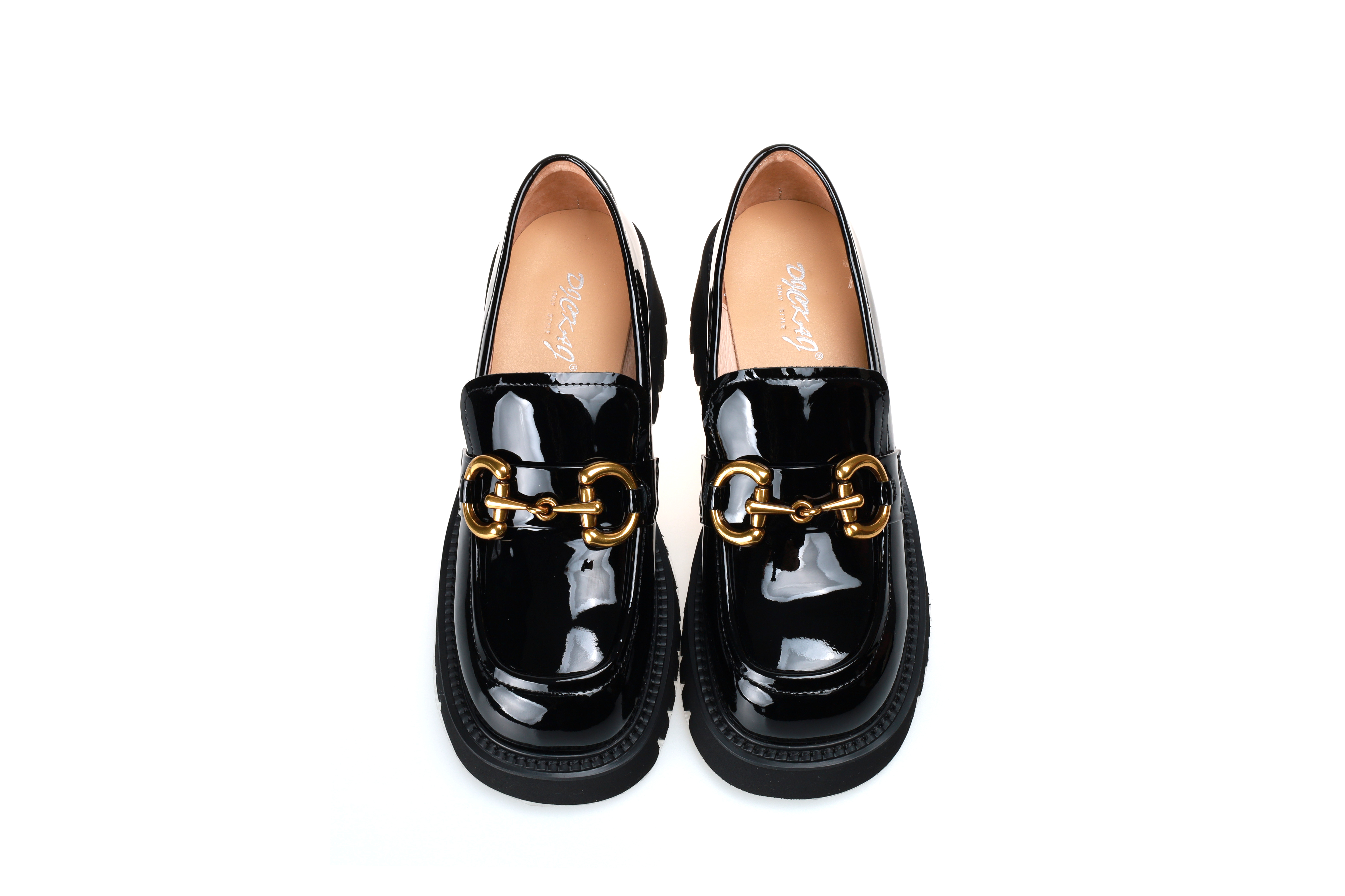 豪麟名鞋奥莱迪嘉女装牛移膜革乐福鞋DJELA22WS009黑色 原价1660元
