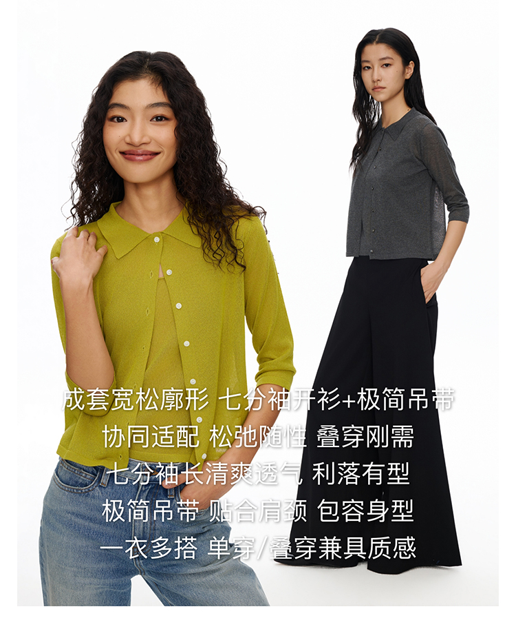 Oneup天丝亚麻吊带开衫套装