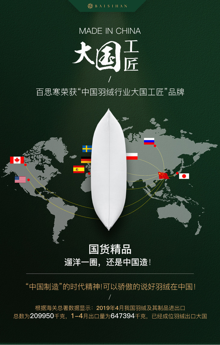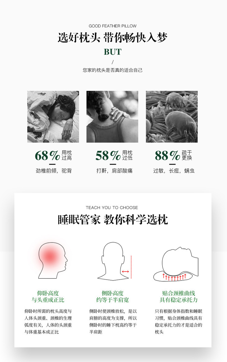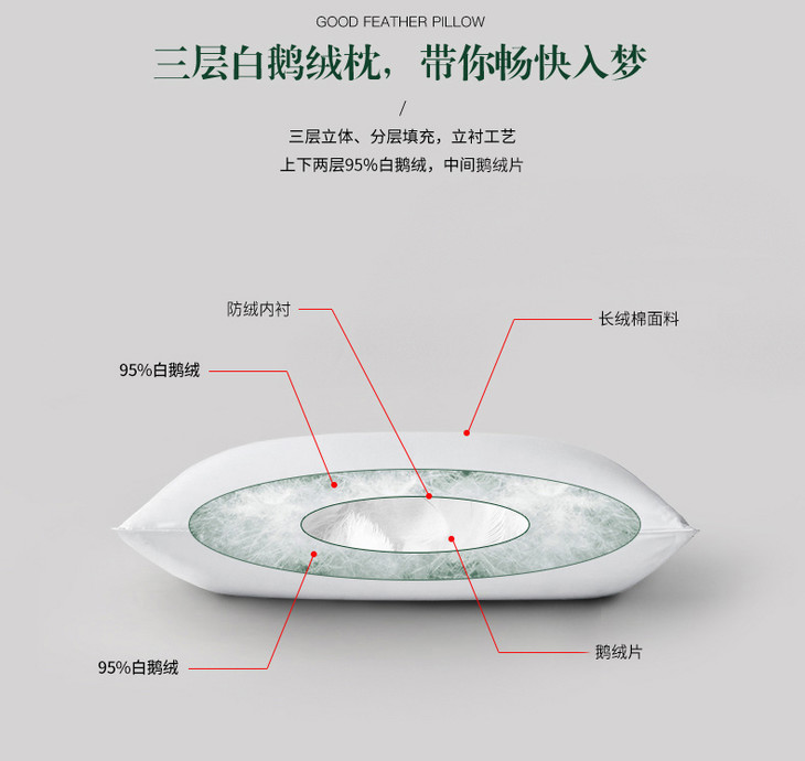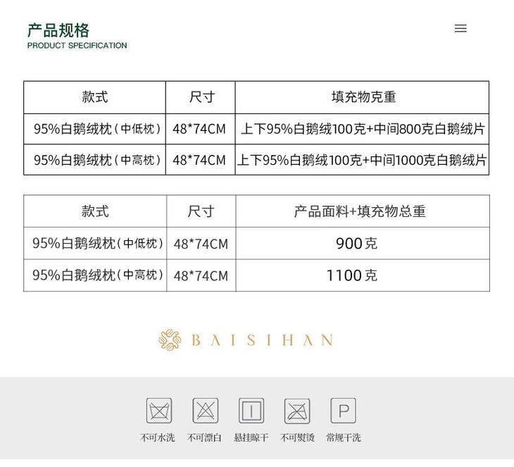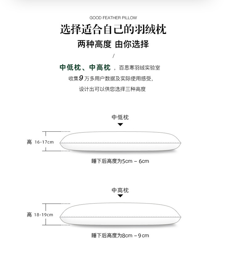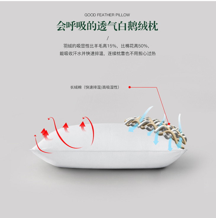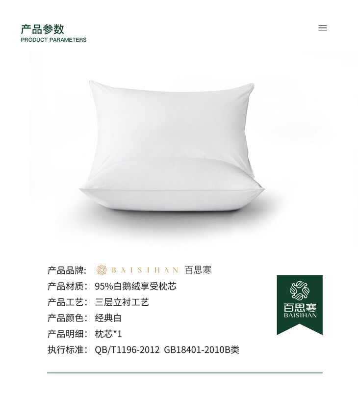 已下架【100代金券】百思寒 95%白鹅羽绒枕头 一支1100克中高枕保护颈椎帮助睡眠[福利品]