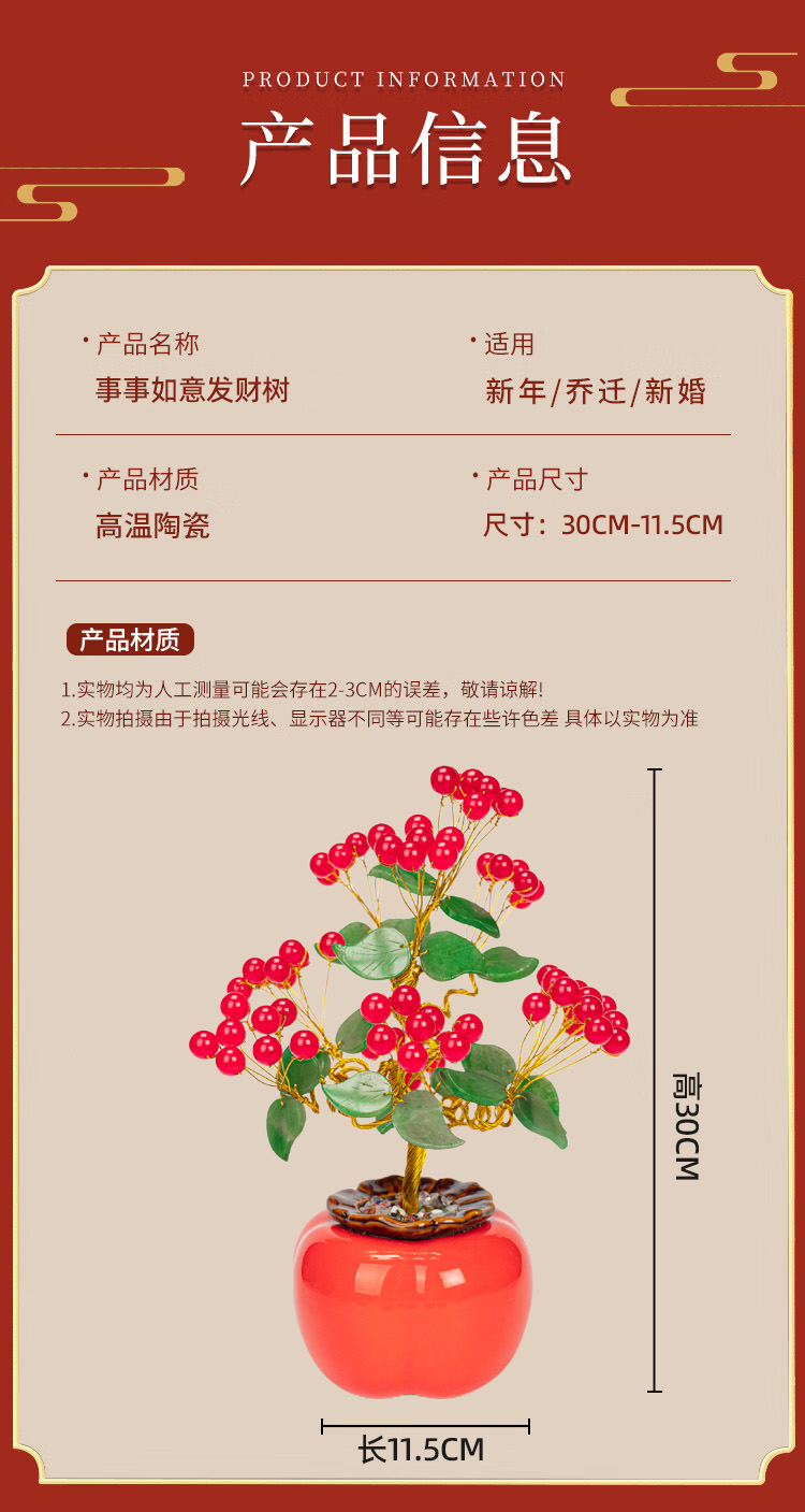 晶石小镇 事事如意发财树约30CM