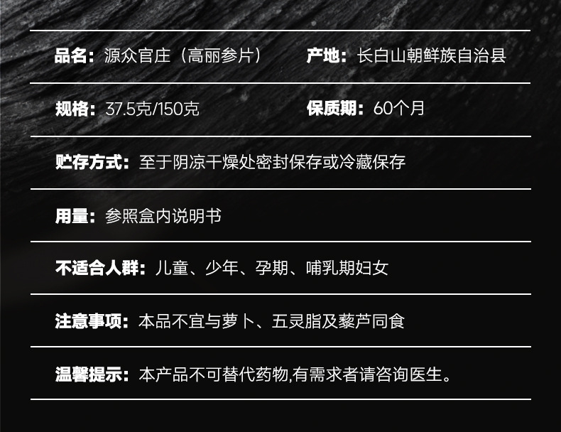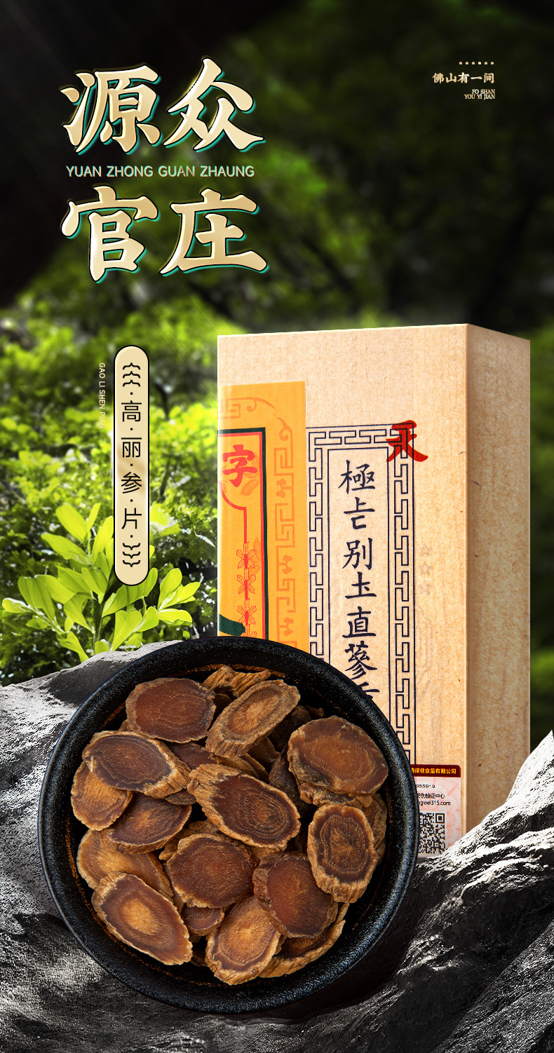 源众官庄高丽参片盒装 别直参无糖高丽红参片5年生切片