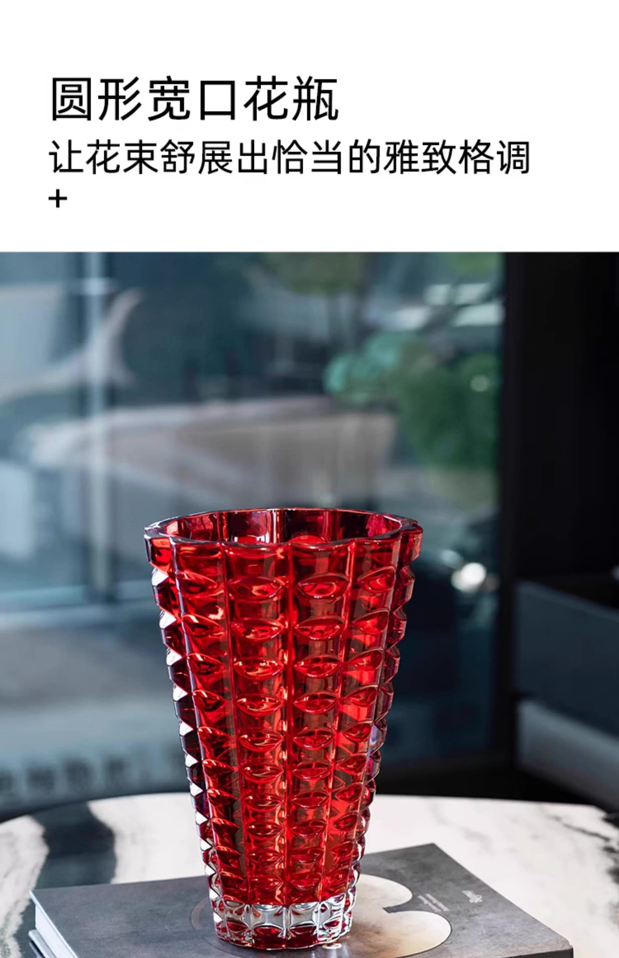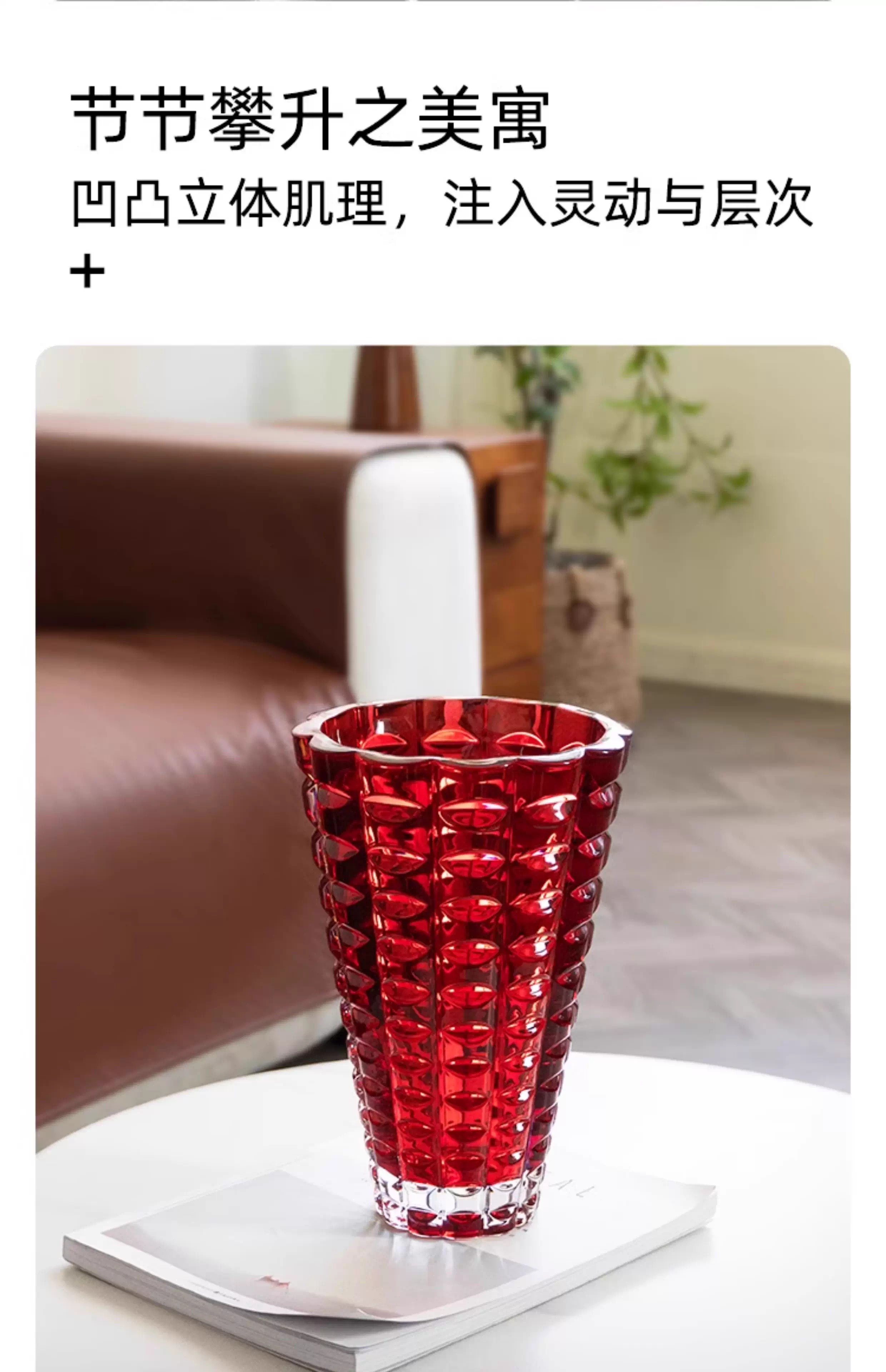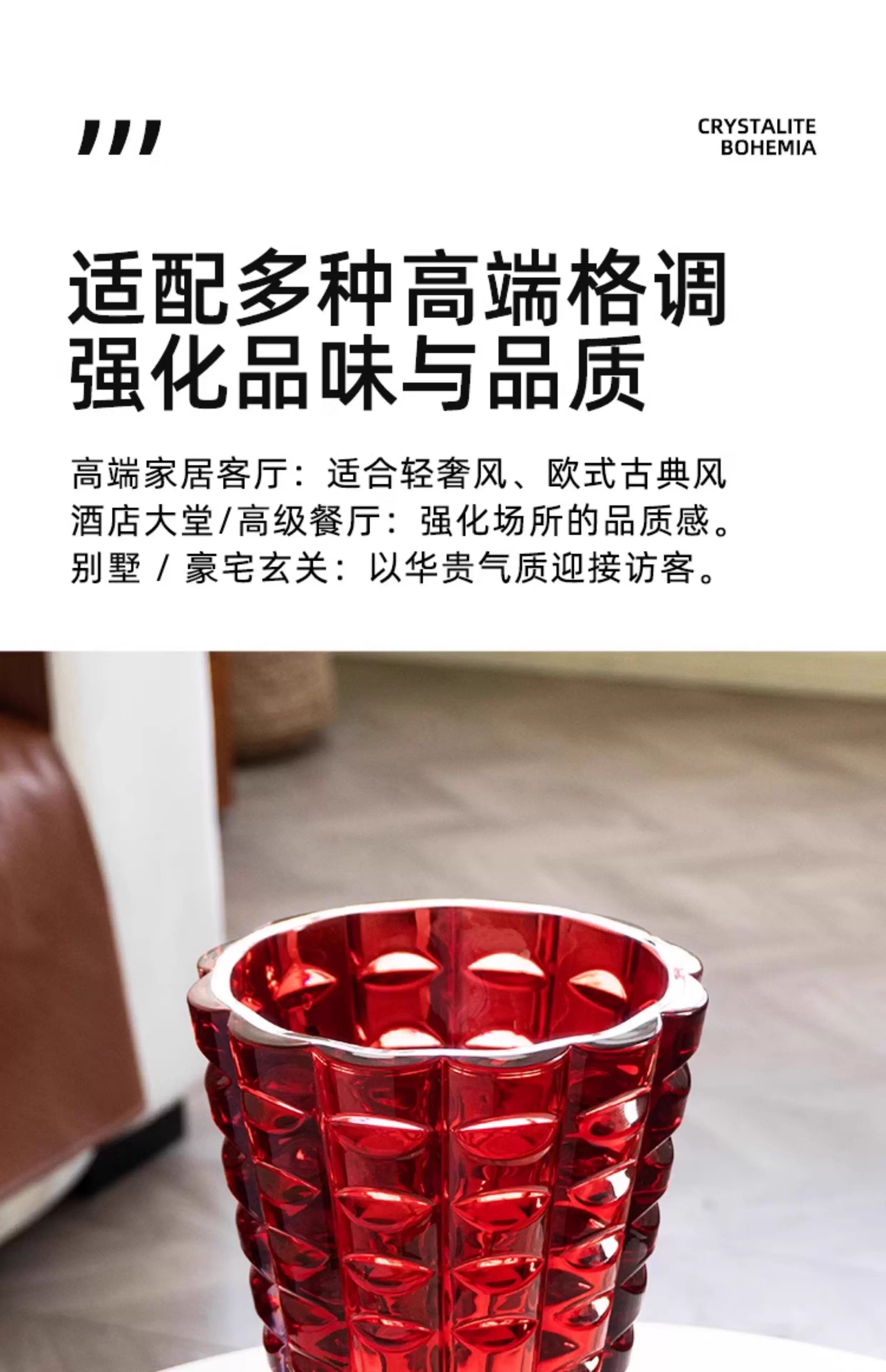 捷克进口BOHEMIA网红水晶玻璃花瓶婚礼插花欧式摆件红色客厅摆件波西米亚千禧花瓶(红)26cm