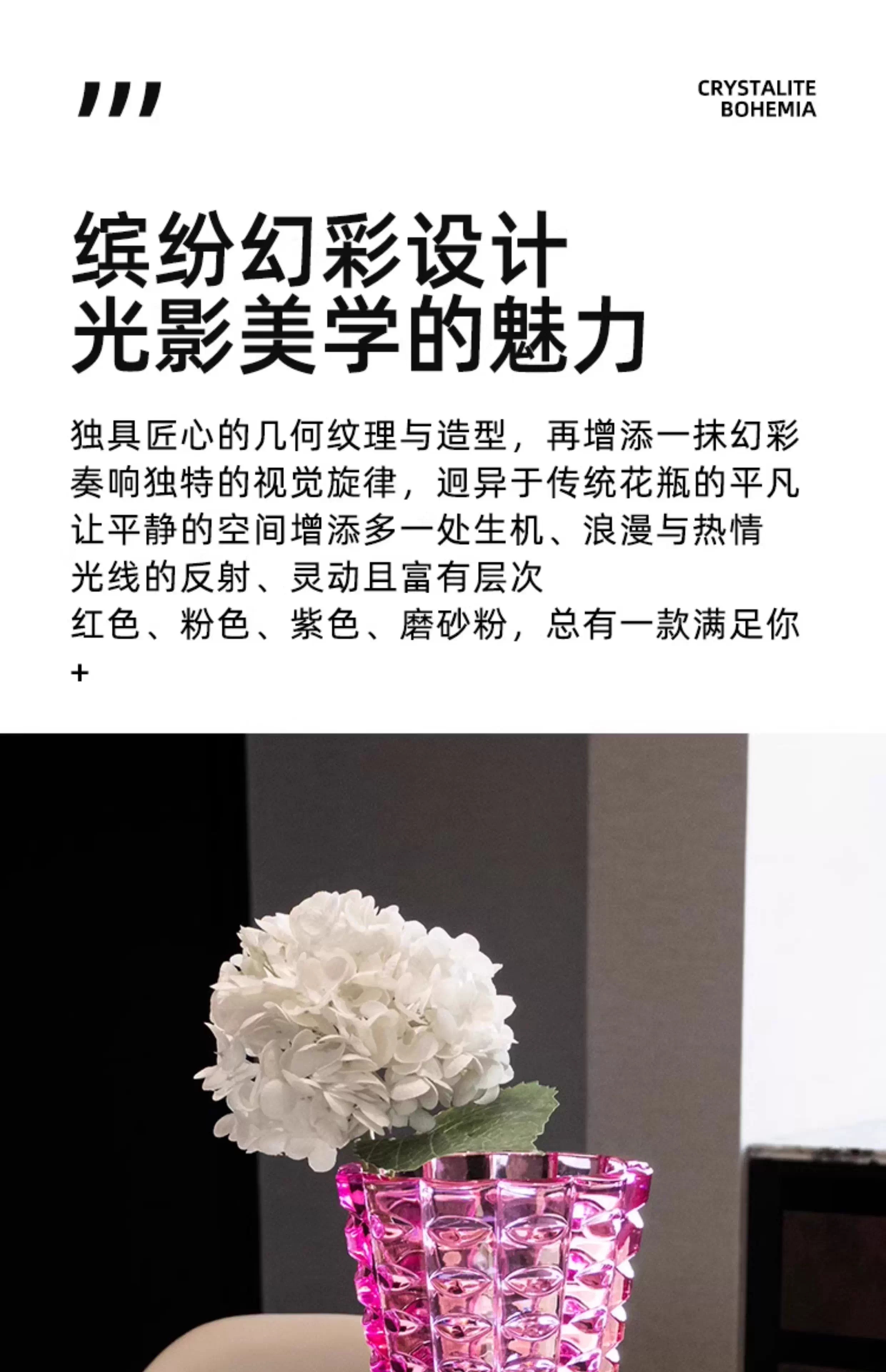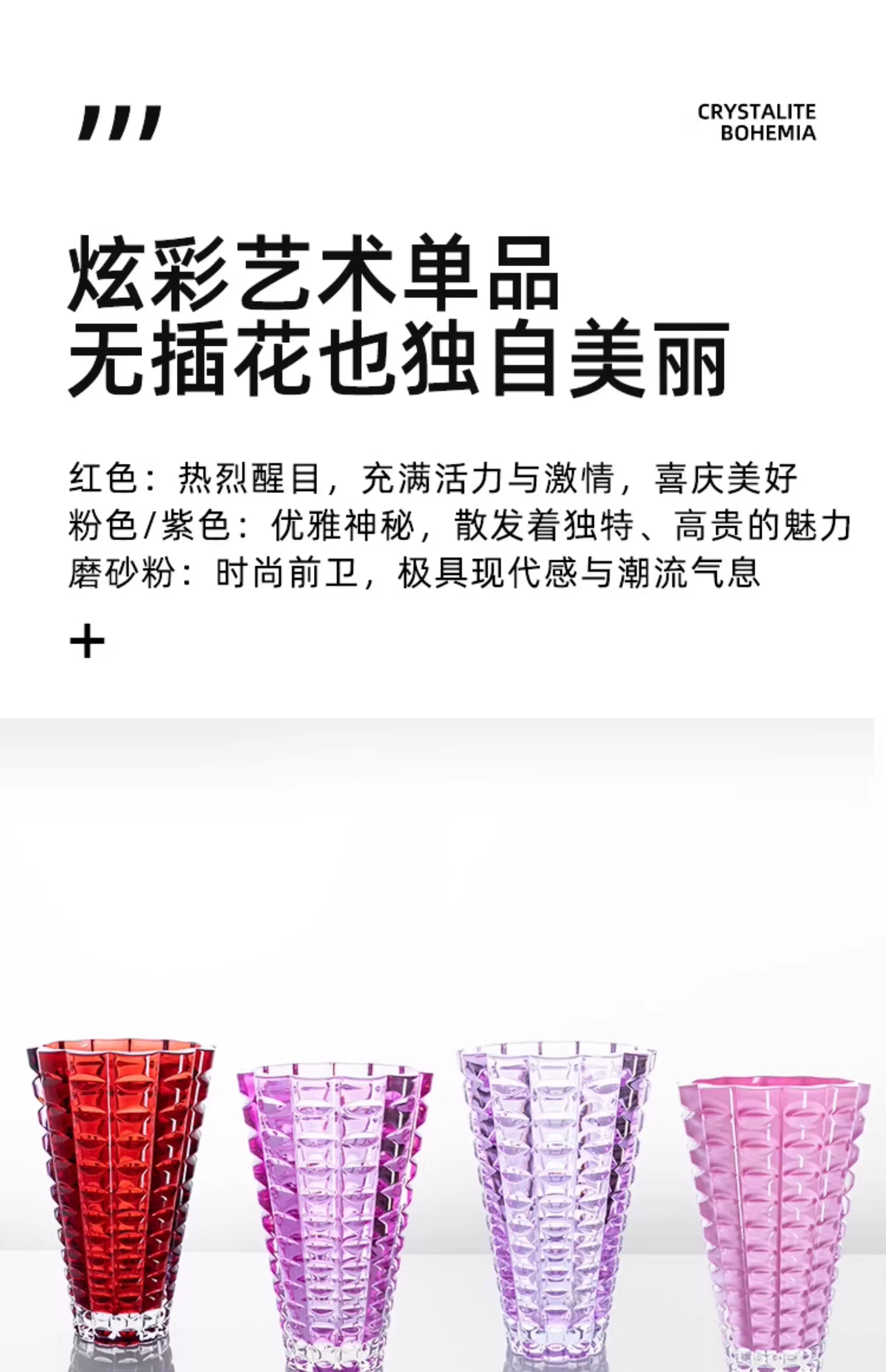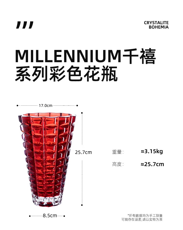 捷克进口BOHEMIA网红水晶玻璃花瓶婚礼插花欧式摆件红色客厅摆件波西米亚千禧花瓶(红)26cm