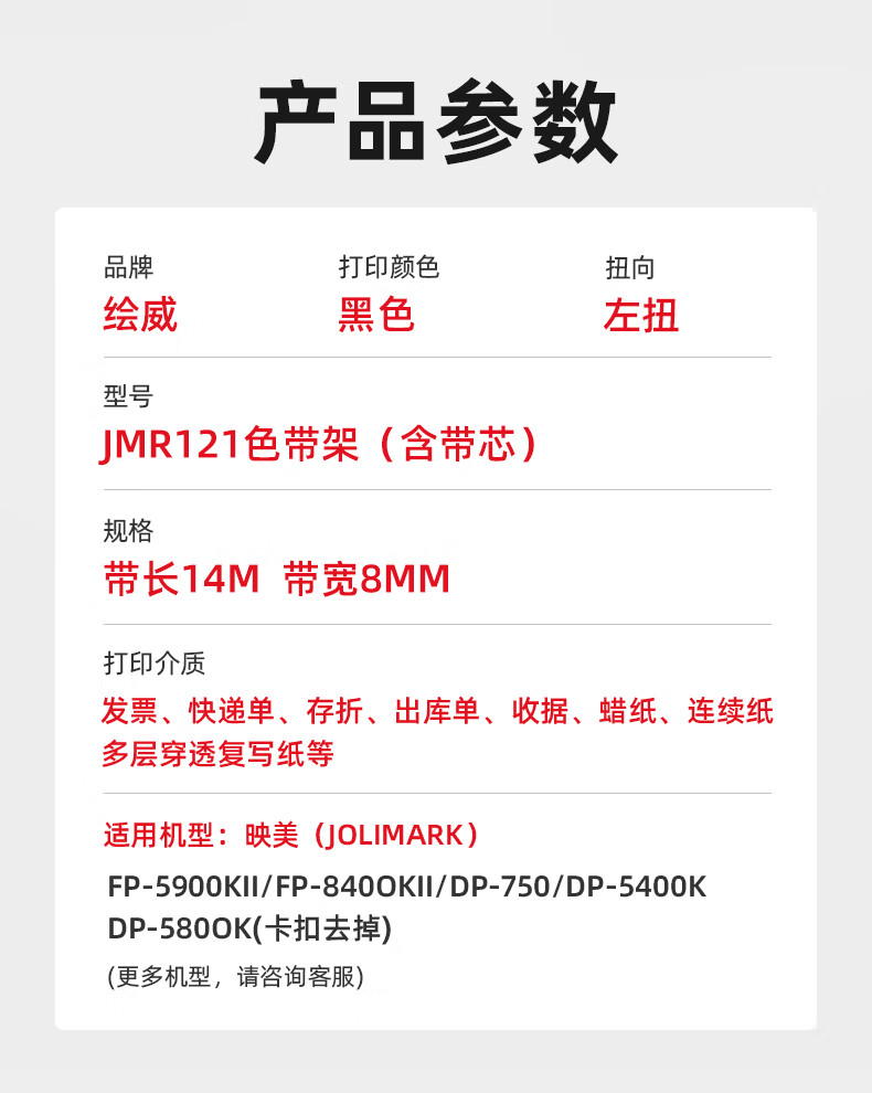 绘威JMR121色带架 适用映美FP-5900KII FP-8400KIII DP-750 DP-5400K打印机色带