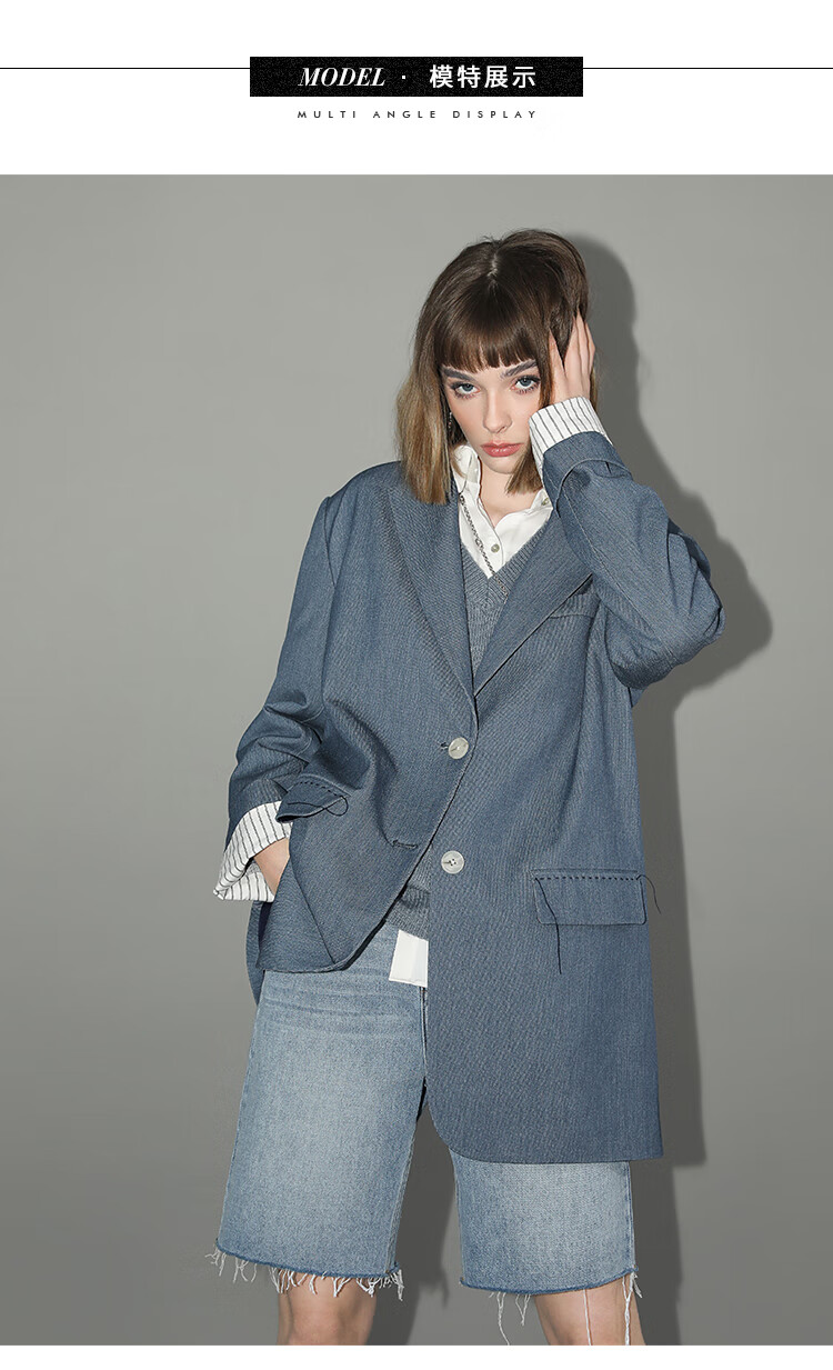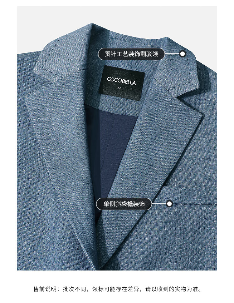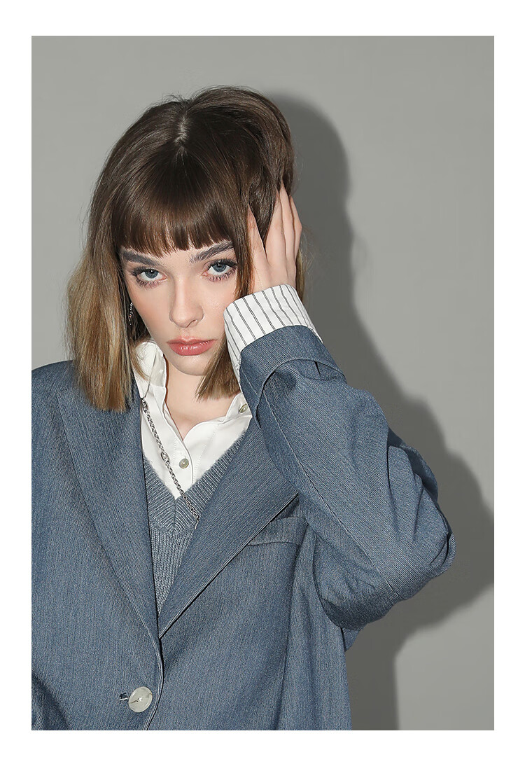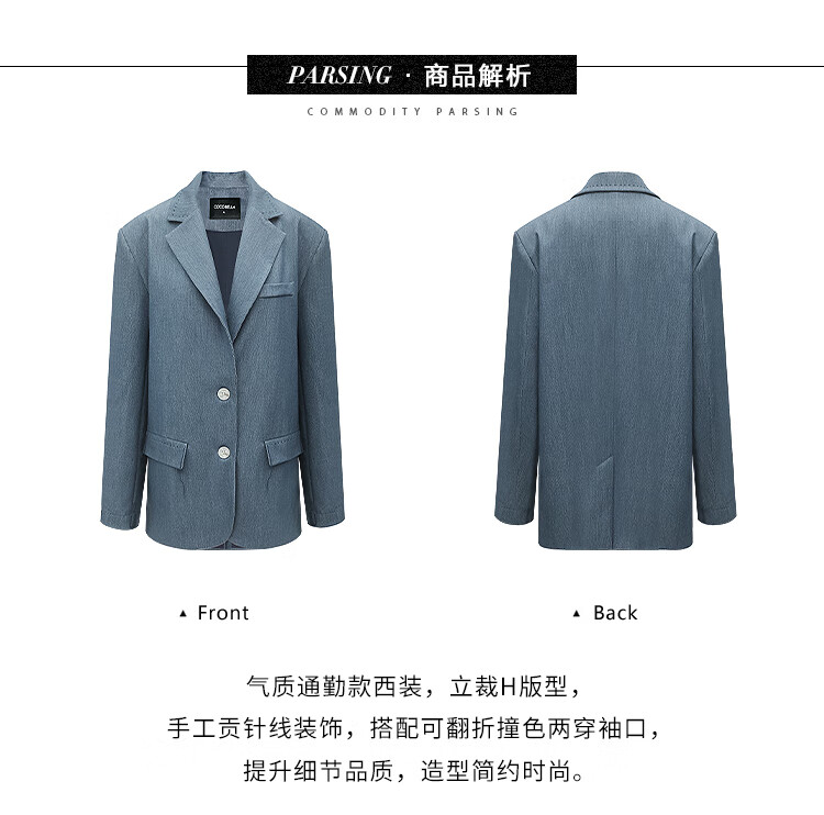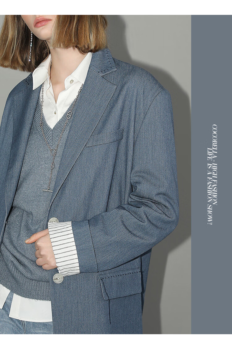 COCOBELLA撞色条纹通勤贡针西装女中性风廓形休闲西服SI3011