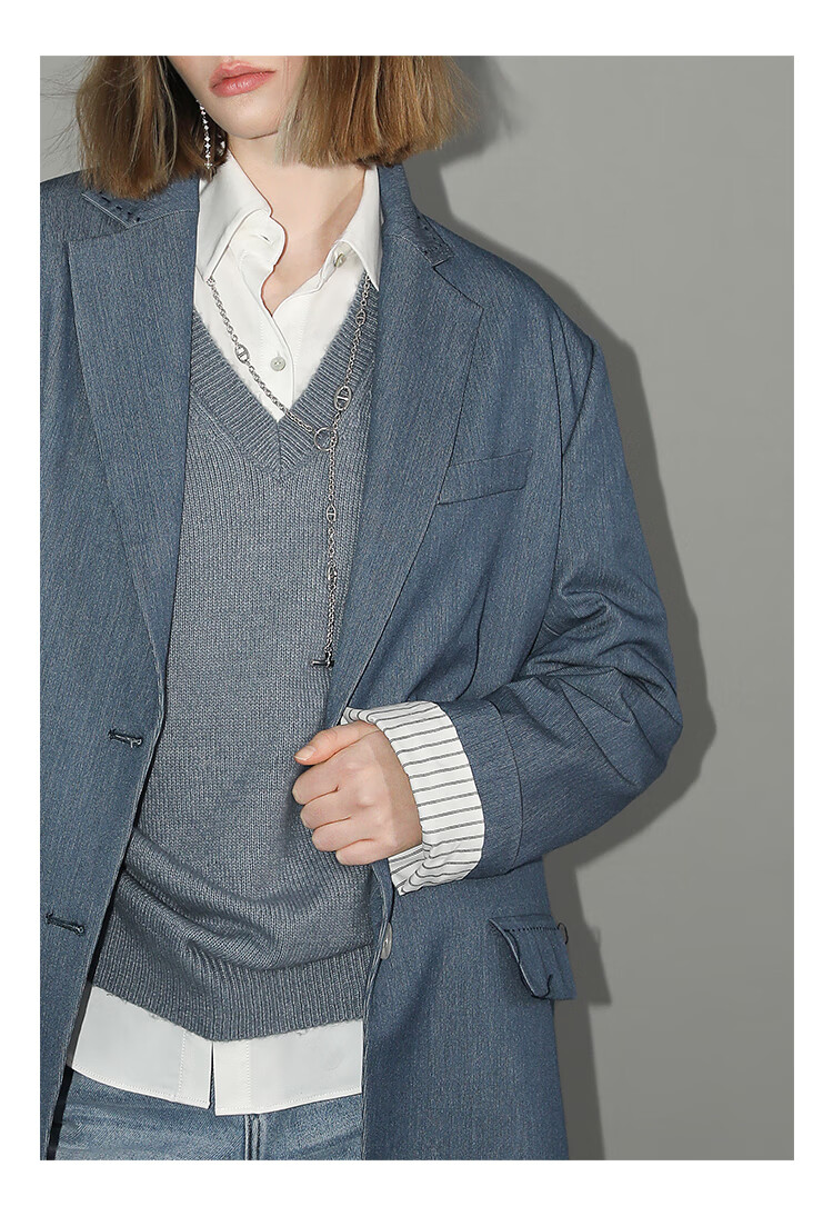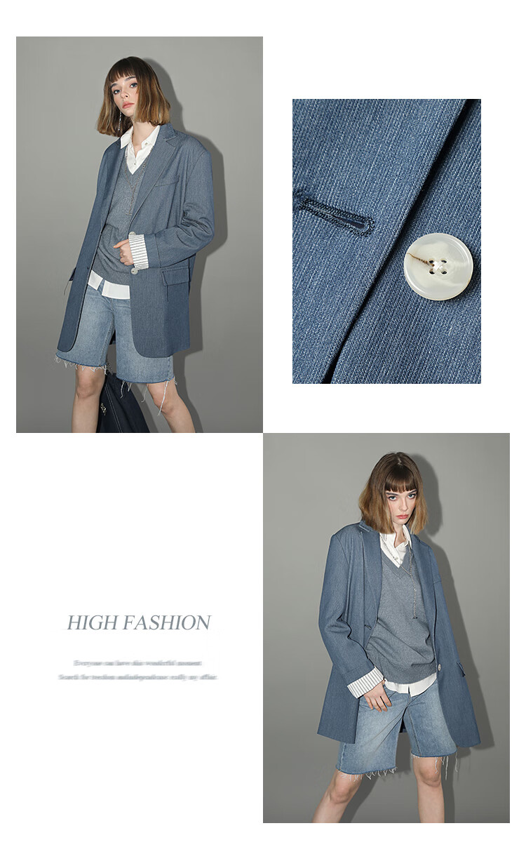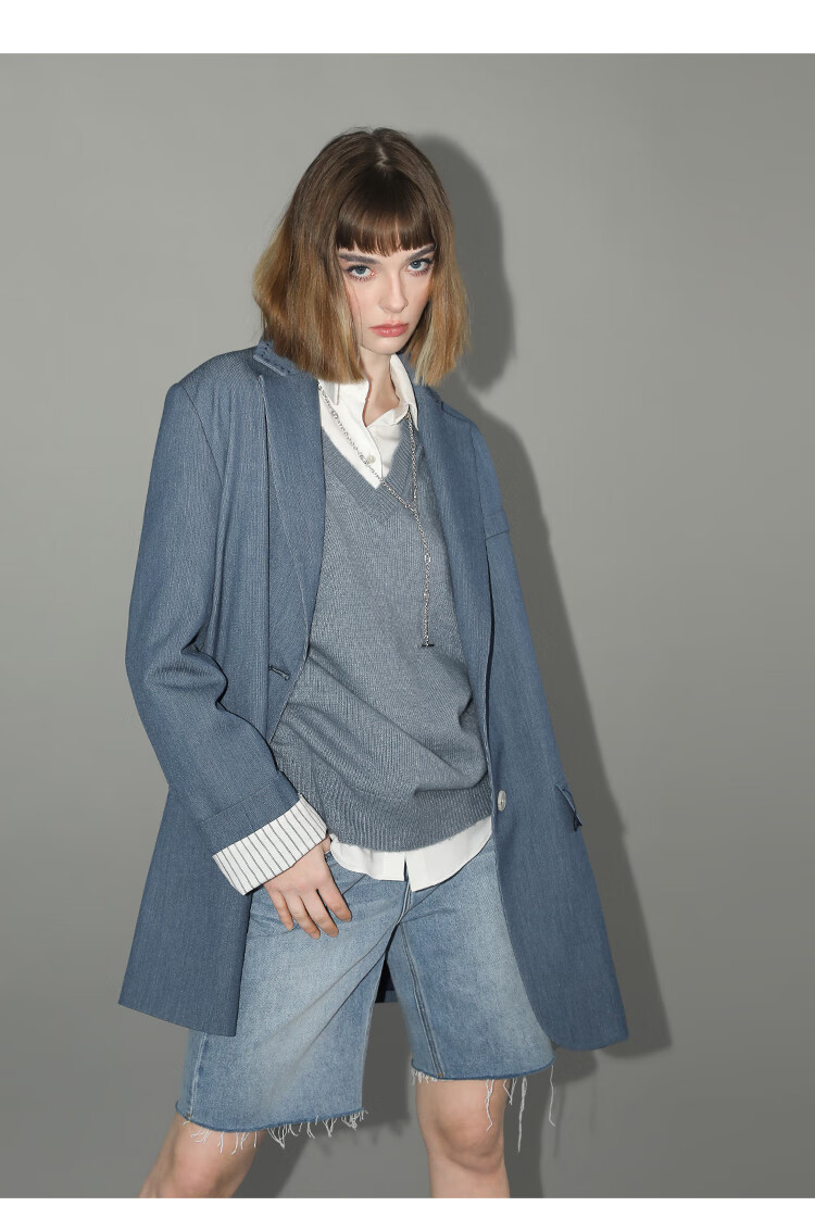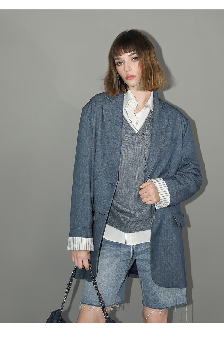 COCOBELLA撞色条纹通勤贡针西装女中性风廓形休闲西服SI3011