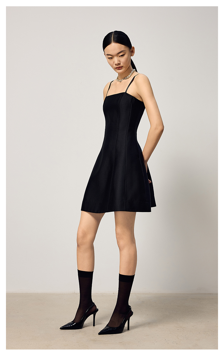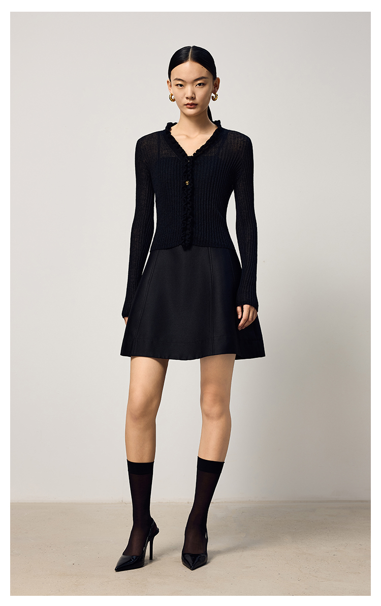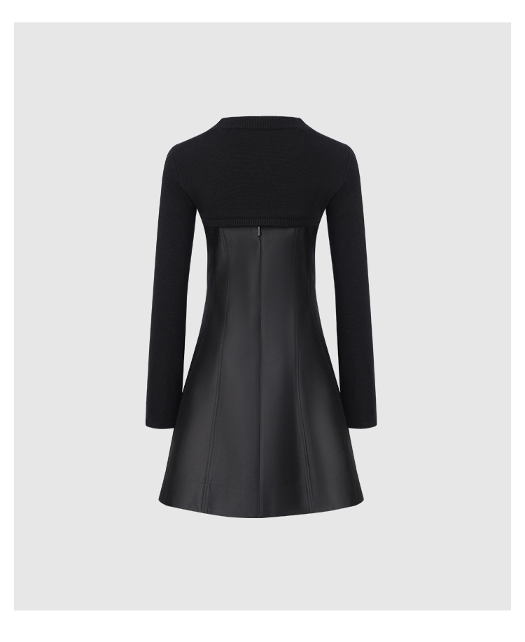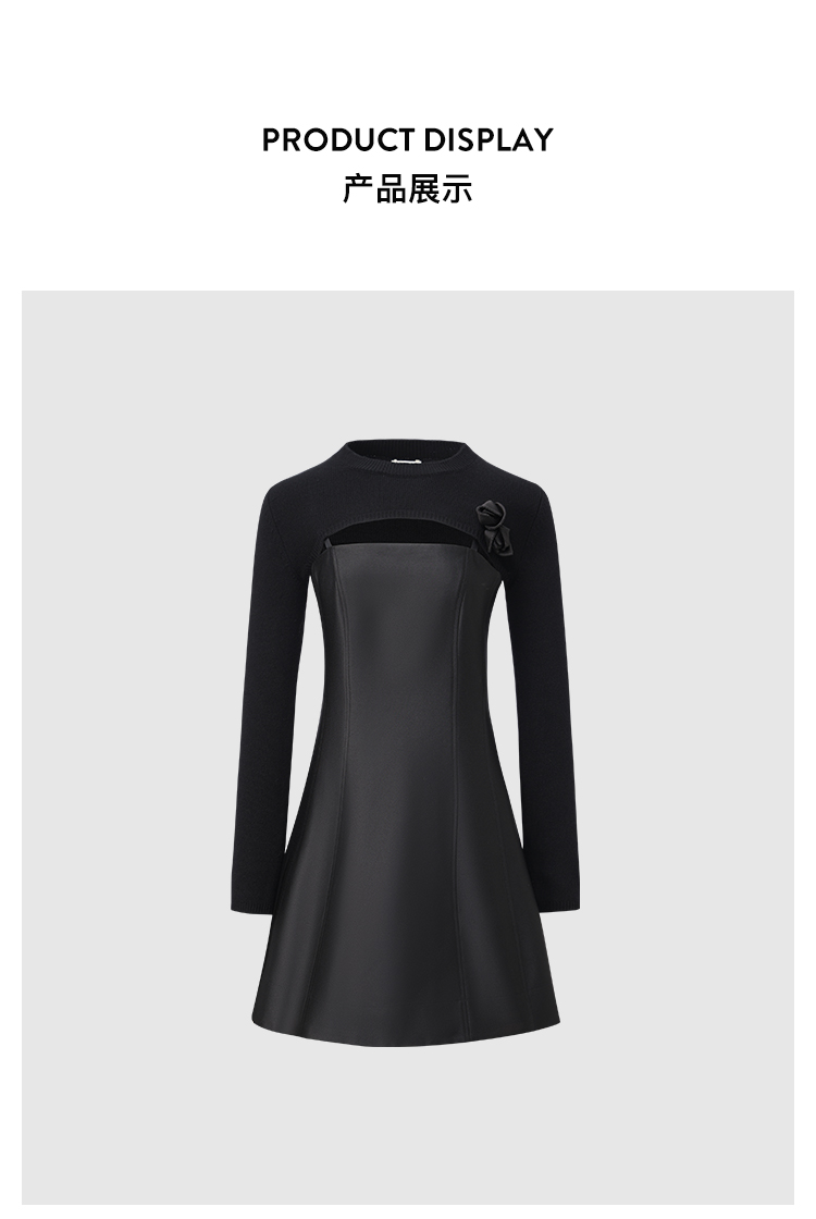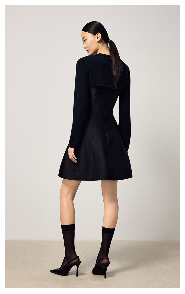 (绵羊毛)【JASON WU】2025秋冬新款收腰针梭拼两件式小黑裙连衣裙女