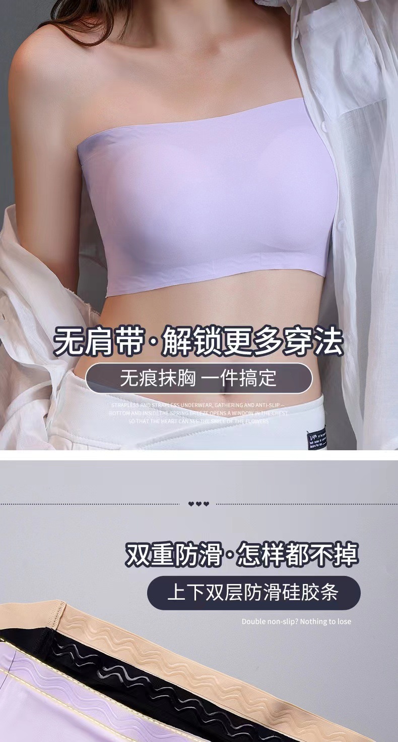 【第二件0元,五色可选!】轻松穿戴,一字围无肩带,抹胸式裹胸夏季,防滑美背带胸垫,舒适无痕冰丝内衣,让你美丽又自在。