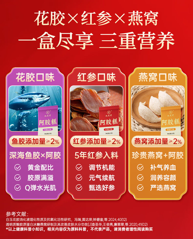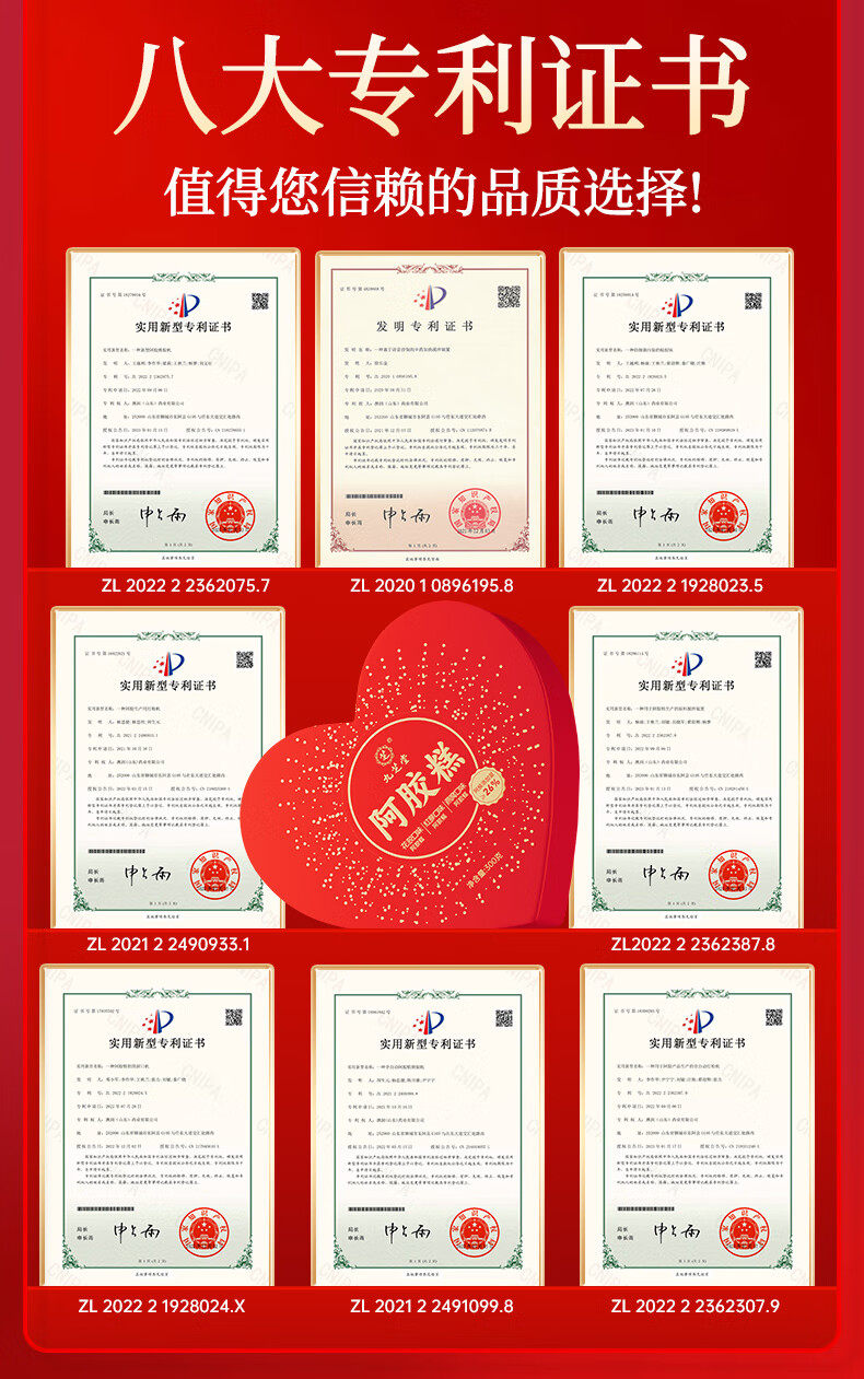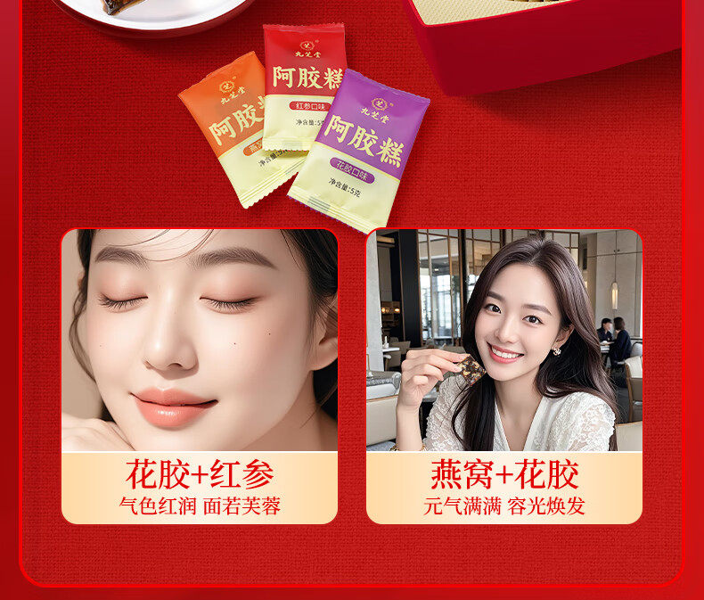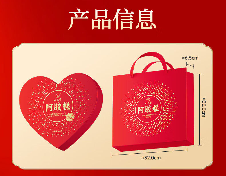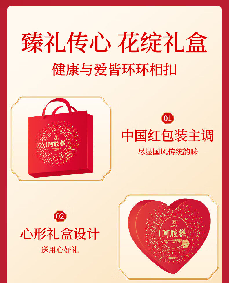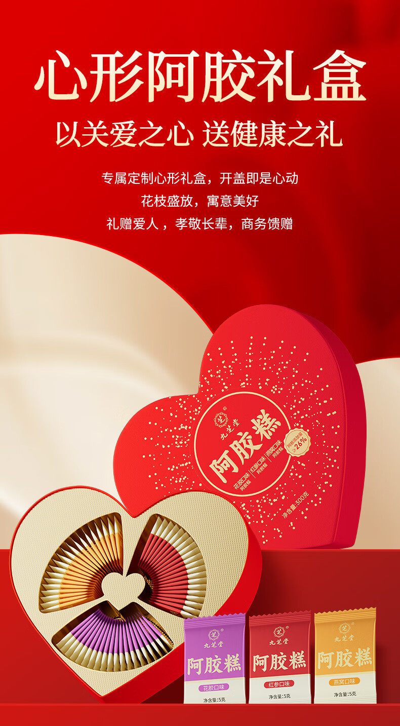 九芝堂-阿胶糕手工补气血心形礼盒(花胶口味|红参口味|燕窝口味)300克(有效期5月26日)