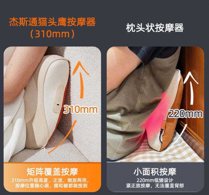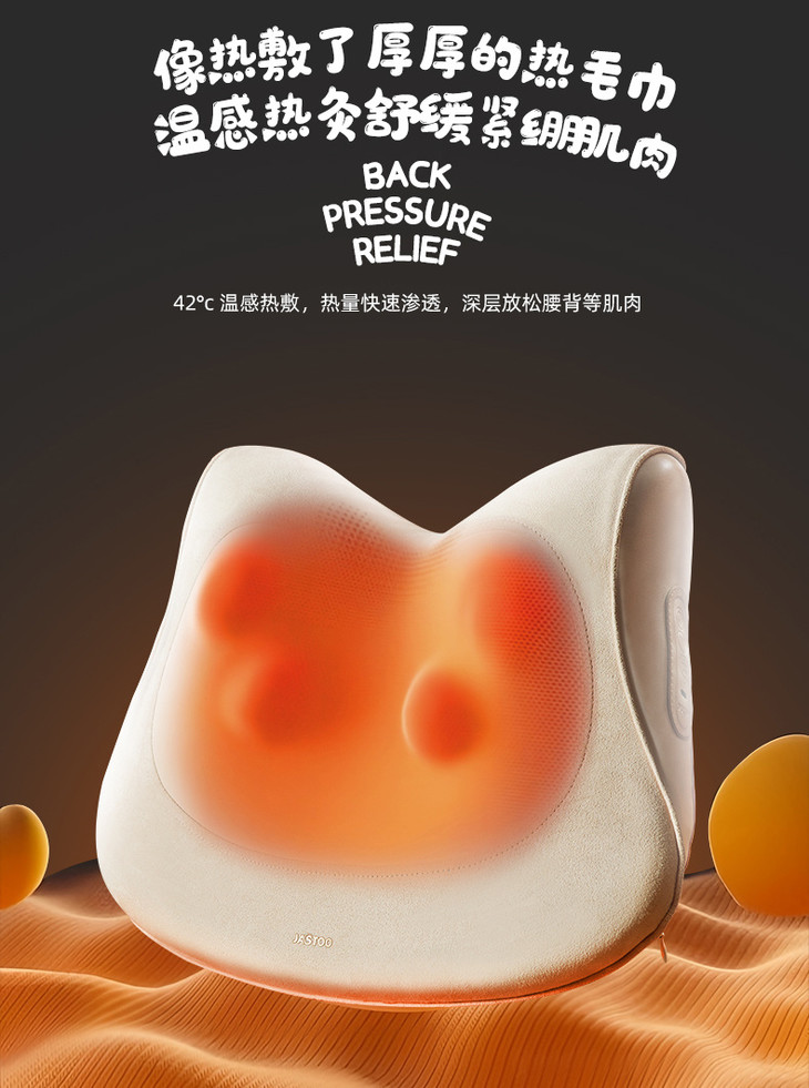 而且啊,我们的按摩仪还能和腰部靠枕完美结合