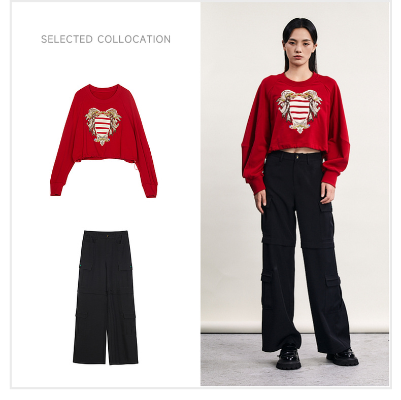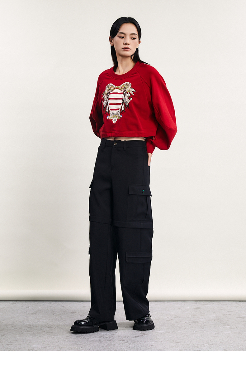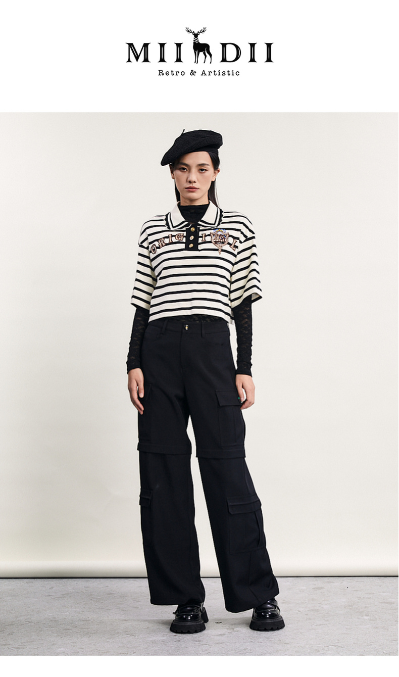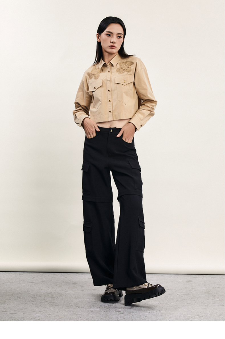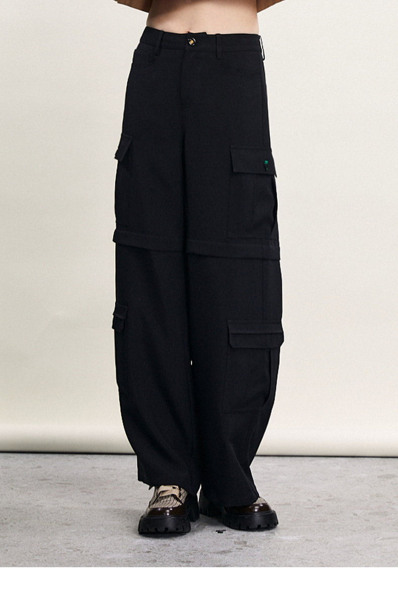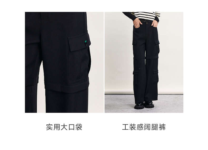 谜底休闲裤女2024春新款工装风时尚大口袋百搭直筒长裤241MK0083