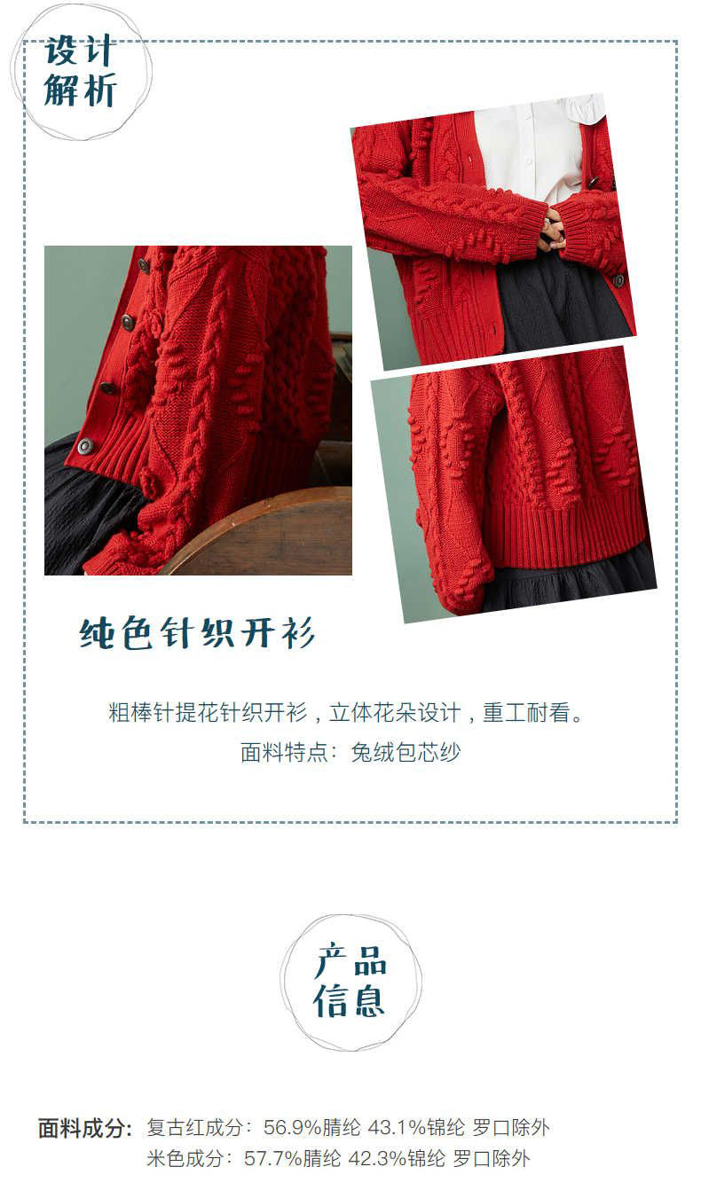 ZIHAN紫涵简约纯色针织开衫2022春季新款基础百搭花朵毛衣粗织提花外套Z2Z01AS199
