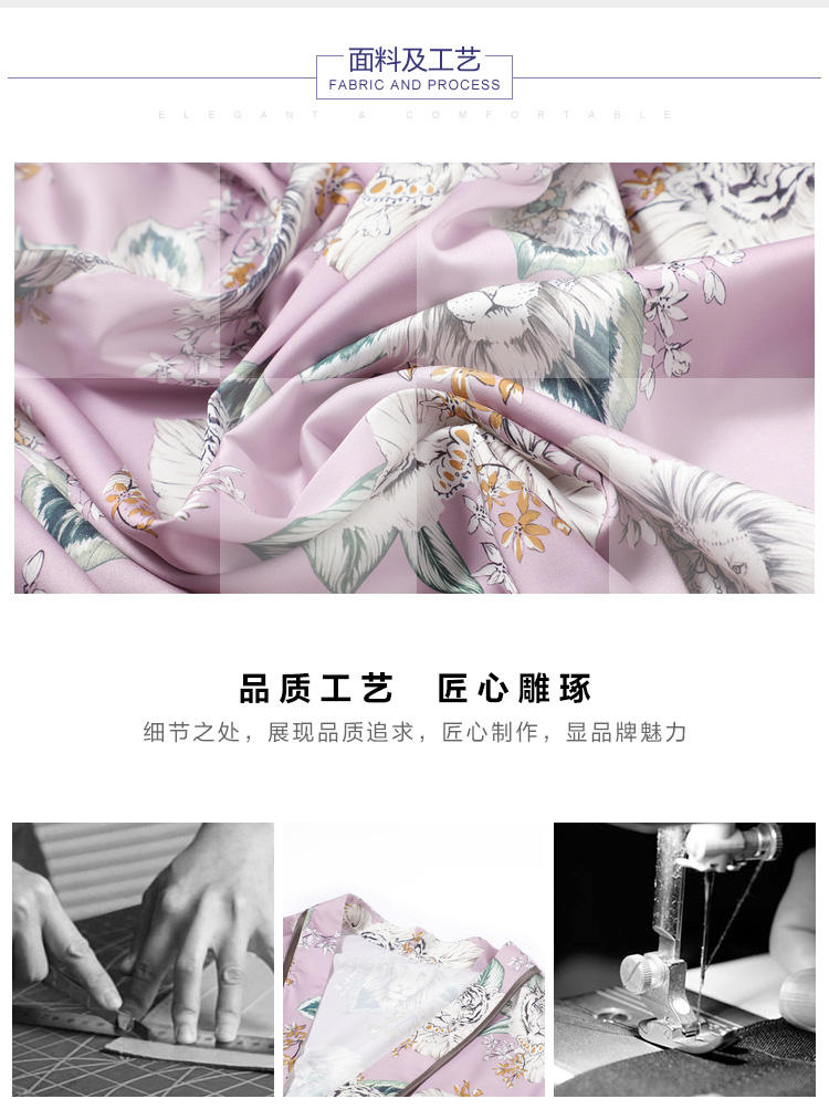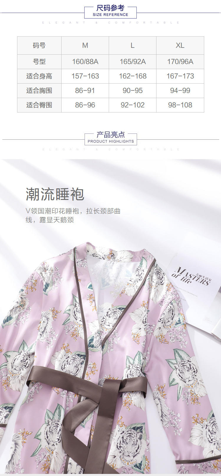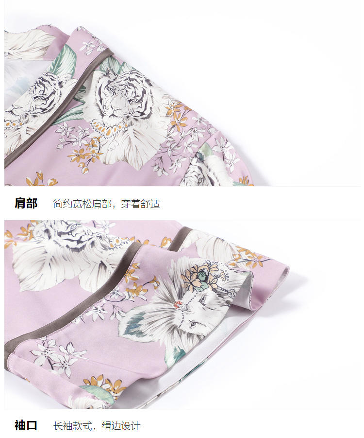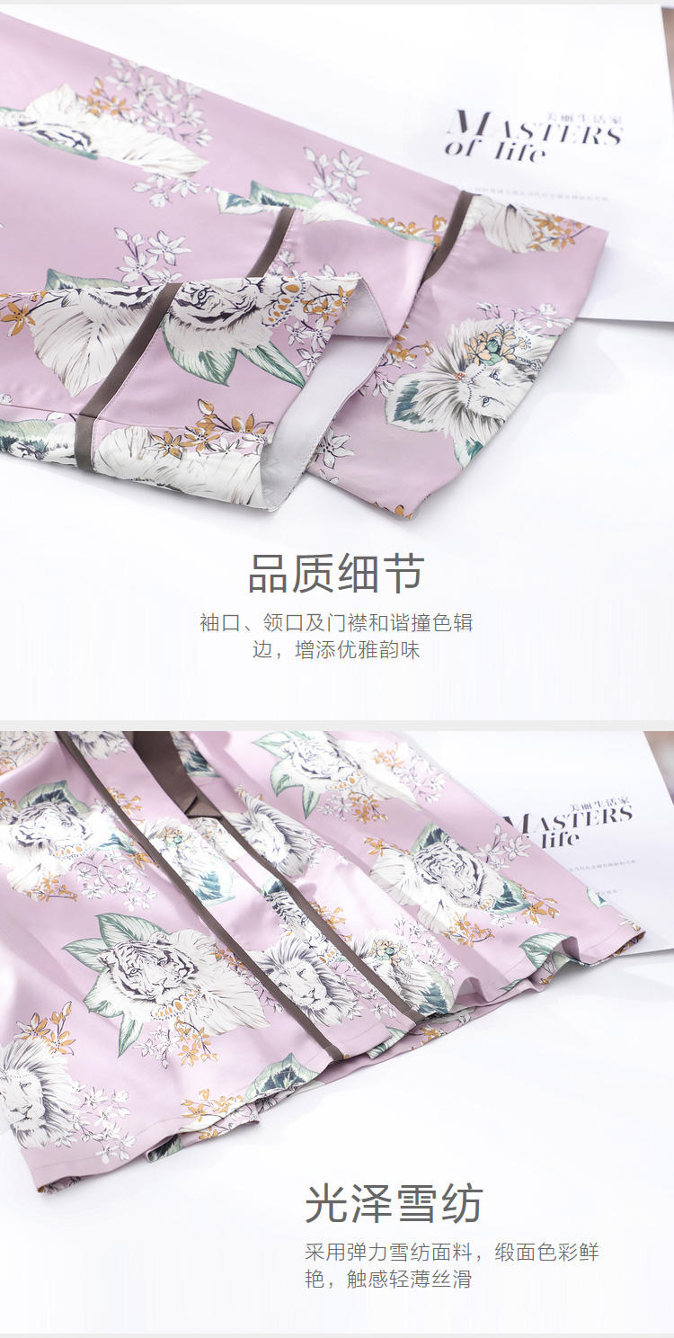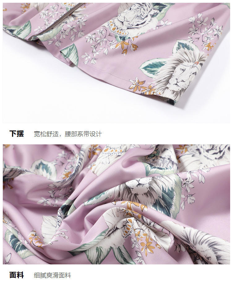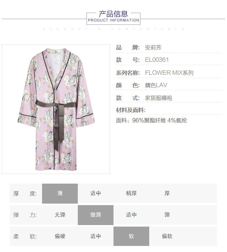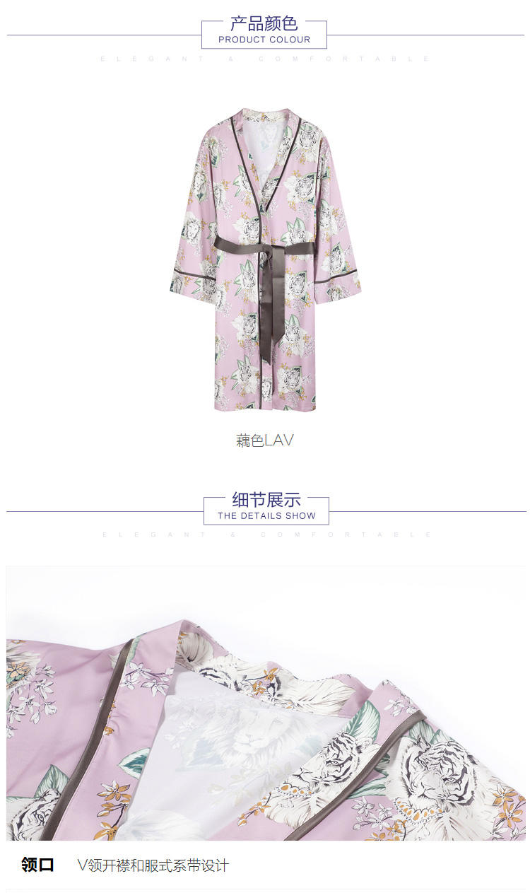 安莉芳新品薄款冰丝印花睡袍女可外穿和服式系带家居睡衣EL00361