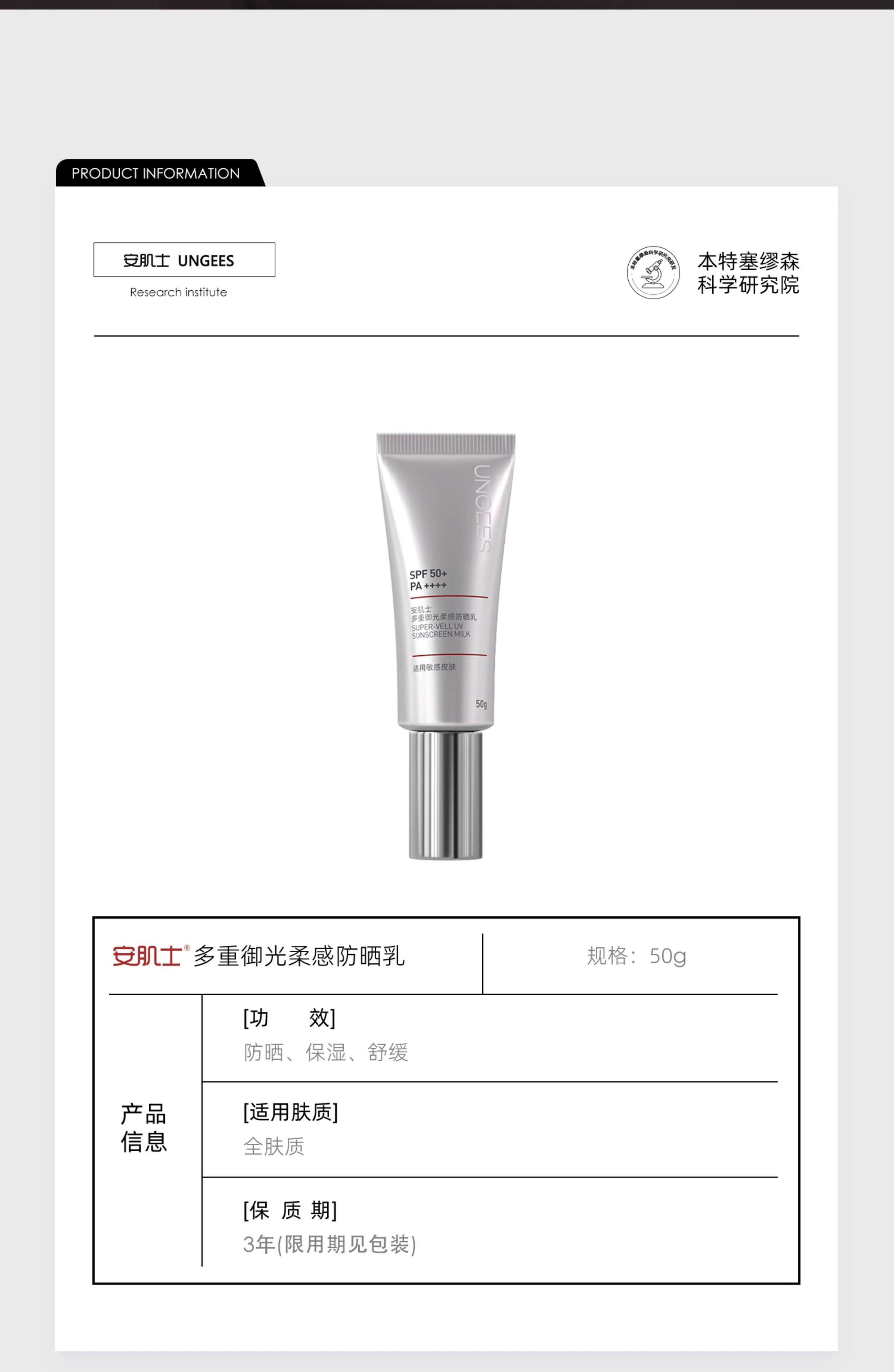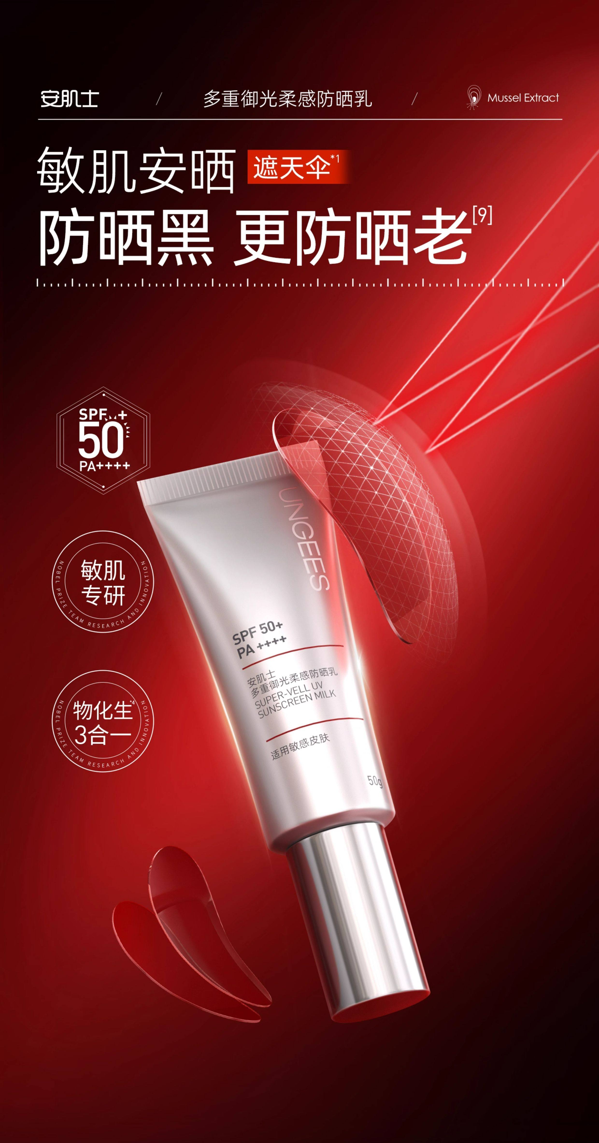 (72小时发货)安肌士防晒霜,SPF50+PA++++、全波段防护、13重养肤精华、隔离妆前三合一、秒成膜不闷痘、0酒精