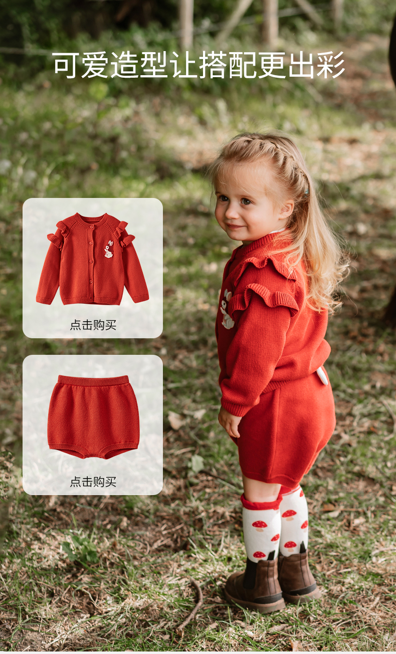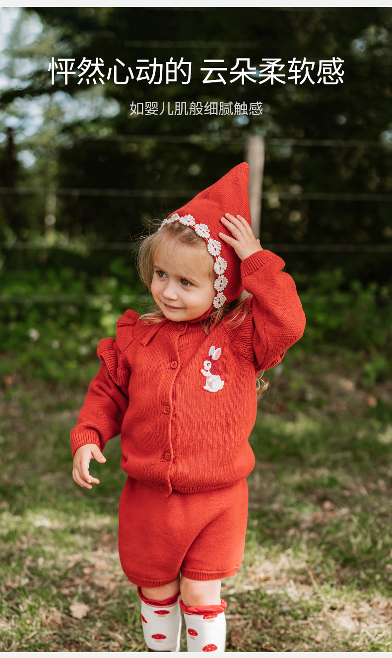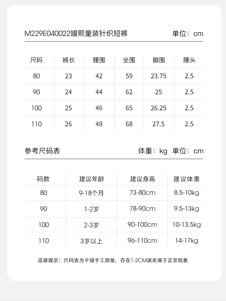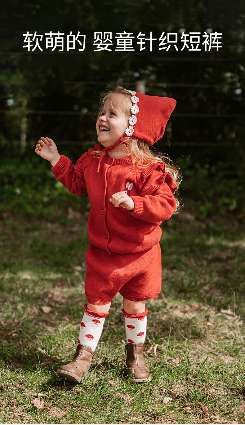 【宝宝服饰】嫚熙童装女童针织短裤2023年新款女宝宝外穿裤子可爱百搭针织短裤