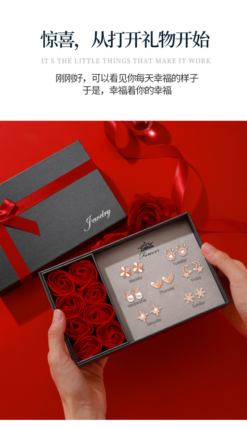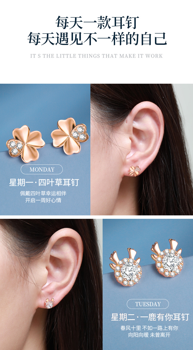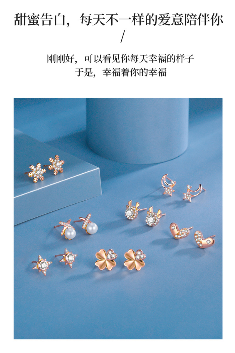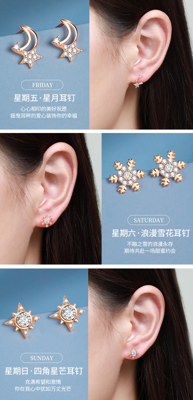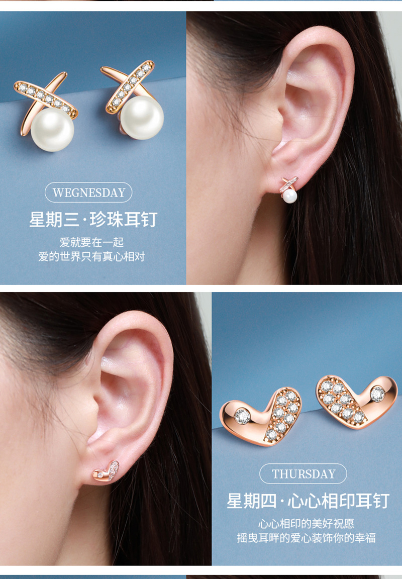 【一周七天 每天都不一样】简约新款潮星耳钉,999银针打造,一周七天不同风情,送礼自用两相宜,圣诞、生日、情人节热卖爆款!