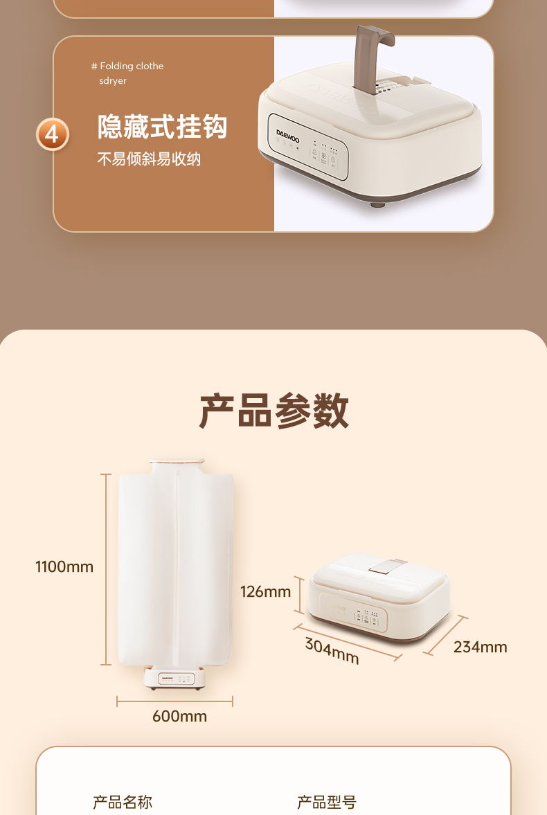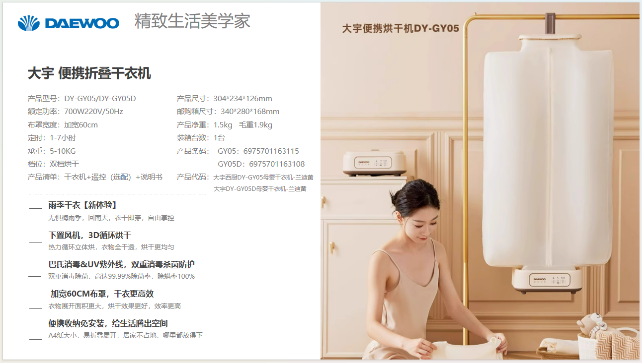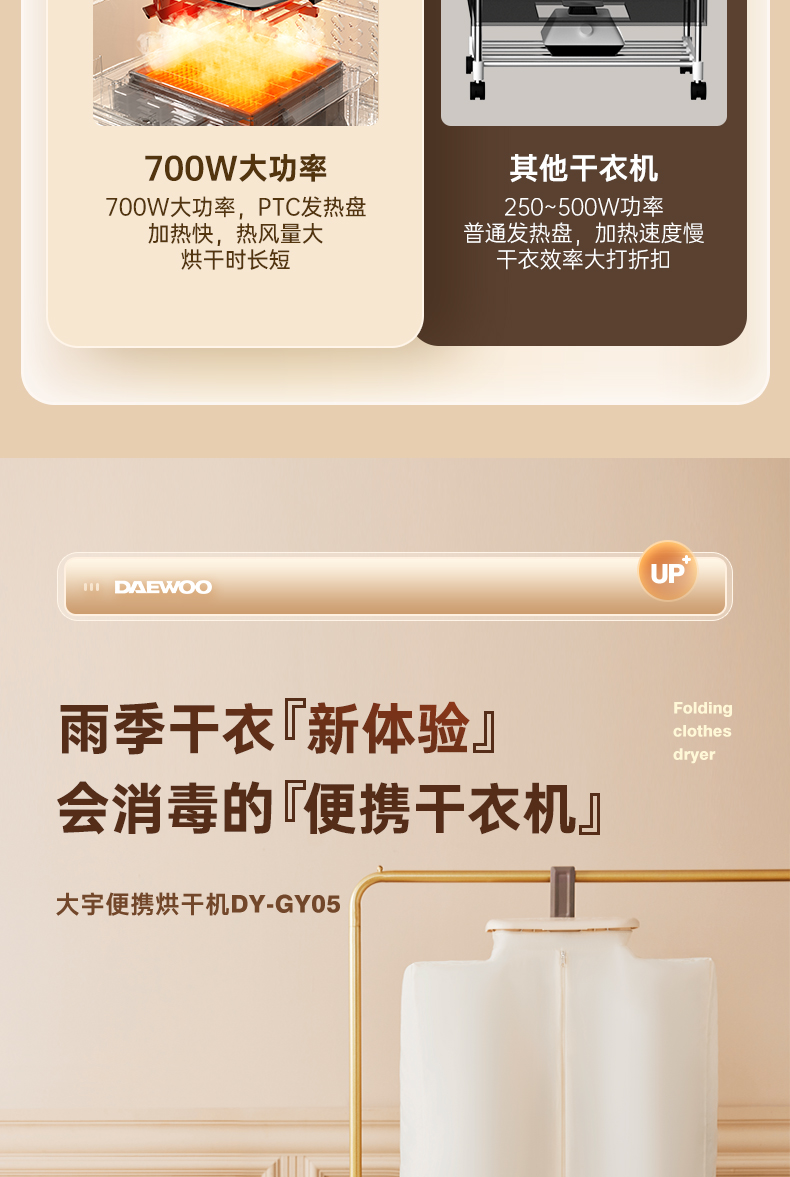 大宇烘干机家用烘衣服小型旅行便携衣服烘干神器可折叠宿舍干衣机DY-GY05