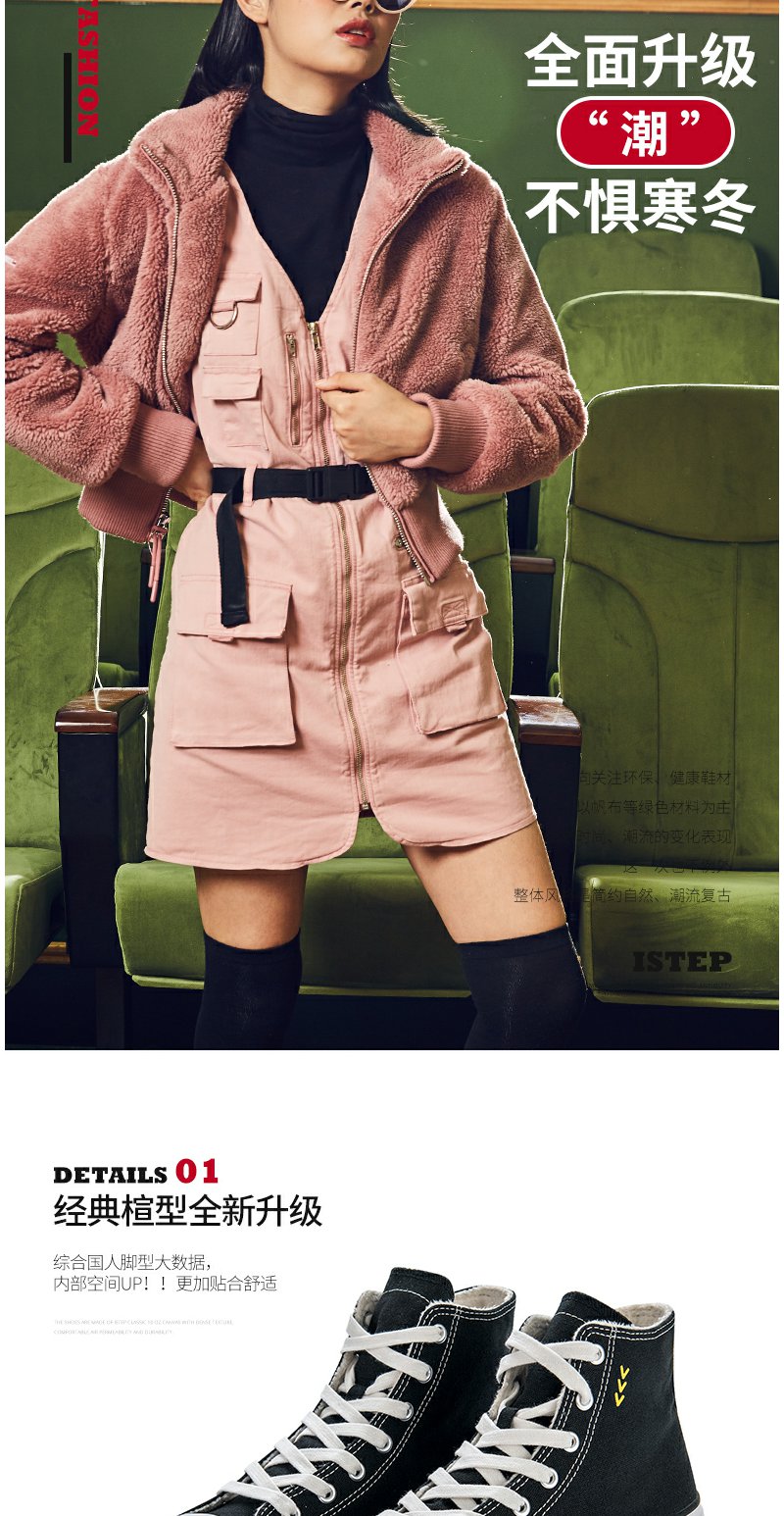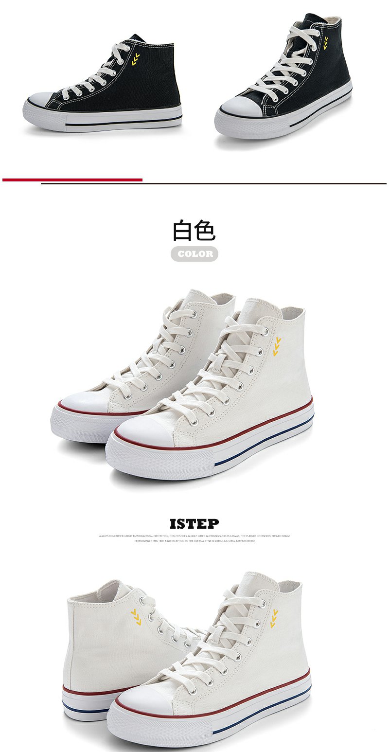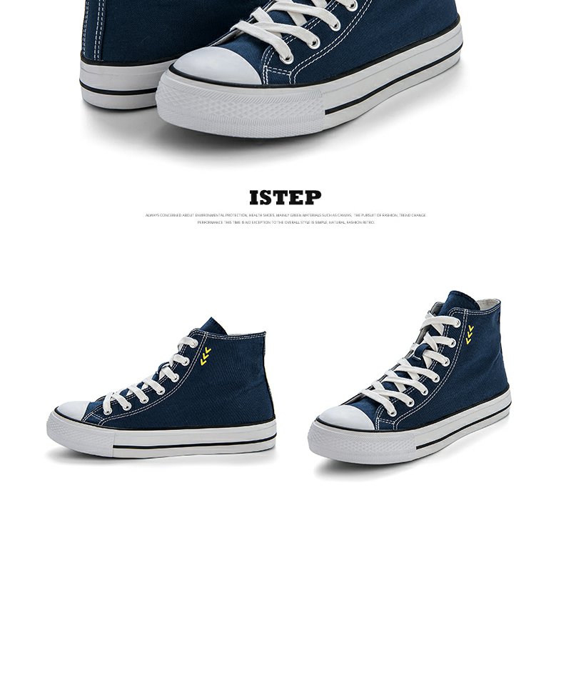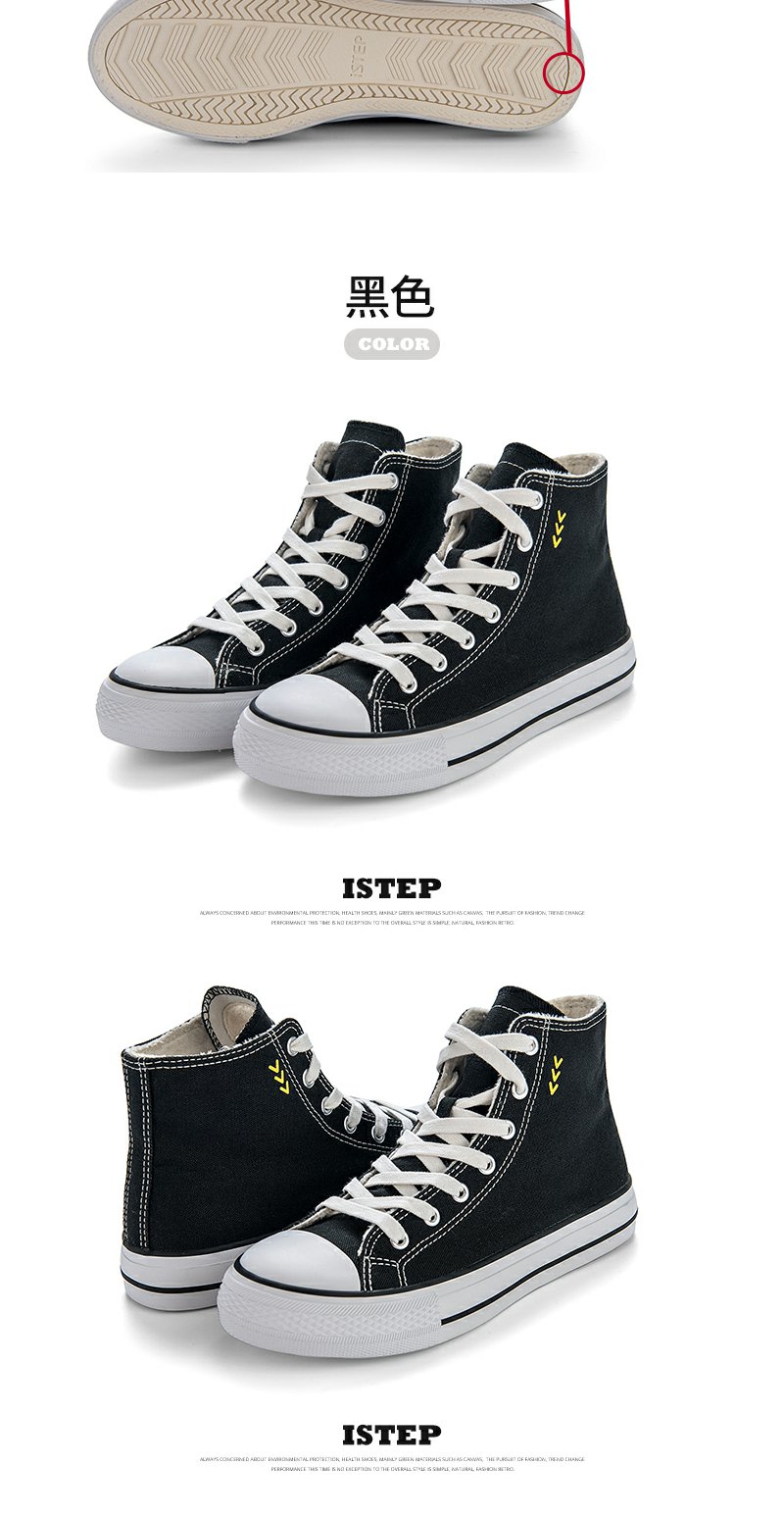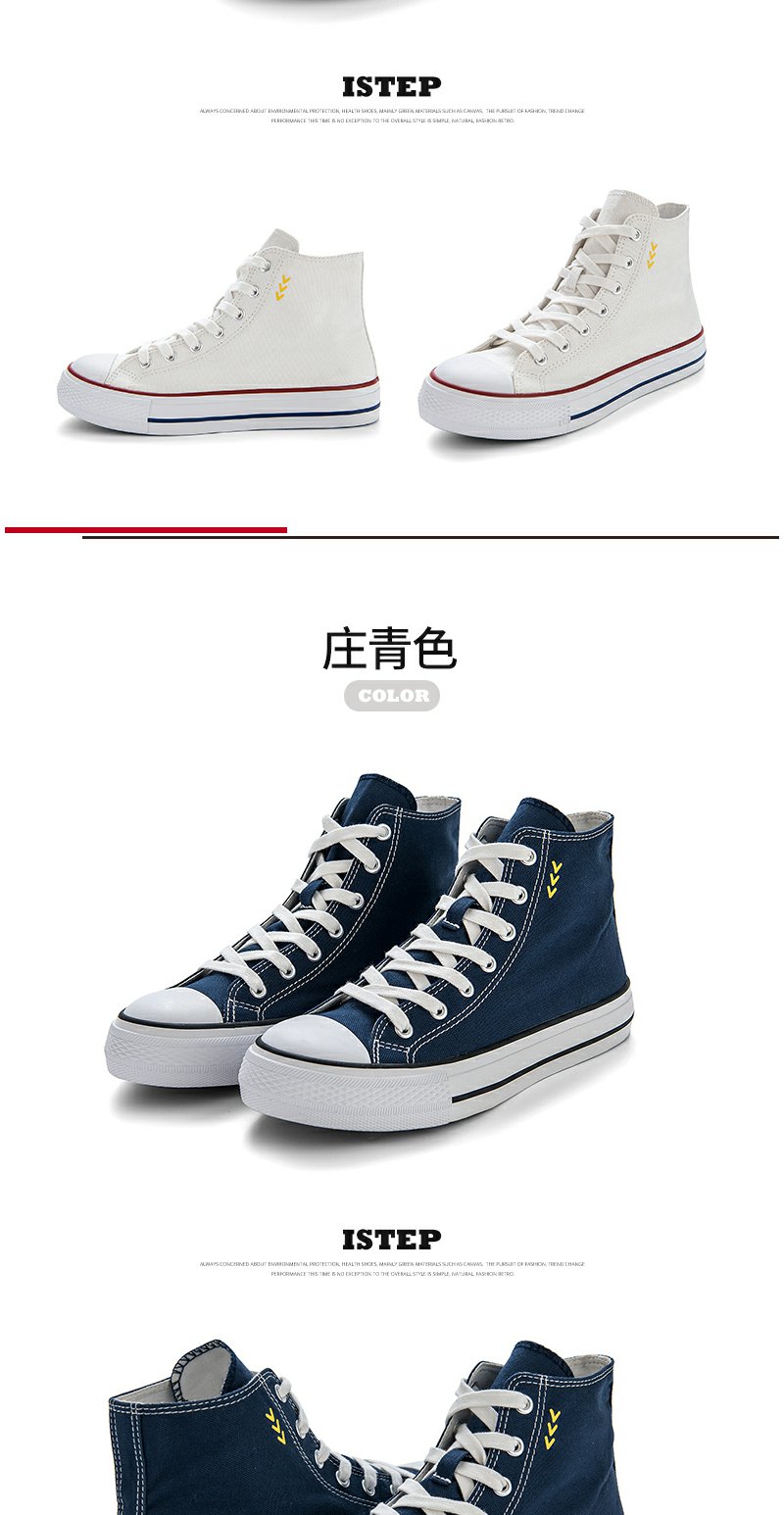 【正品】iSTEP高帮帆布鞋女2022新款百搭板鞋情侣款经典纯色休闲小白鞋女