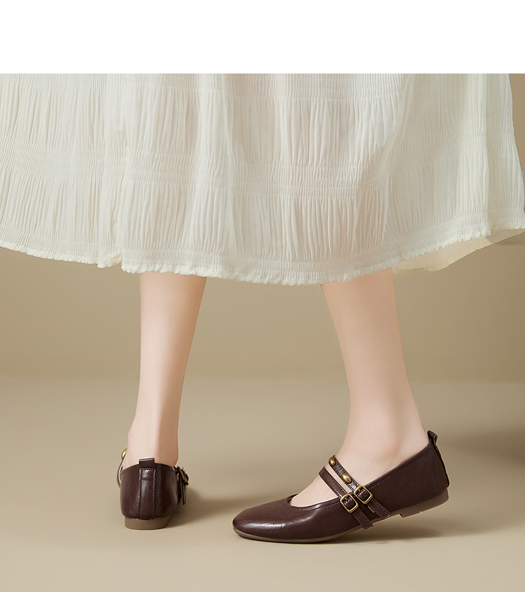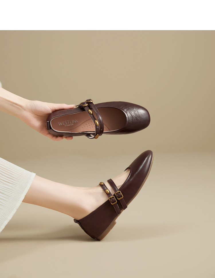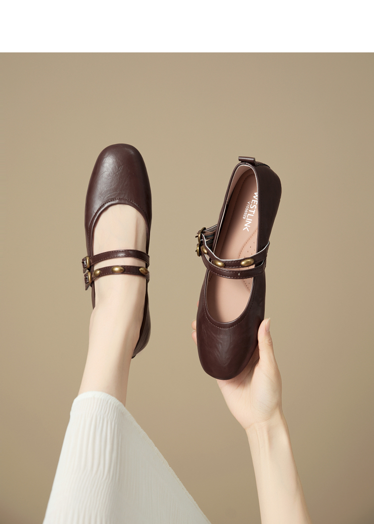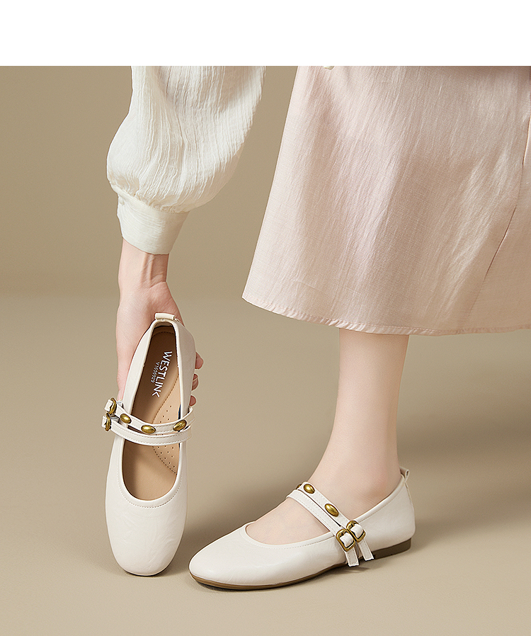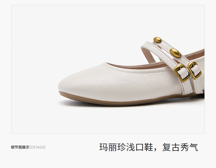 【限时秒杀】西遇平底玛丽珍鞋女新款秋季法式复古小金豆方头浅口软底单鞋V1656929