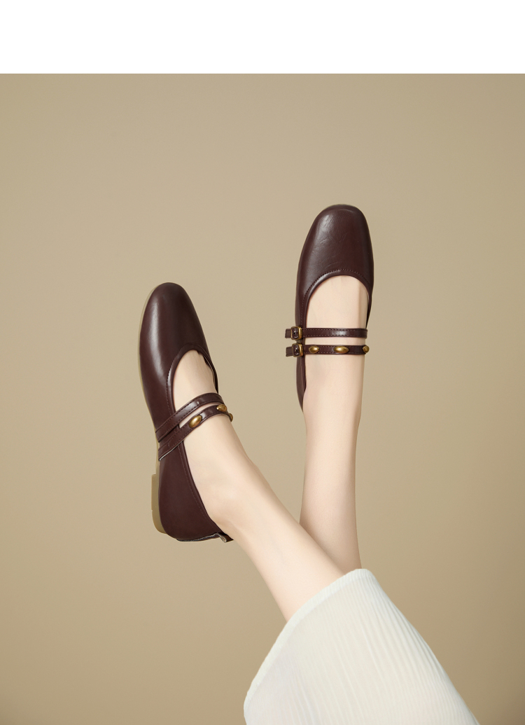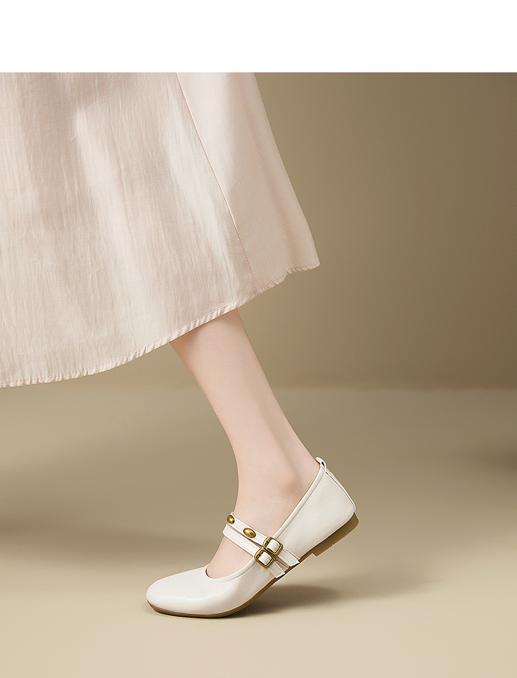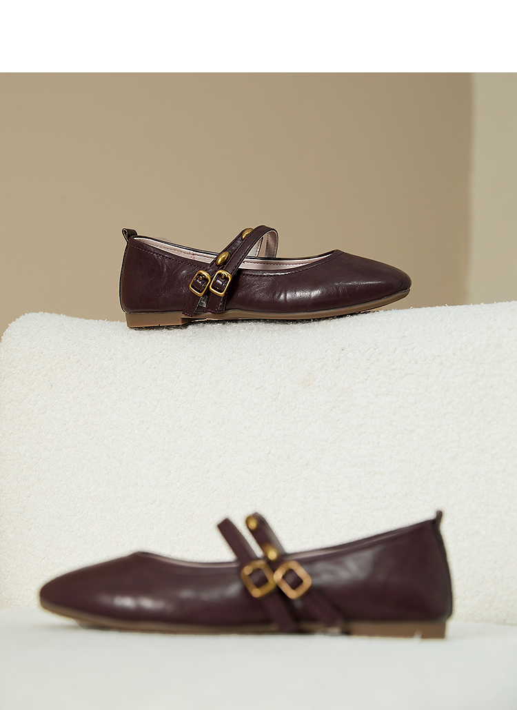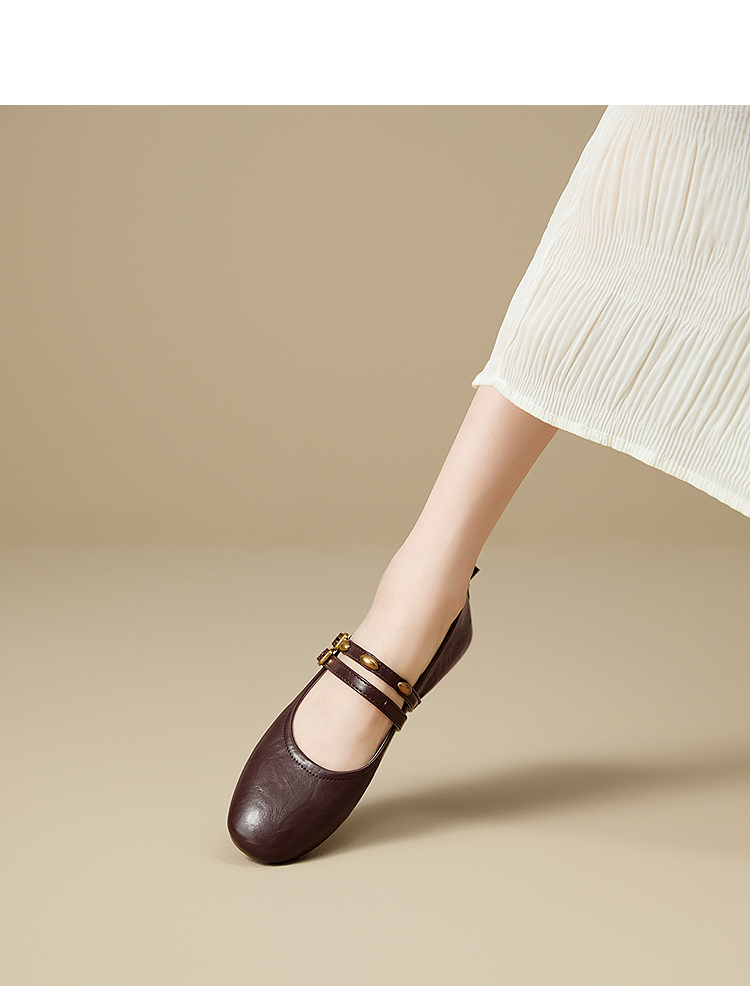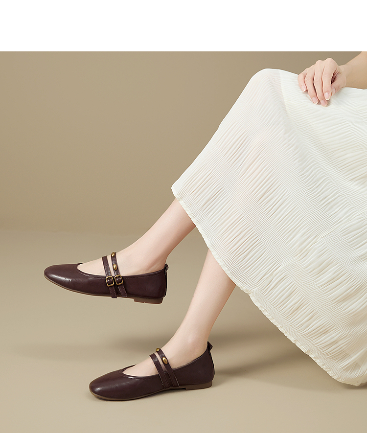 【限时秒杀】西遇平底玛丽珍鞋女新款秋季法式复古小金豆方头浅口软底单鞋V1656929