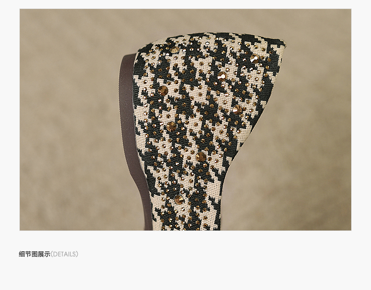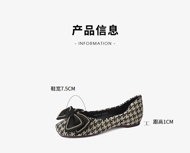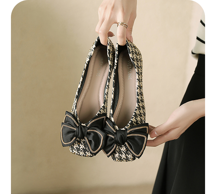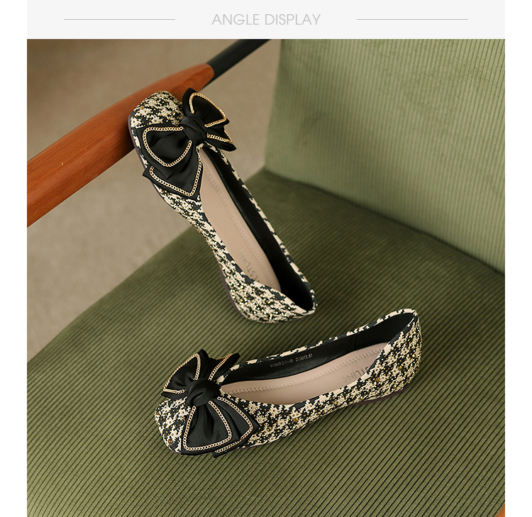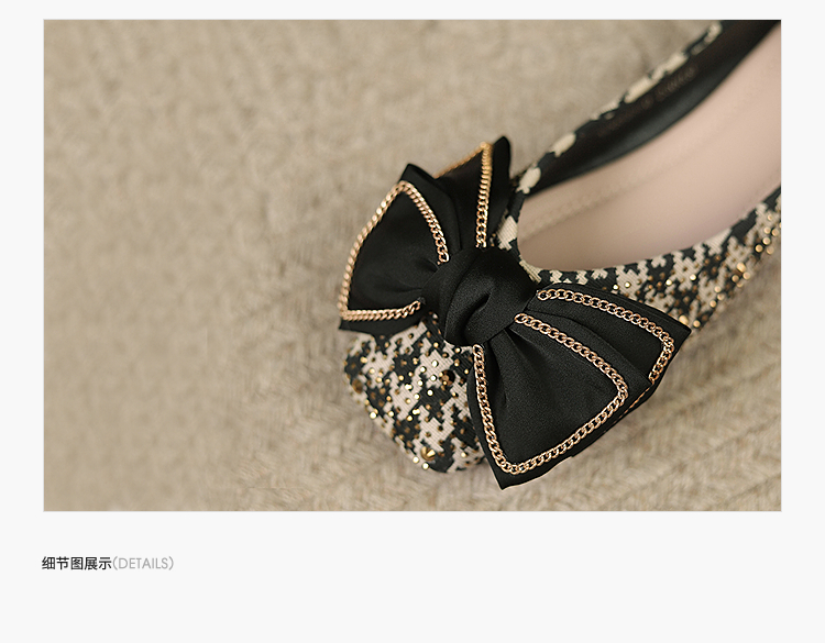 西遇小香风浅口单鞋女2026春季新款蝴蝶结千鸟格软底一脚蹬平底鞋V0066316
