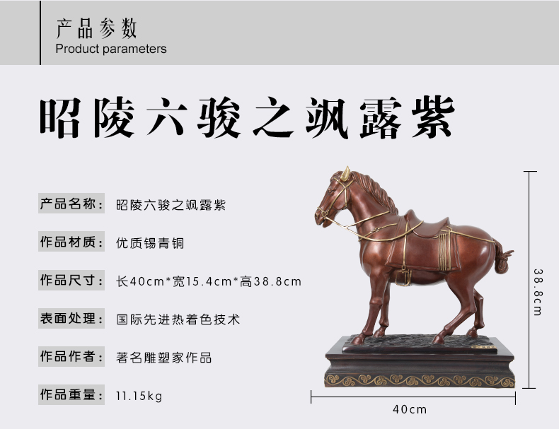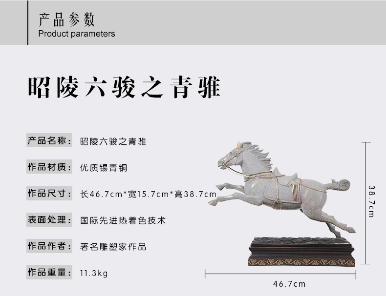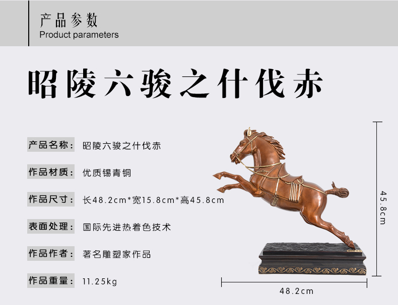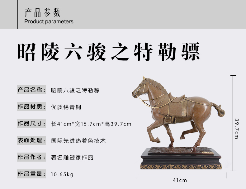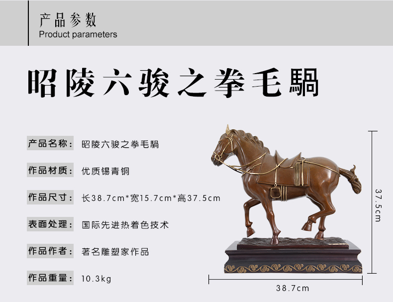 宇达创意艺术品十二生肖吉祥开业礼品昭陵六骏马铜像摆件 35cm