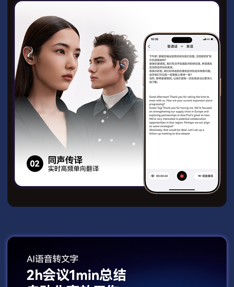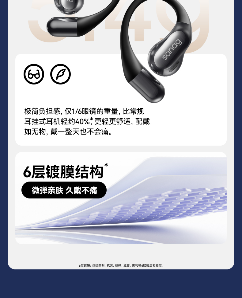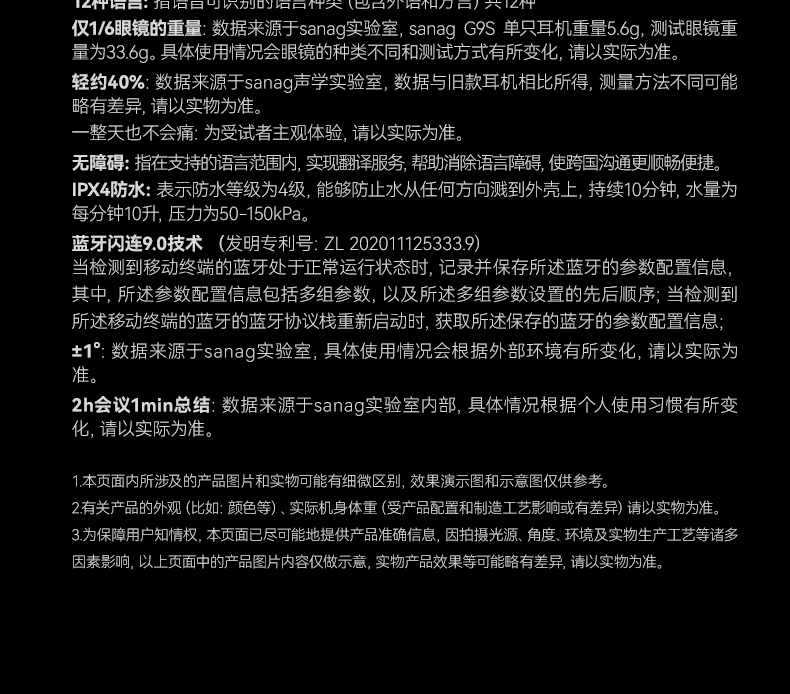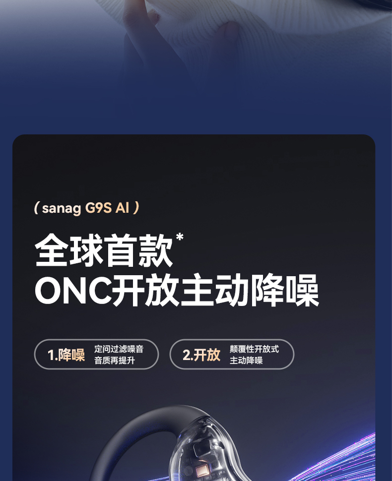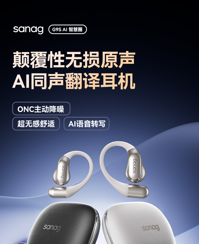 SANAG塞那G9S 开放式蓝牙耳机降噪AI骨传导概念挂耳式不入耳无线跑步运动耳机同声翻译耳机会议实时录音