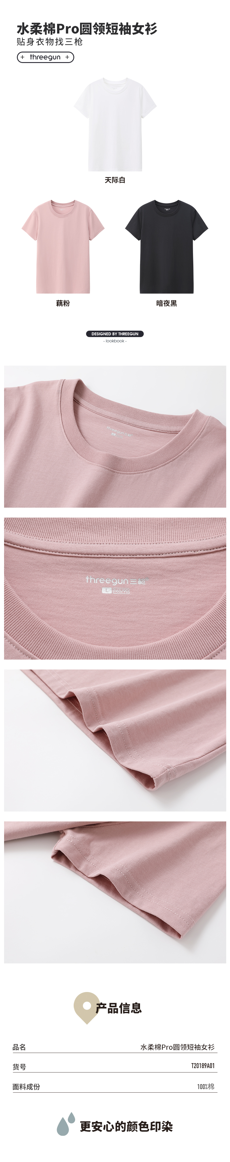 Threegun三枪 水柔棉Pro圆领短袖女衫-T20189A01