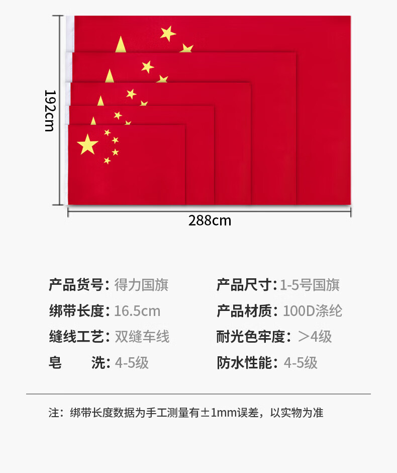 得力国旗 中国国旗五星红旗户外挂旗3-5号落地旗杆大号加厚防水(规格自选)