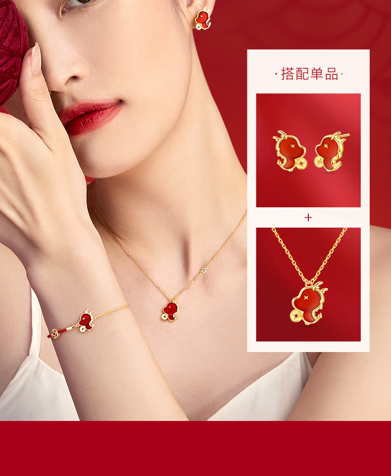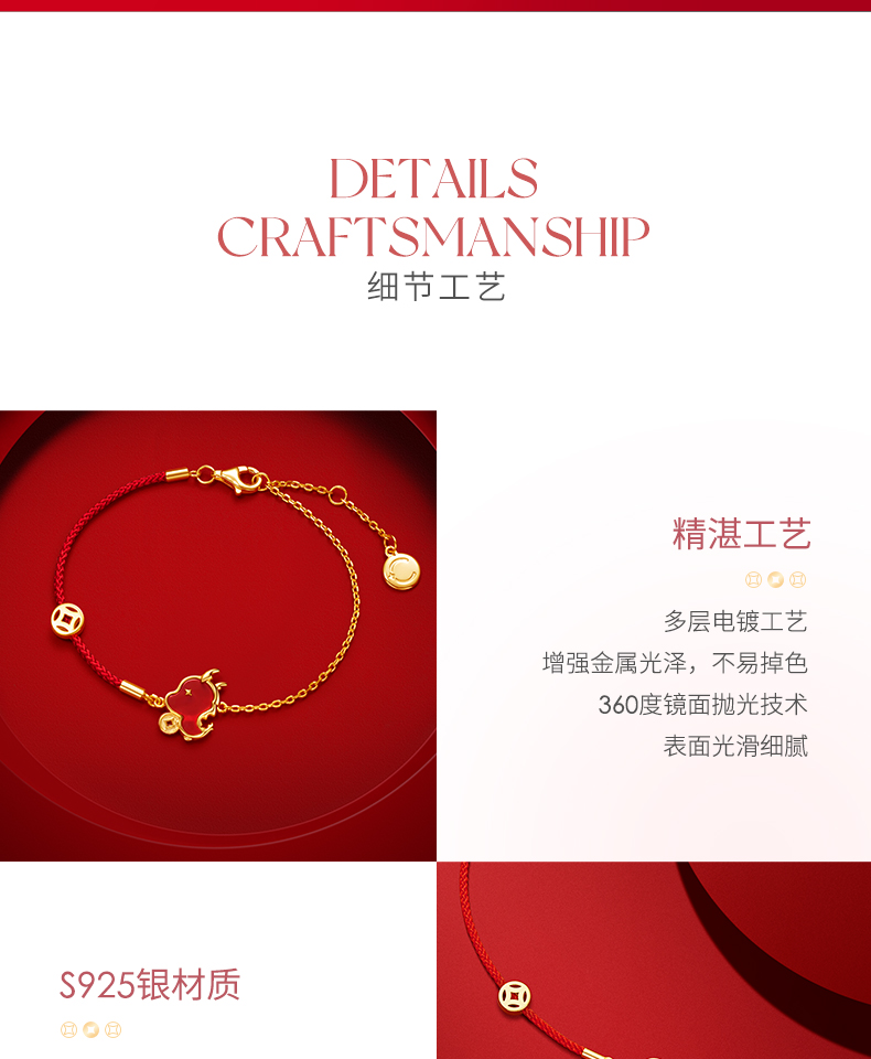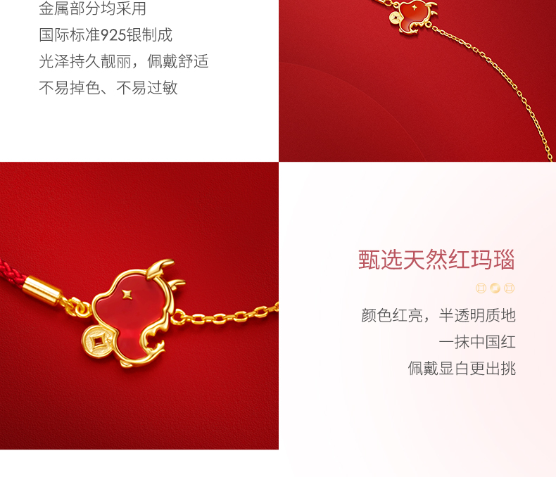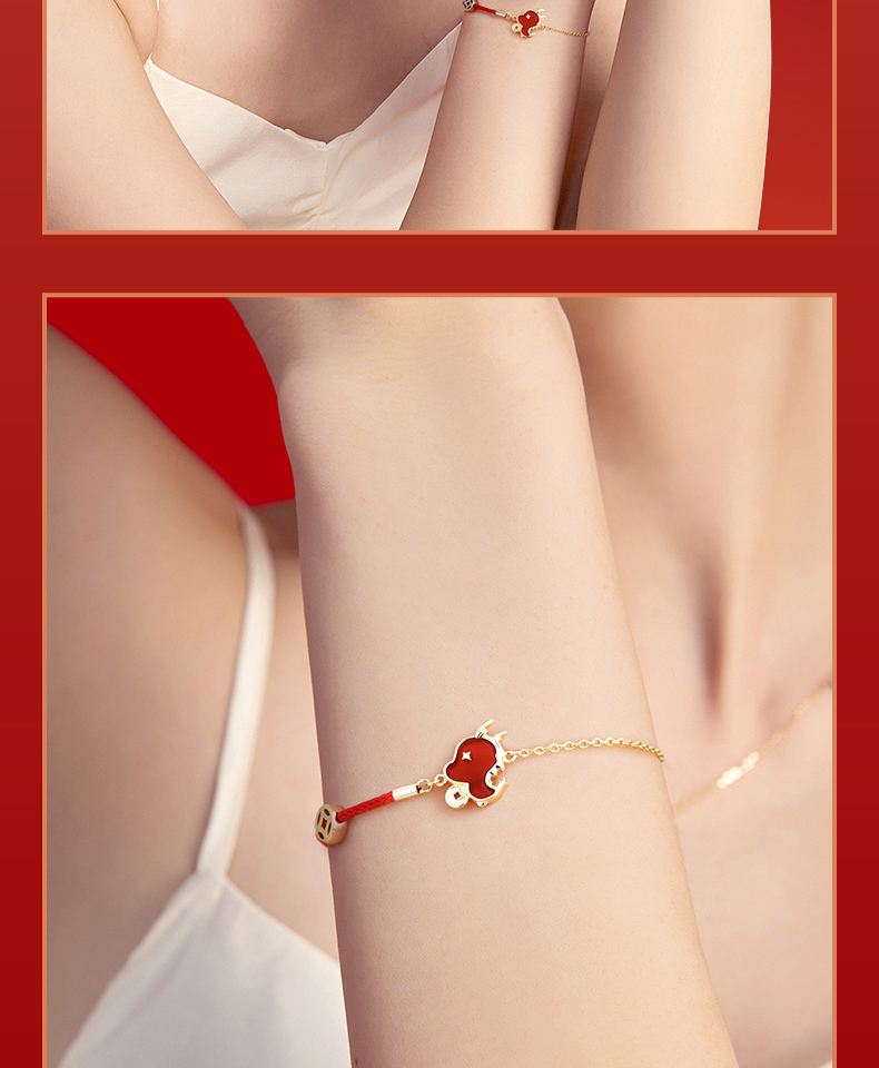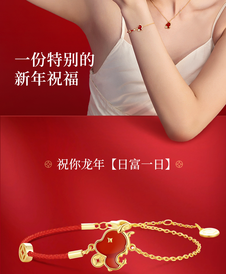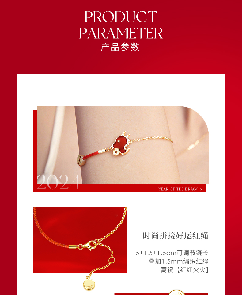 【暴富龙半红绳手链】范琦龙年生肖系列 龙年限定精美礼盒 S925银镶嵌红玛瑙材质手链 顺丰包邮