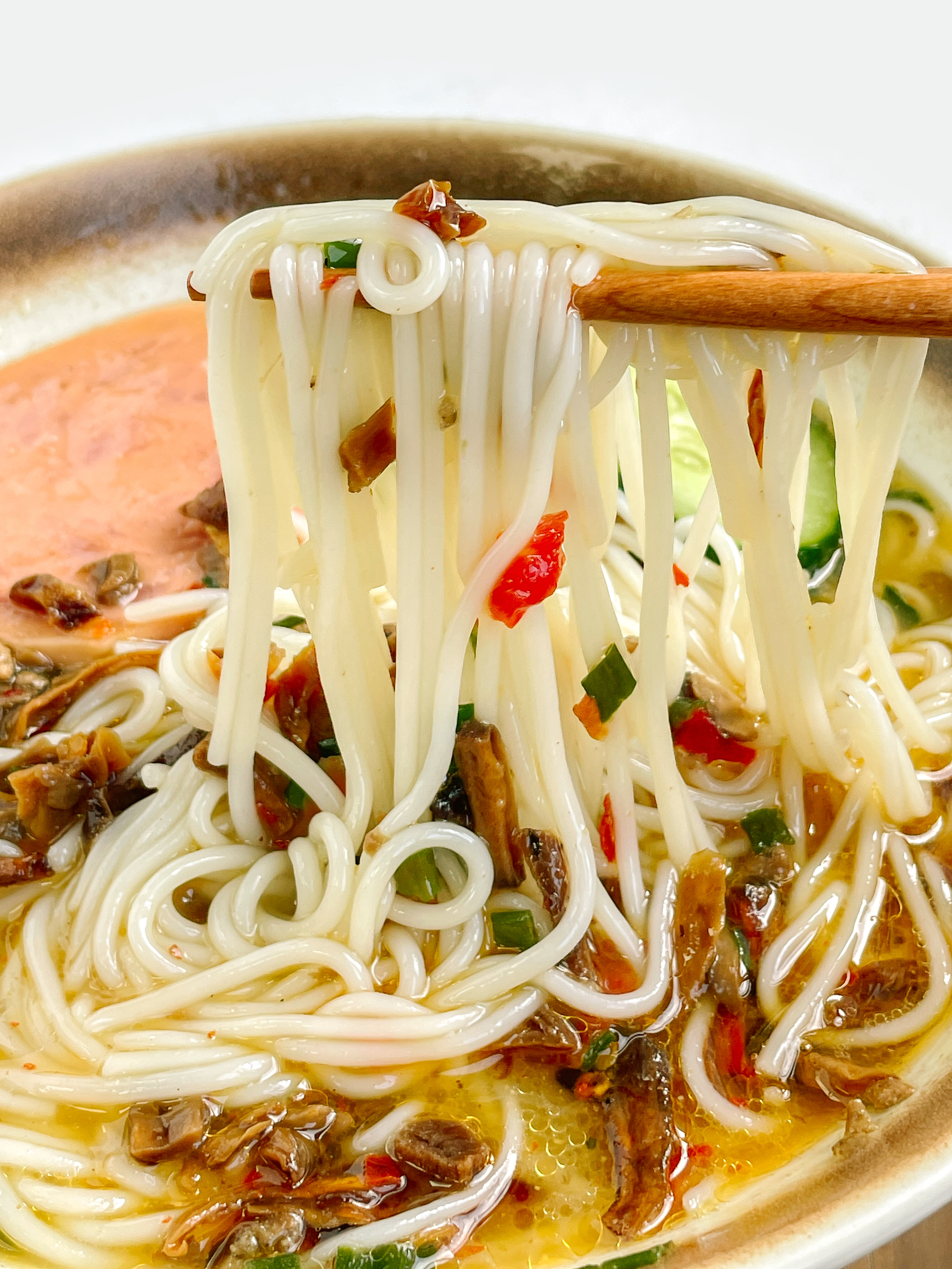 搭配滑嫩的米线一起,口感丰富到绝了!软和韧,滑润和鲜香……😋