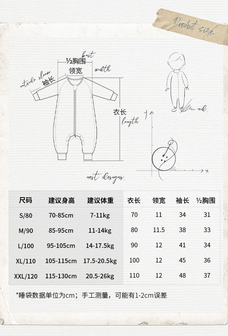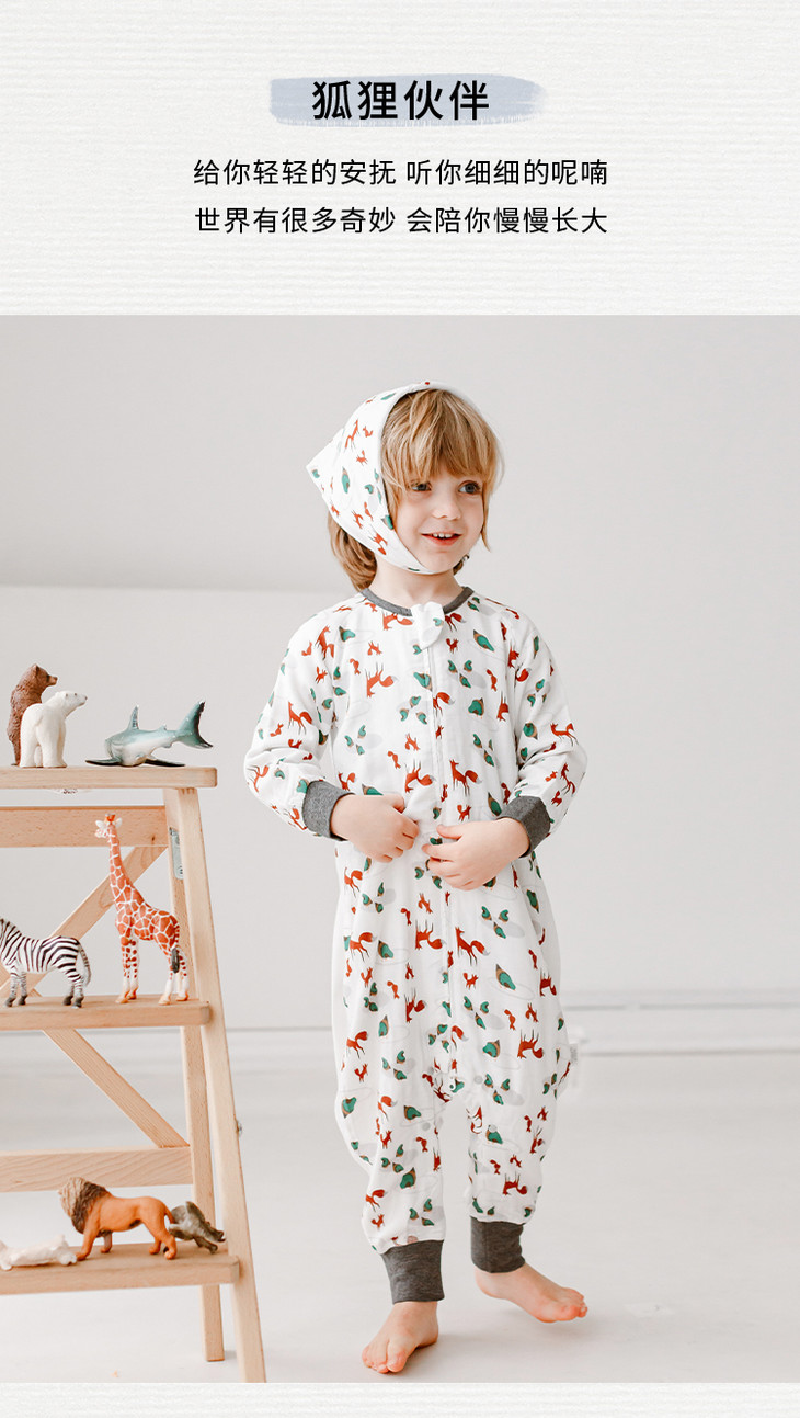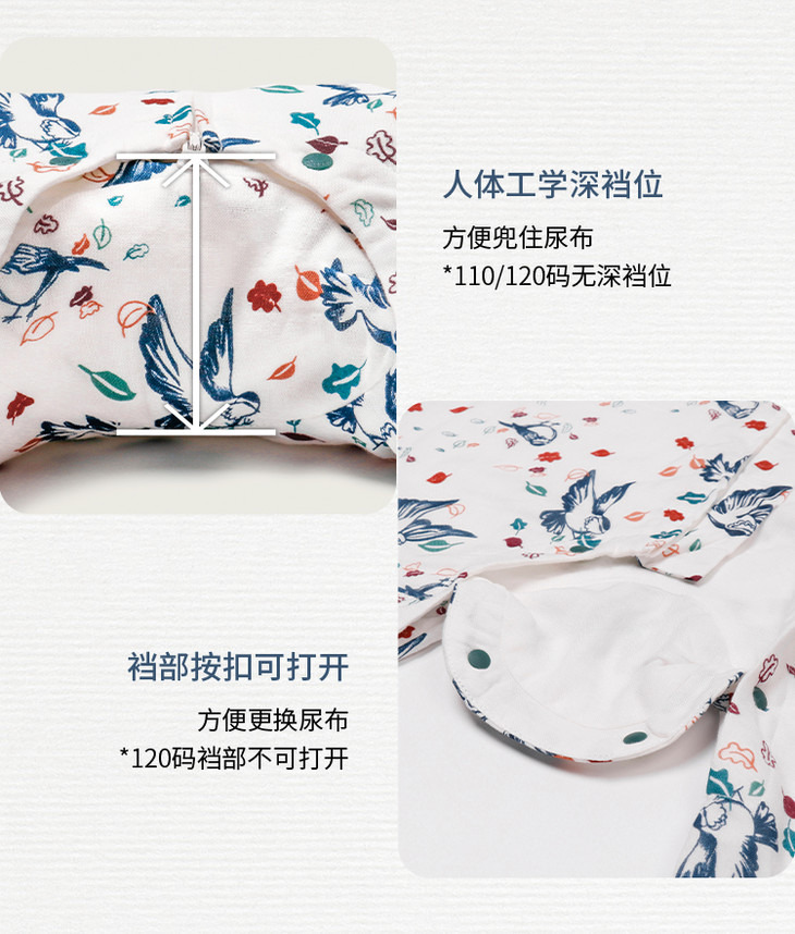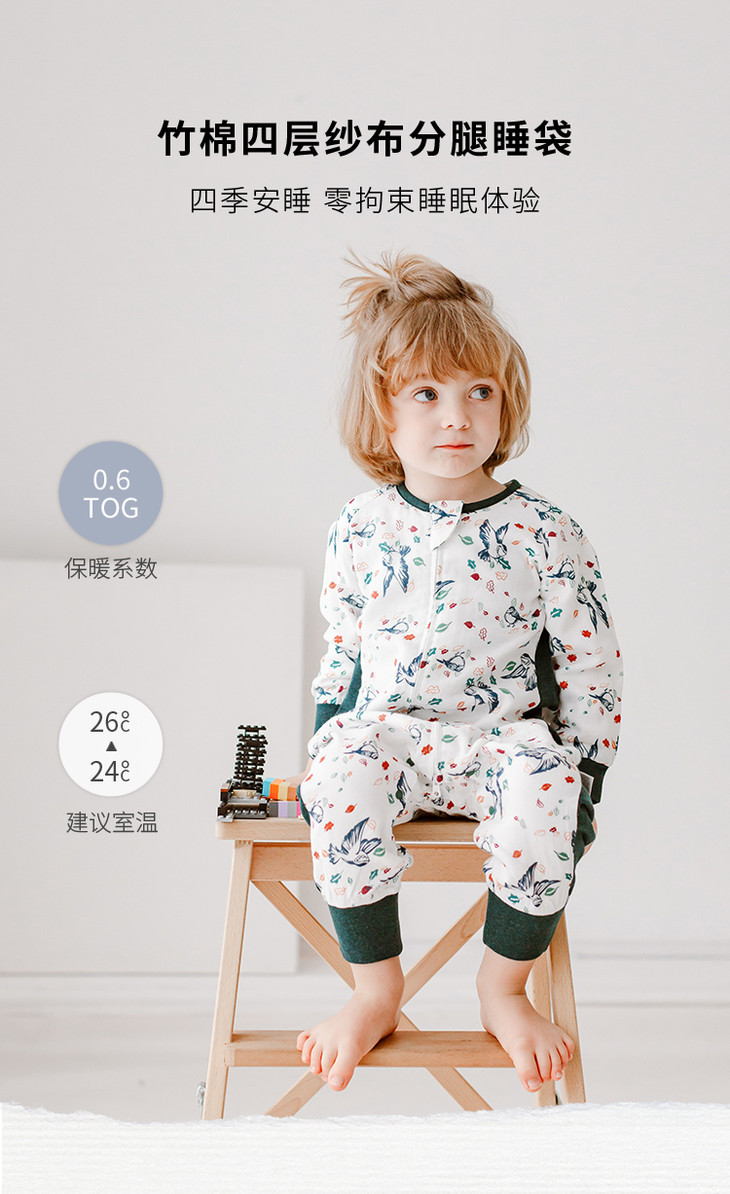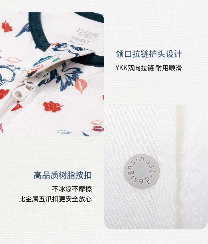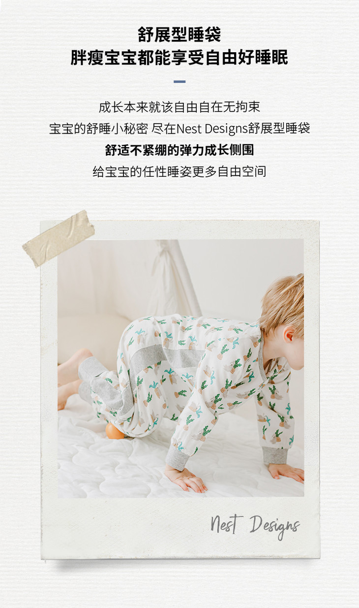 【Nest Designs】四层纱布长袖侧拼分腿睡袋