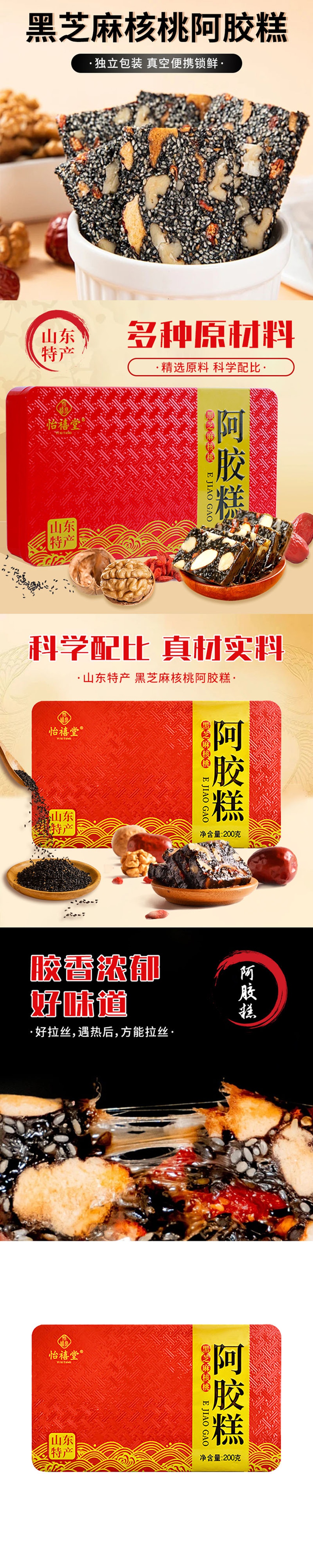 胶香浓郁黑芝麻核桃阿胶糕200克