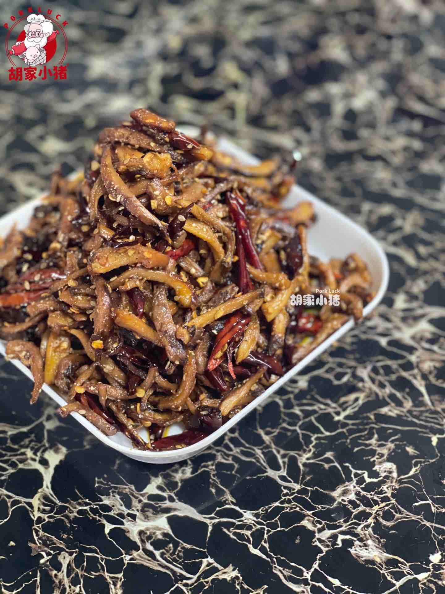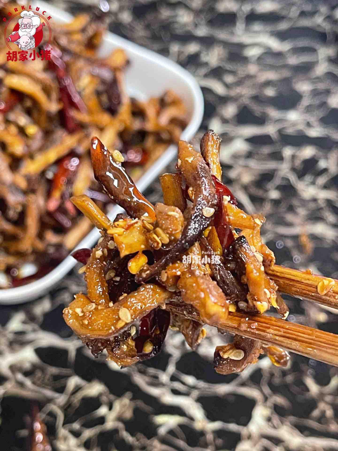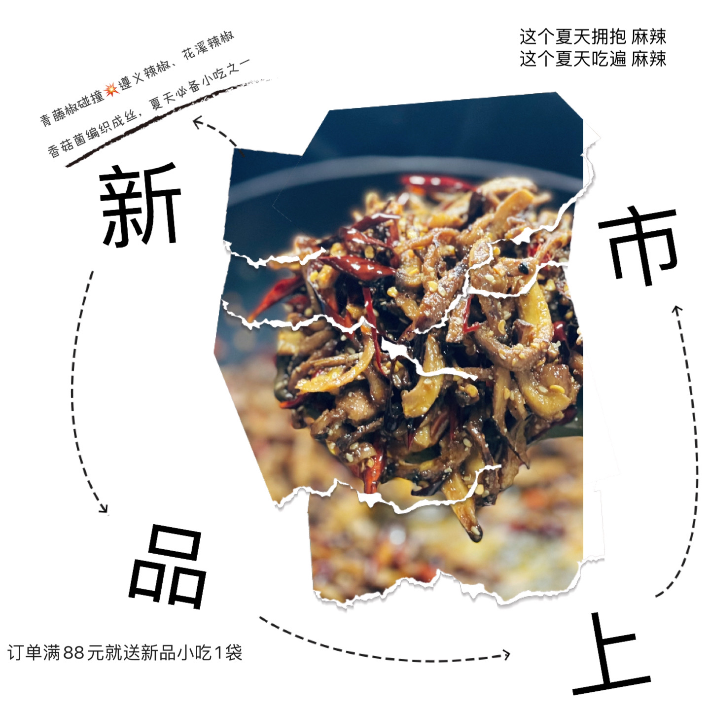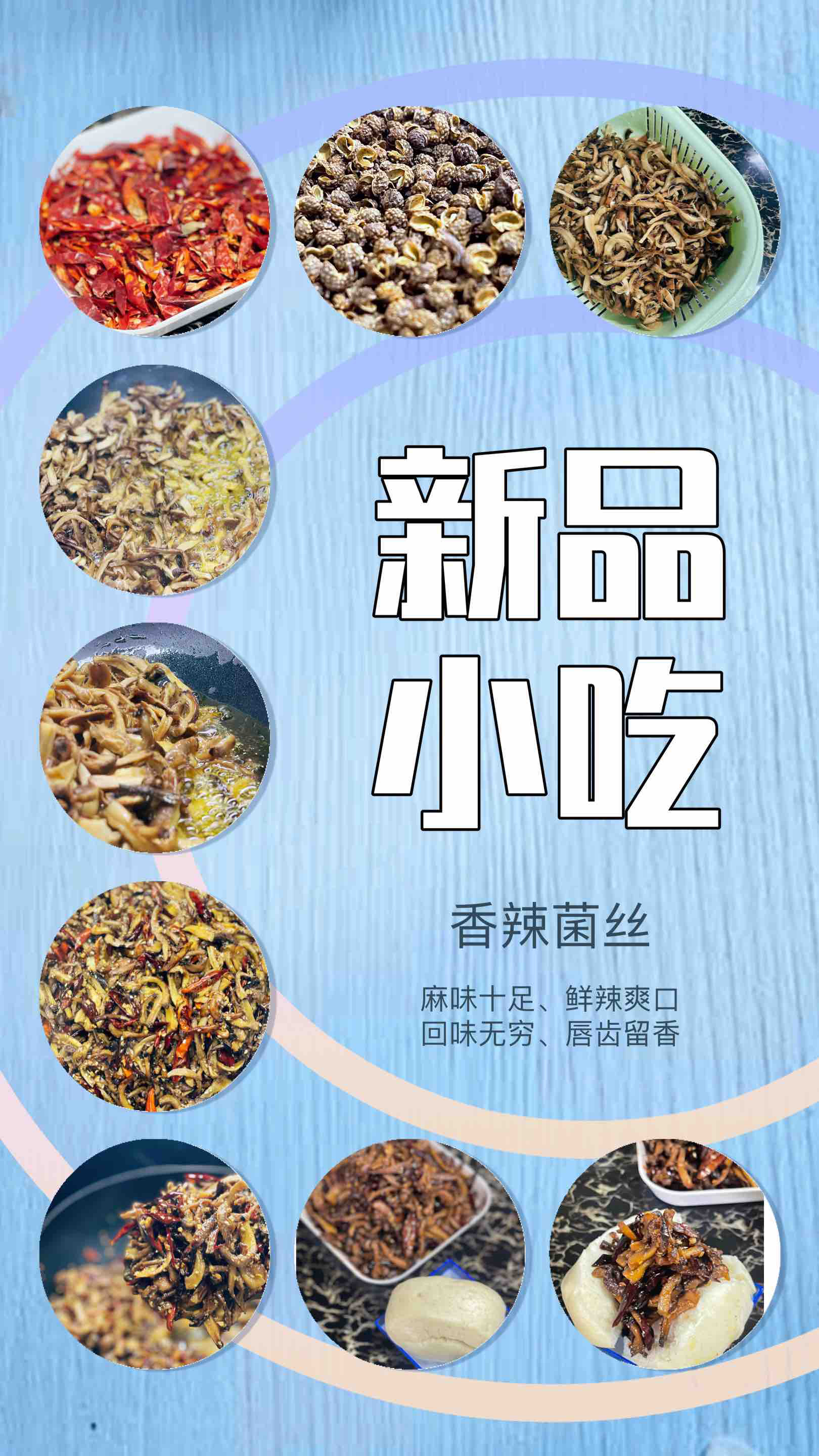 香辣菌丝,选用香菇腿加入遵义小辣椒、花溪辣椒、青花椒制作